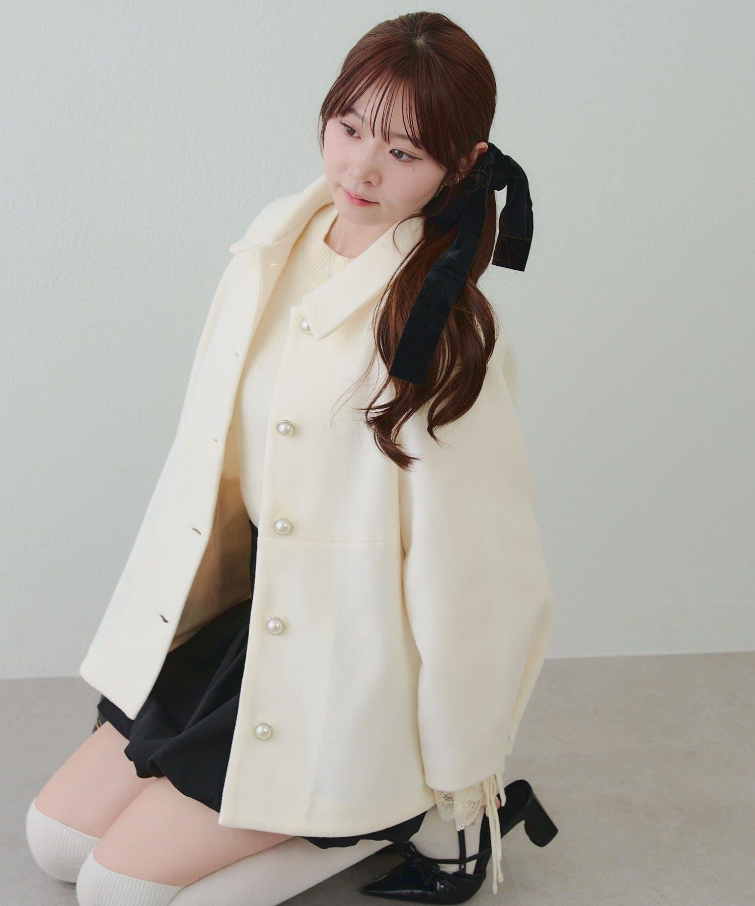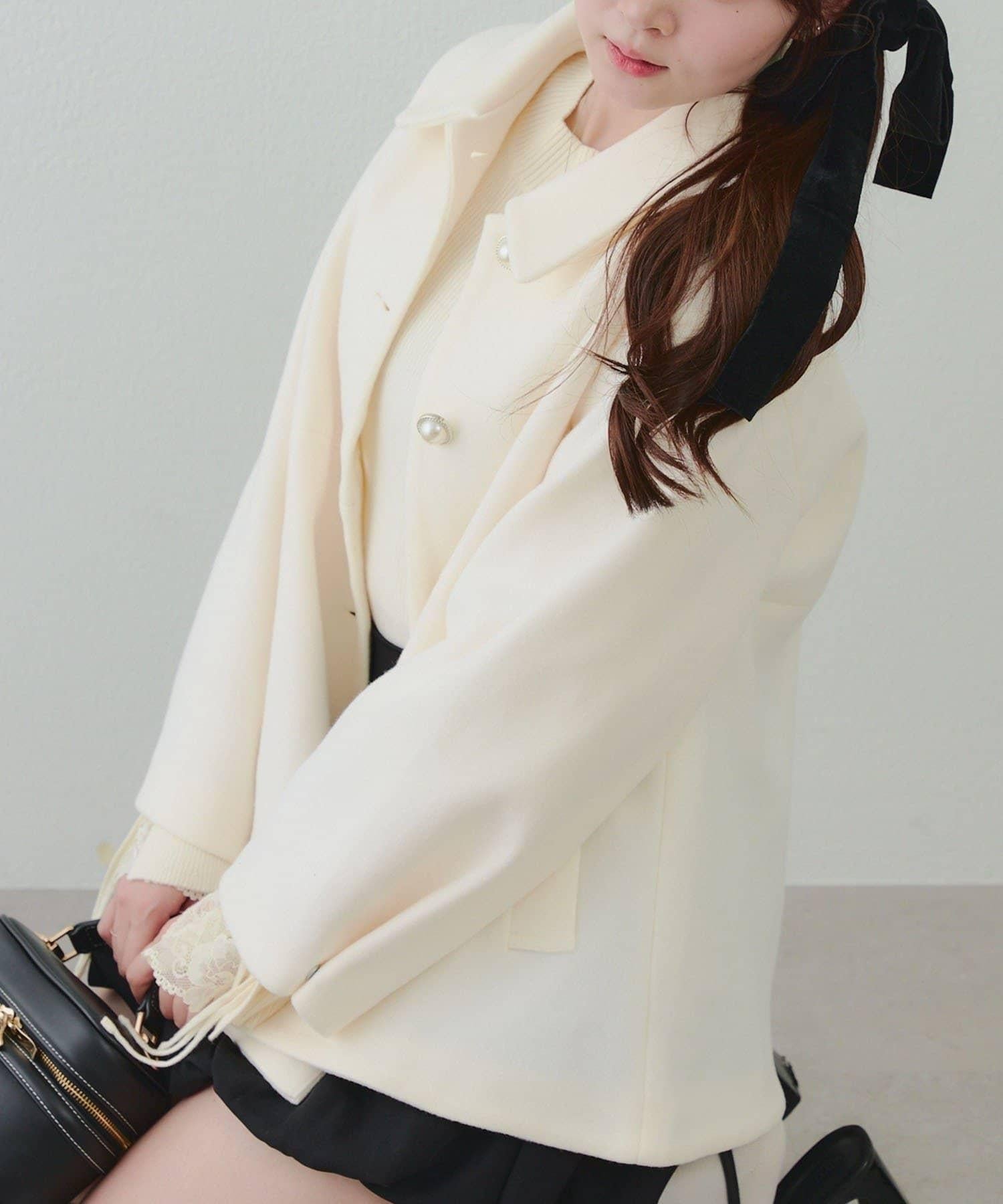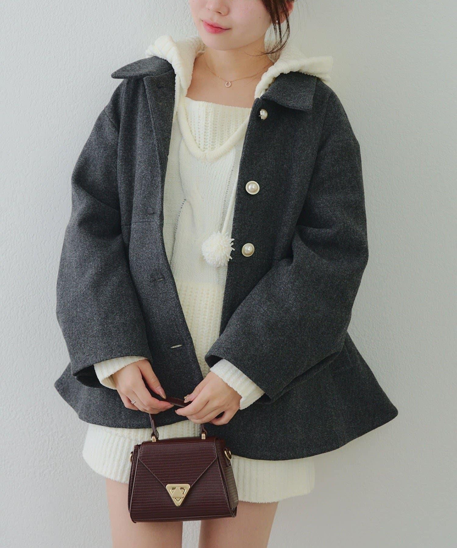 還可搭配喇叭牛仔褲,打造淑女休閒造型。