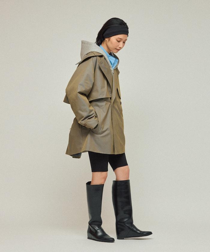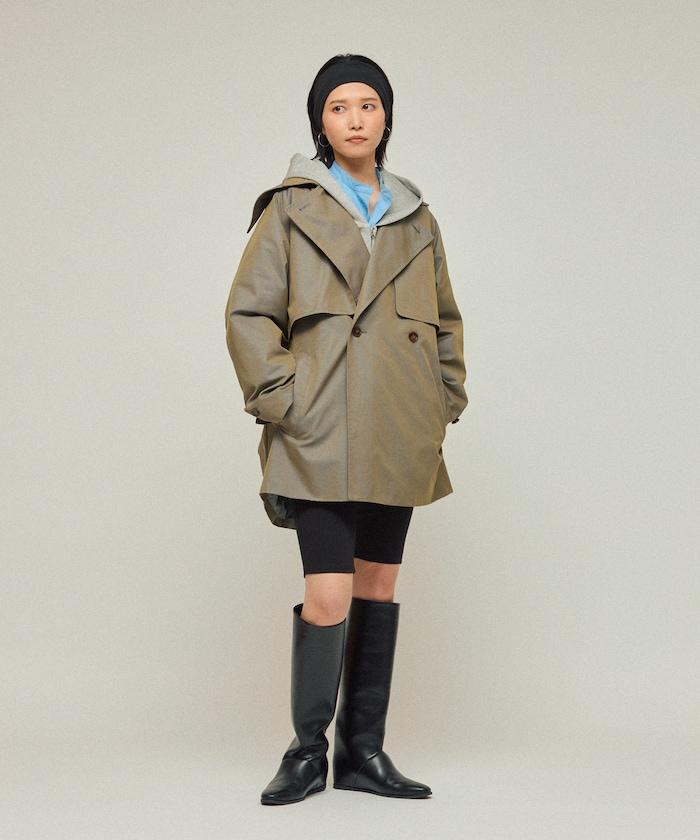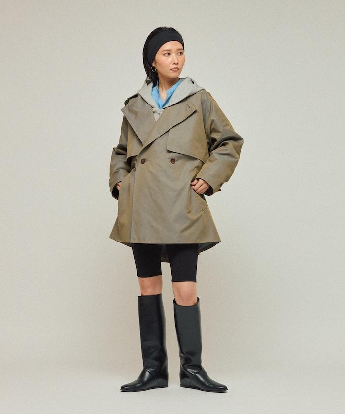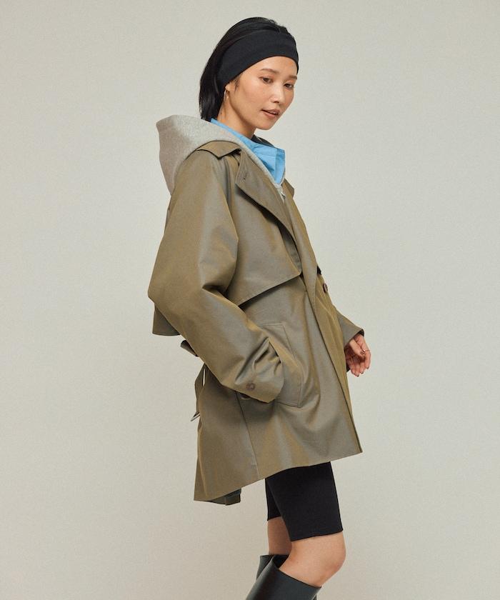 中長款風衣,採用具有彈跳感的 T/C Chambray 面料,便於在初秋時節穿著。