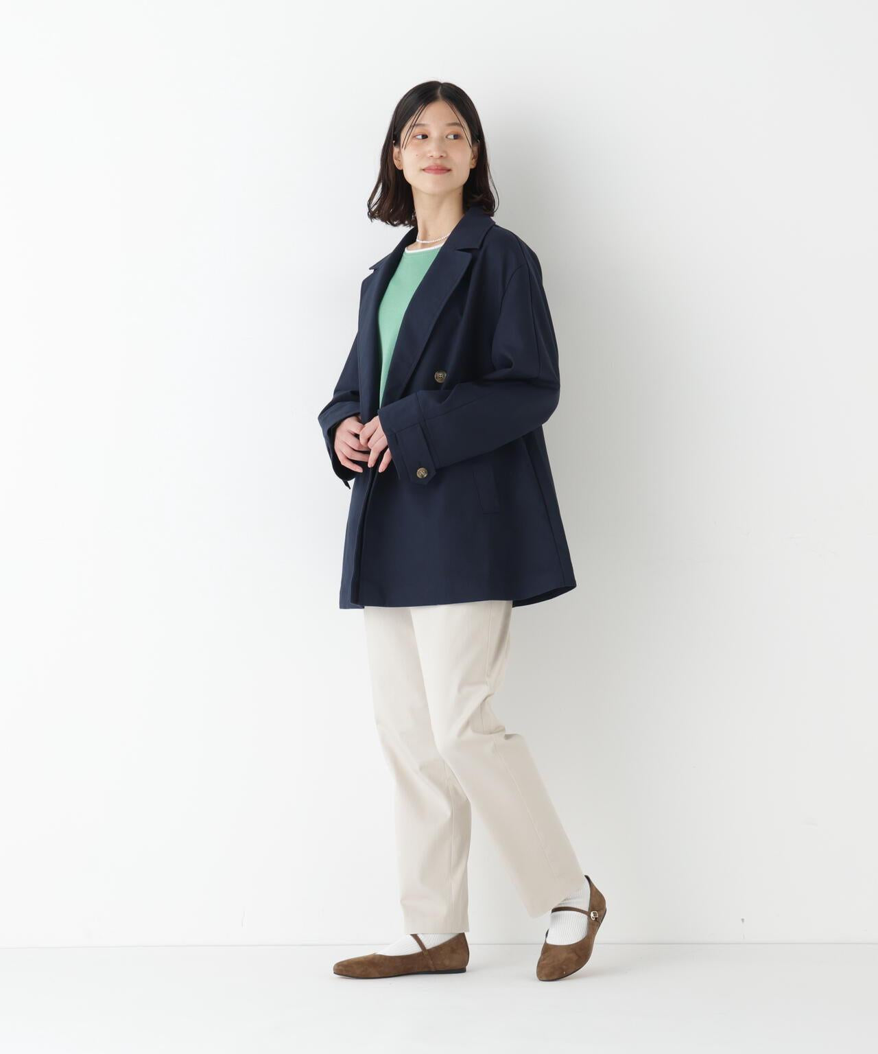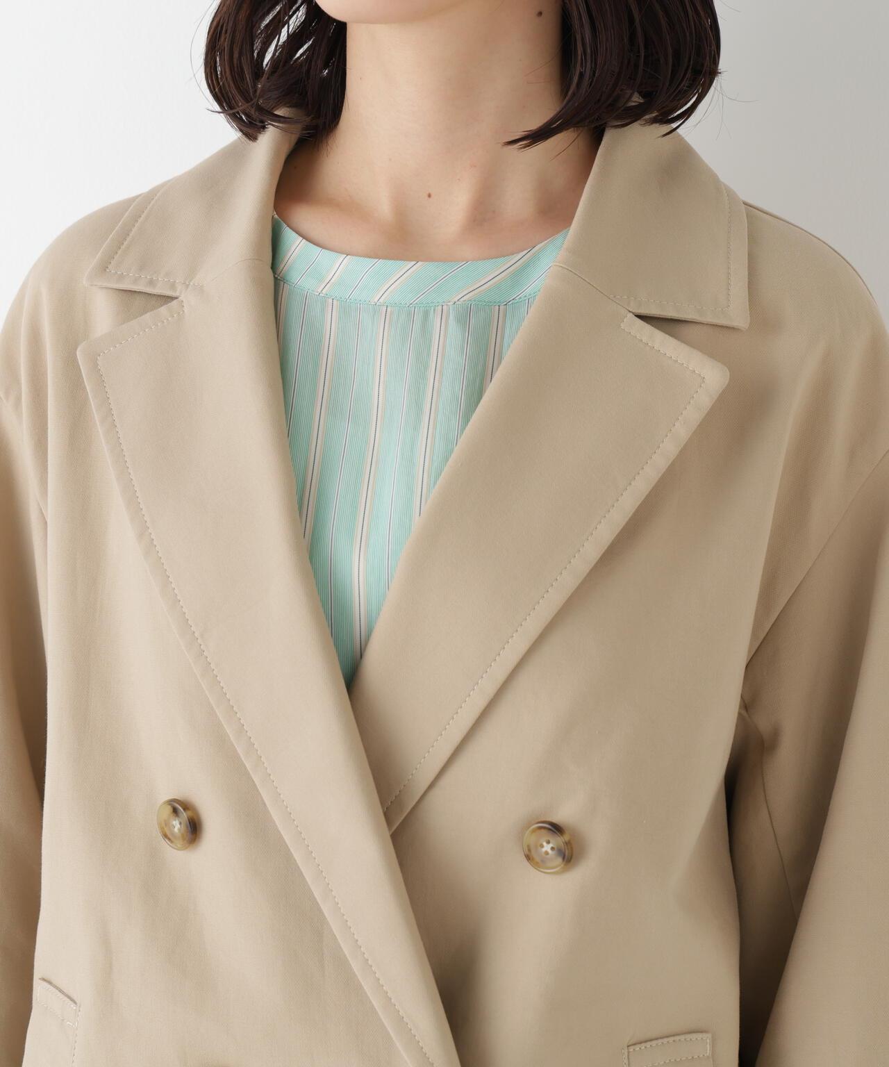 中長款風衣,上班下班皆宜 [設計特色] 這款中長款風衣採用了堅實的面料質地,具有奢華感。A 字型的剪裁和厚實的臂襟讓針織衫等較厚的上衣也能輕鬆穿上。縫線採用粗針距,給人以優美休閒的印象。採用 100% 棉的雙層布料。面料具有雙層布特有的豐滿感和張力,具有價值感。推薦座標:從簡潔風格到日常休閒風格,適用範圍廣泛。也推薦與格紋單品和條紋長褲搭配的傳統造型。