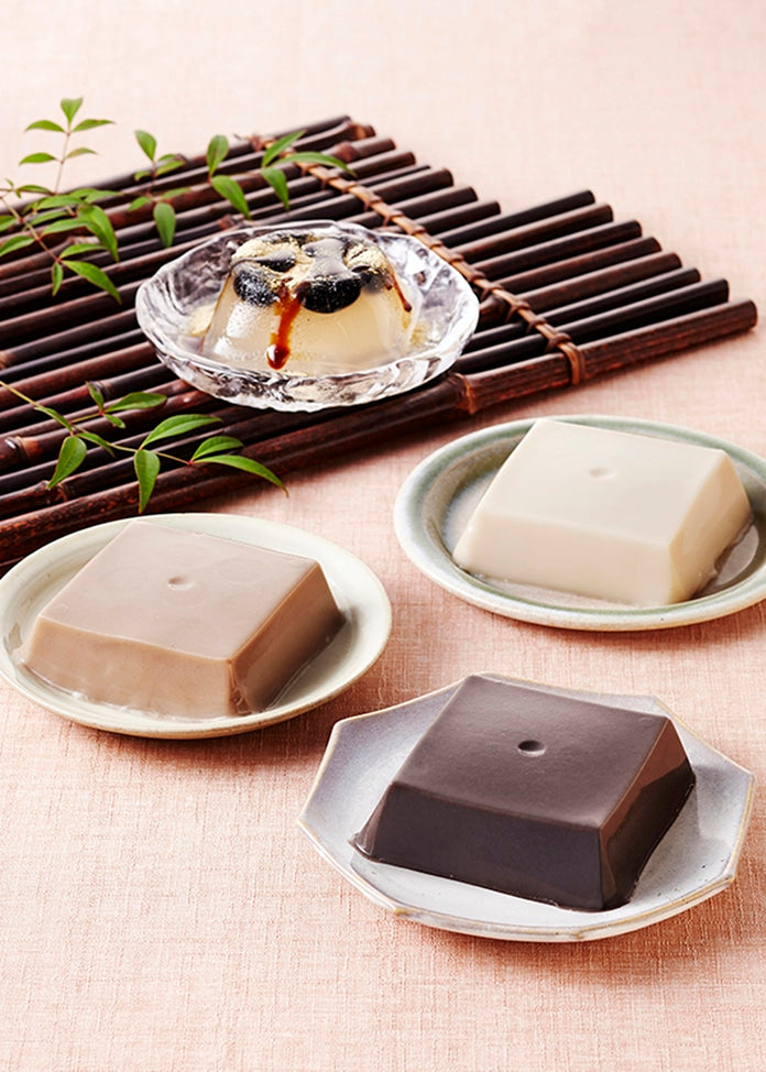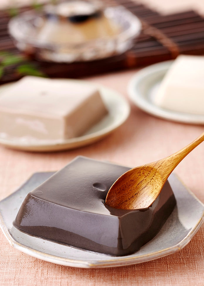 芝麻豆腐加芥末和醬油。也可以作為一碗米飯,作為Chawanmushi(蒸蛋羹)的配料,或作為油炸豆腐。