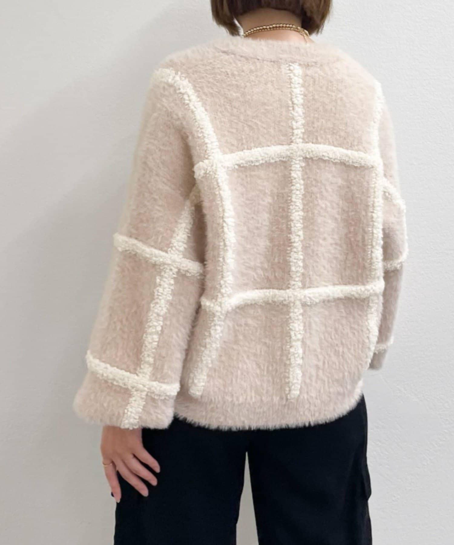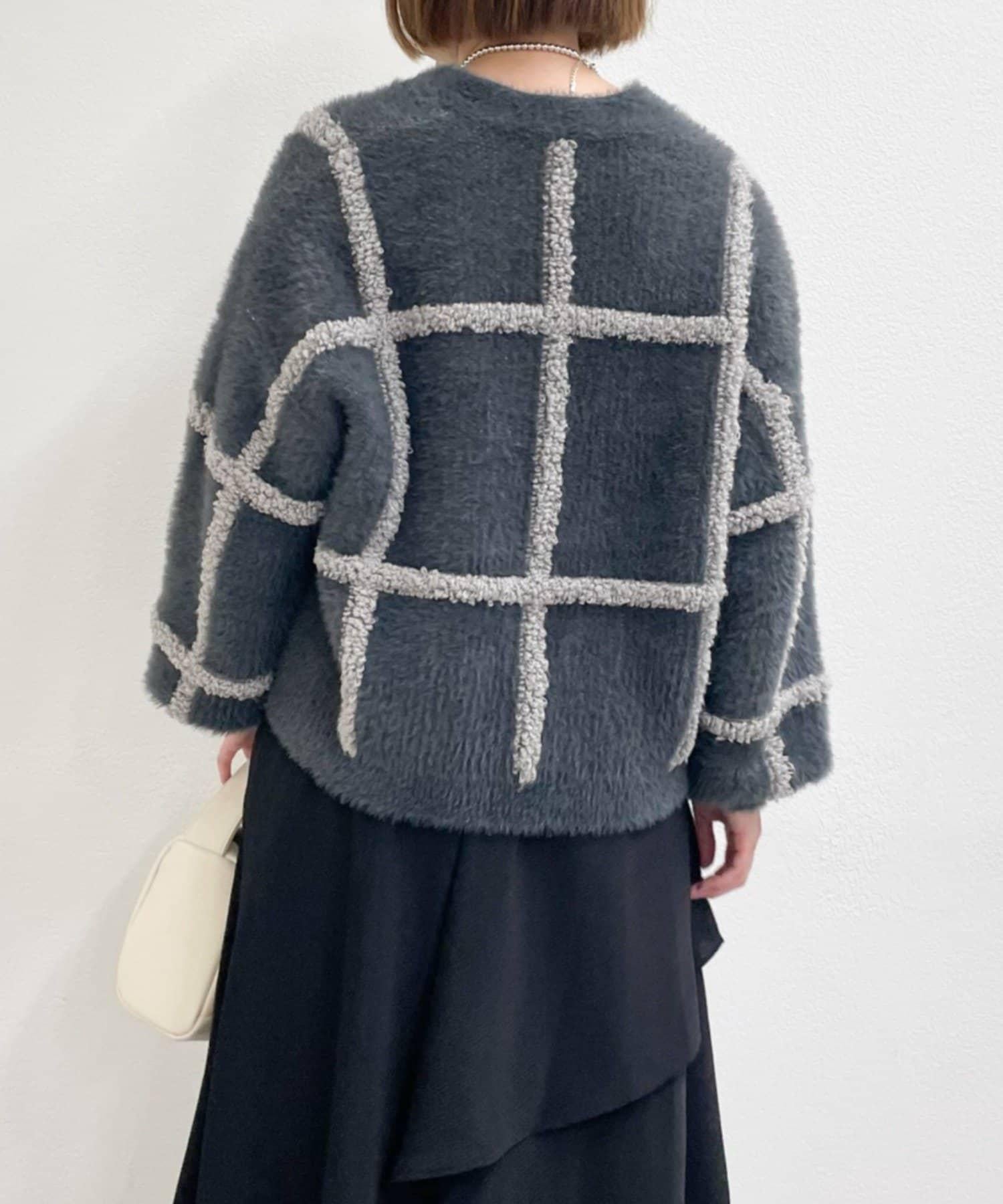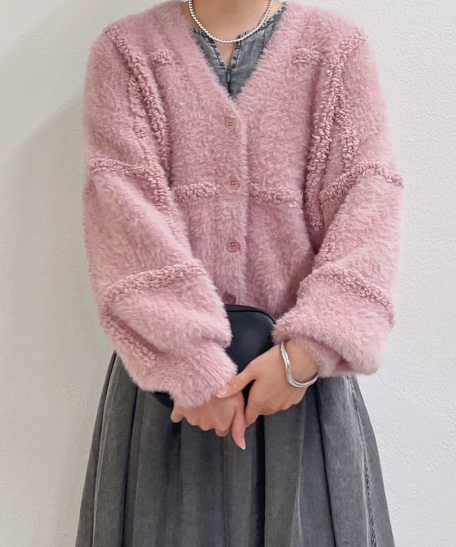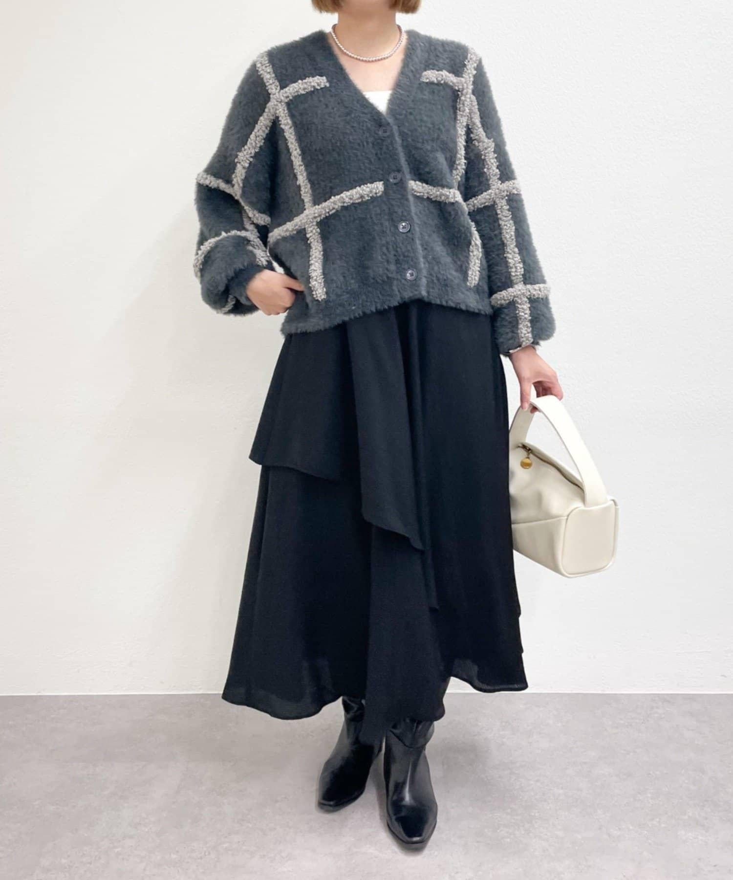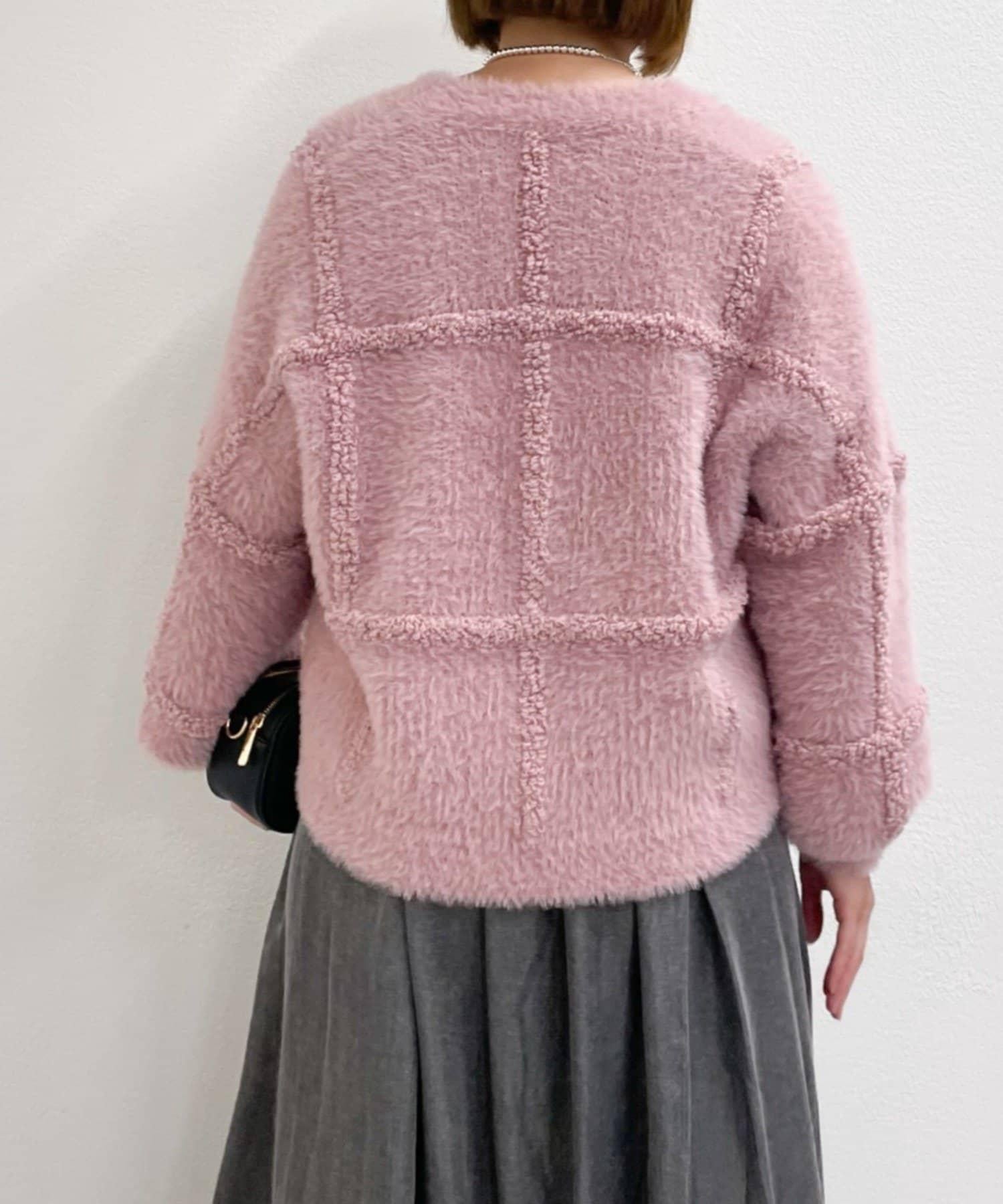 針織開衫衣身寬大,長度略短,可搭配任何下裝。