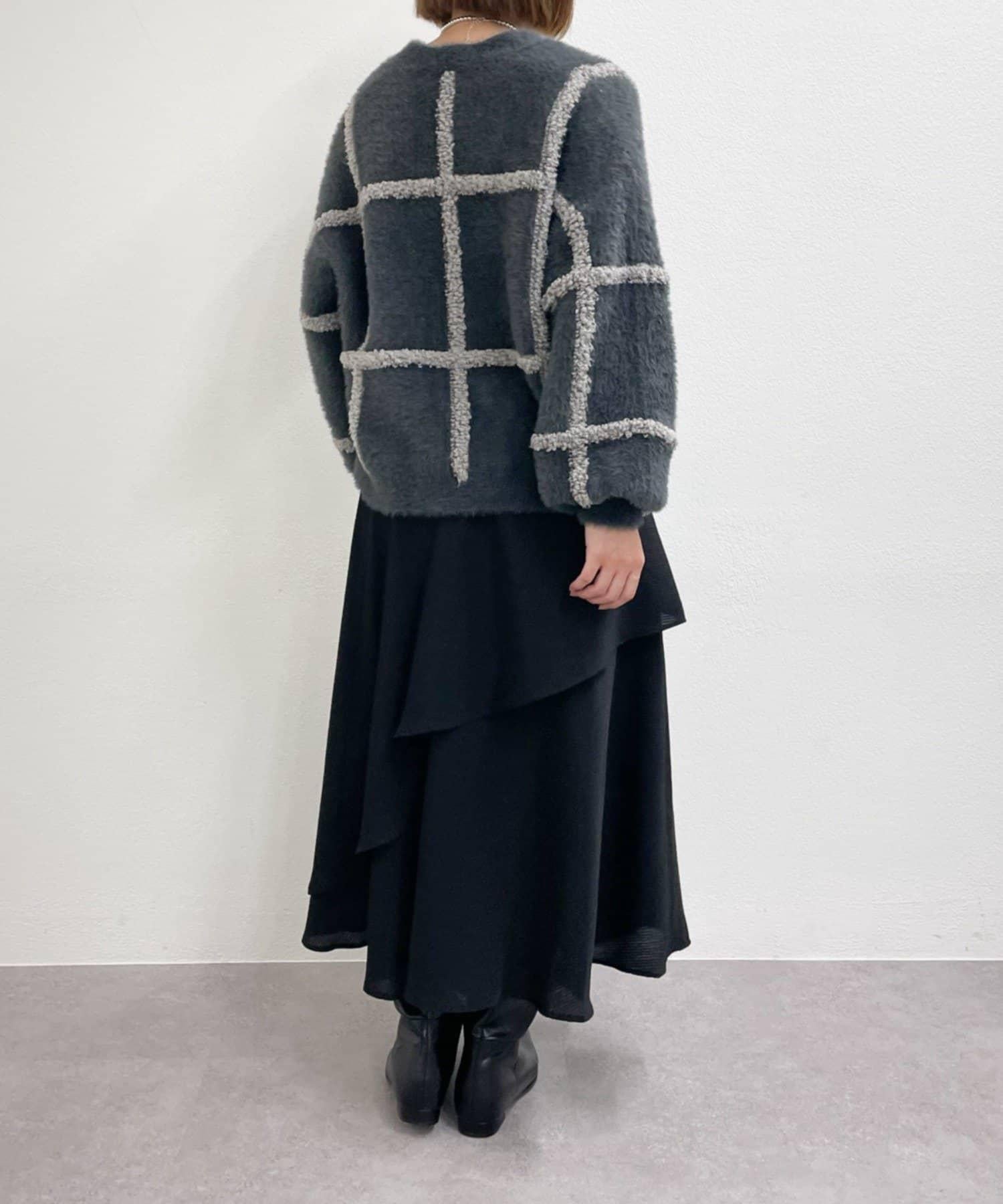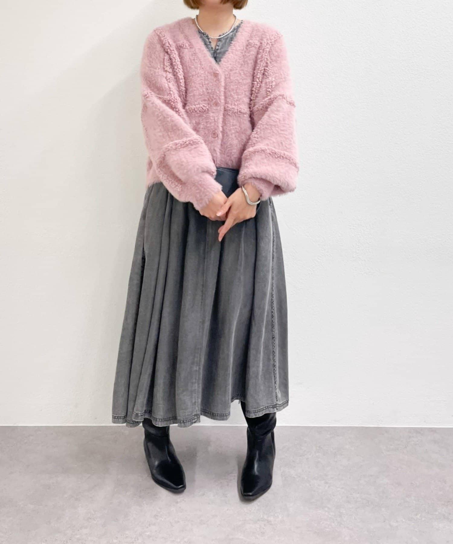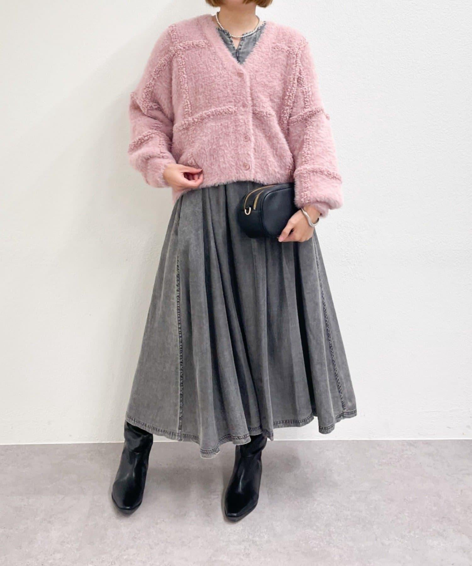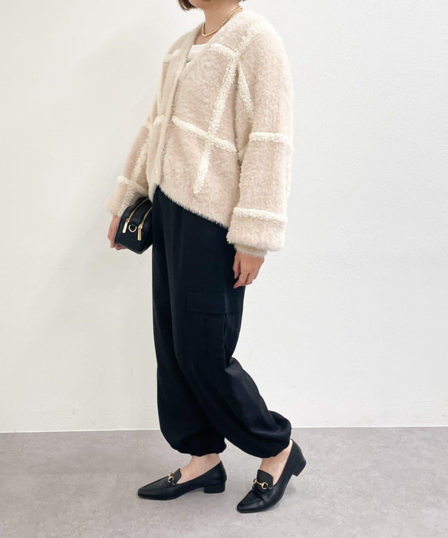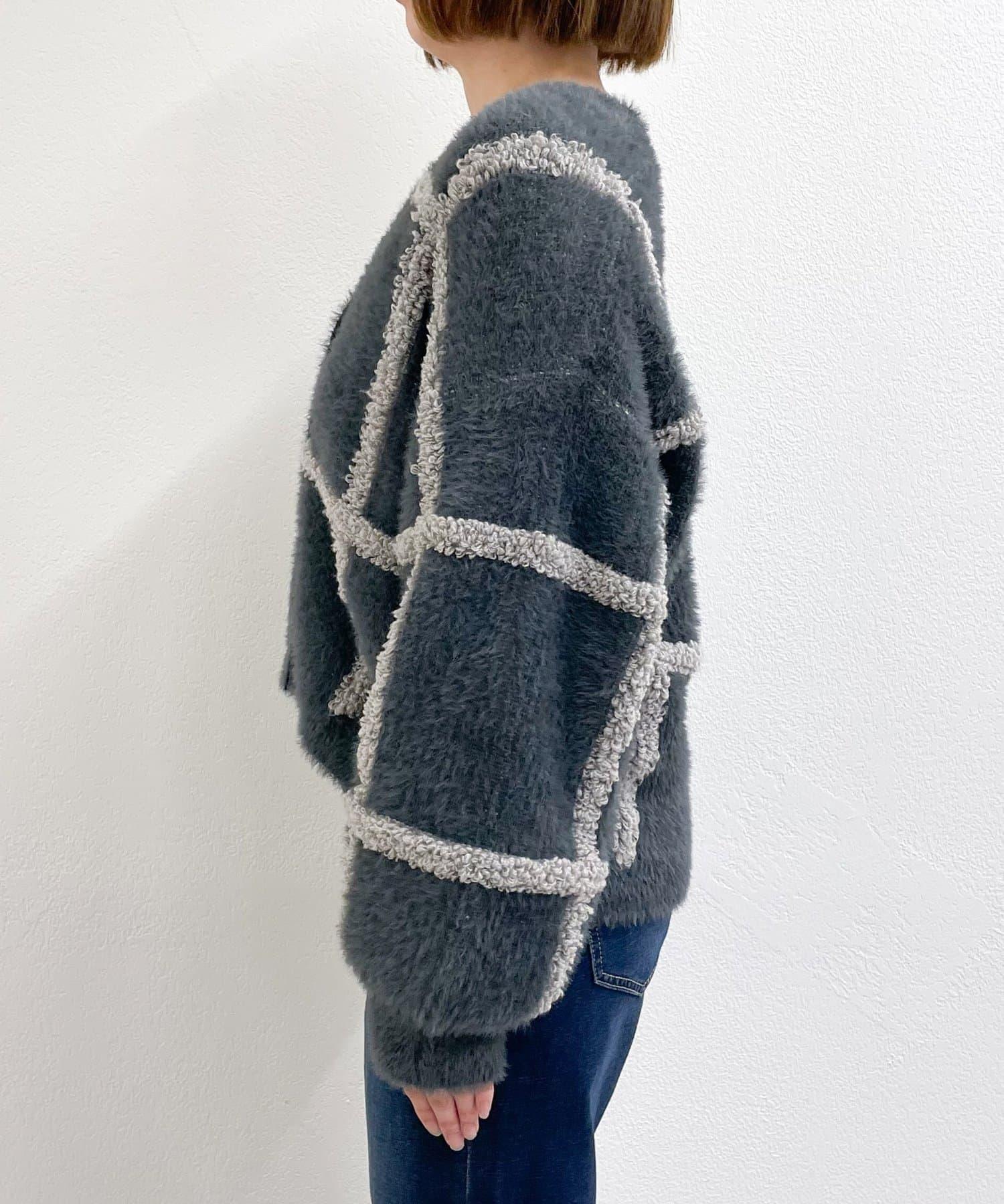 針織開衫衣身寬大,長度略短,可搭配任何下裝。