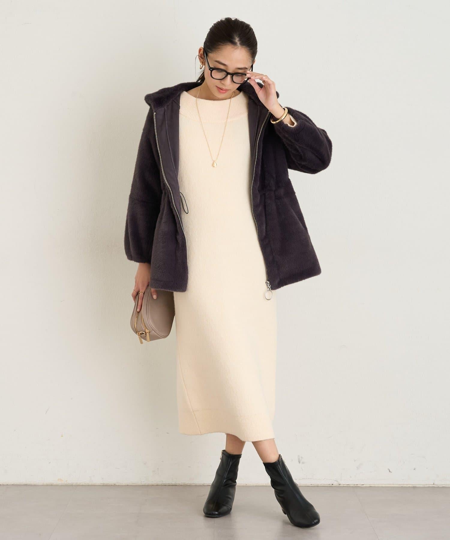 前襟的拉鍊可以拉開以營造舒適感,也可以拉上以增加保暖性,因此您可以根據氣溫和場合自由搭配服裝。