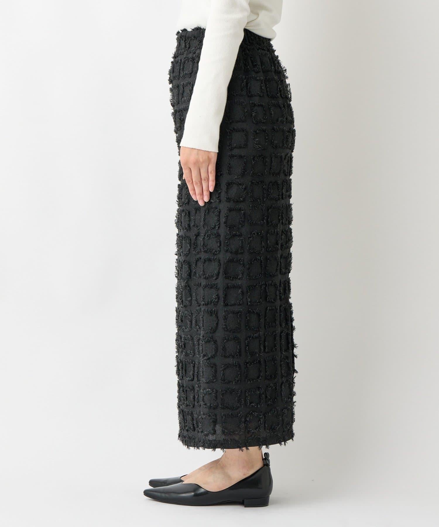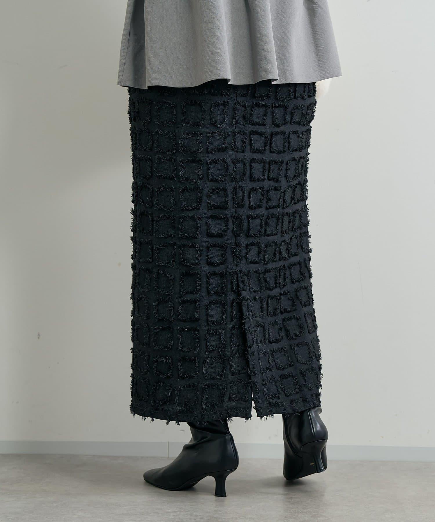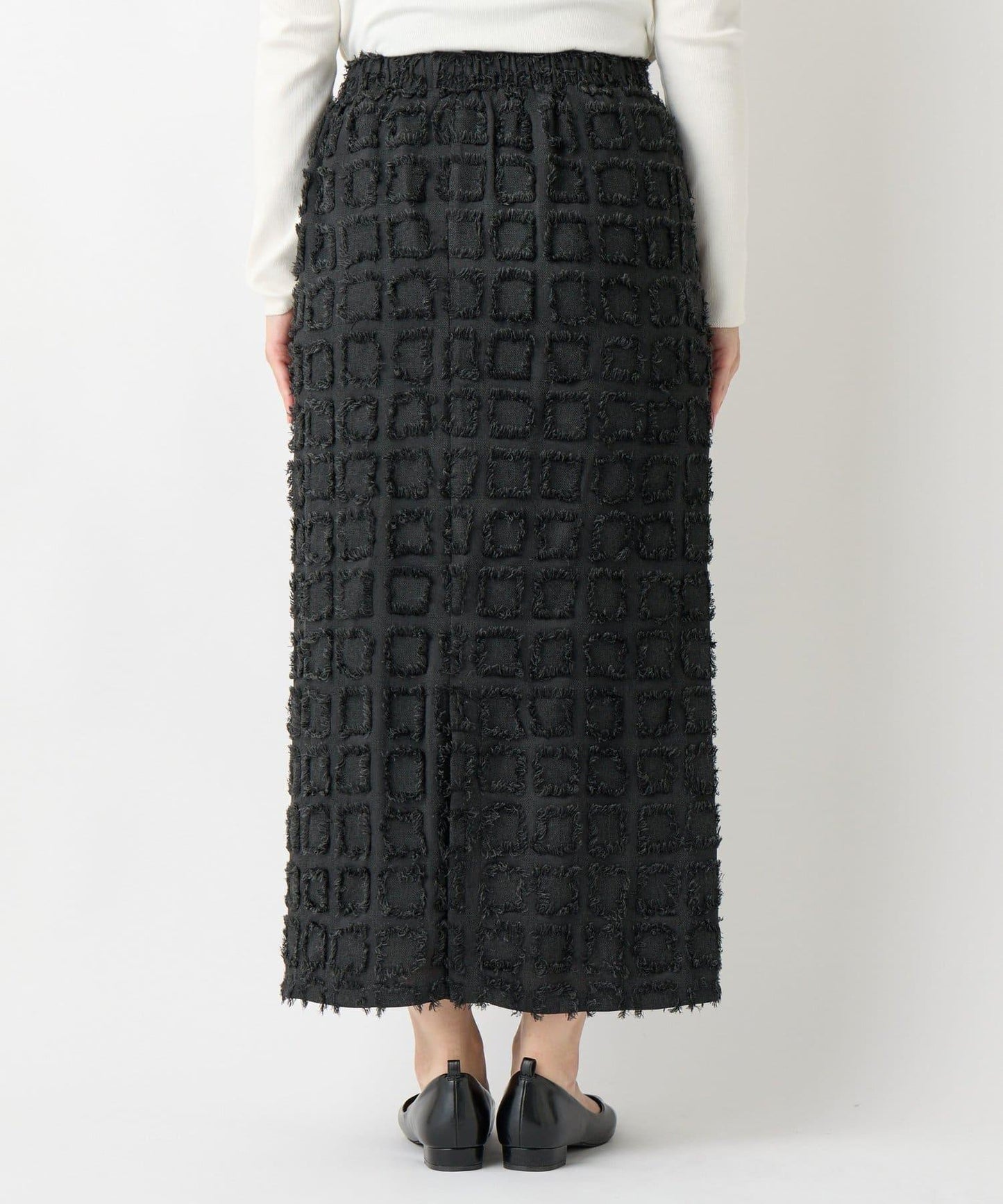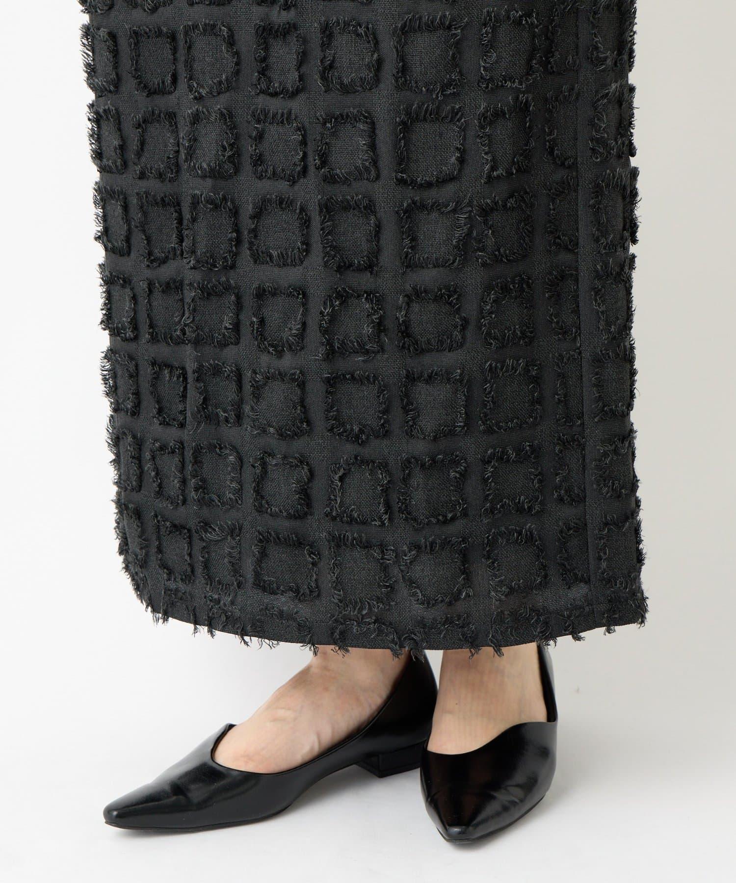立體感十足的方形提花設計吸引眼球,讓這款裙子成為全場的焦點。