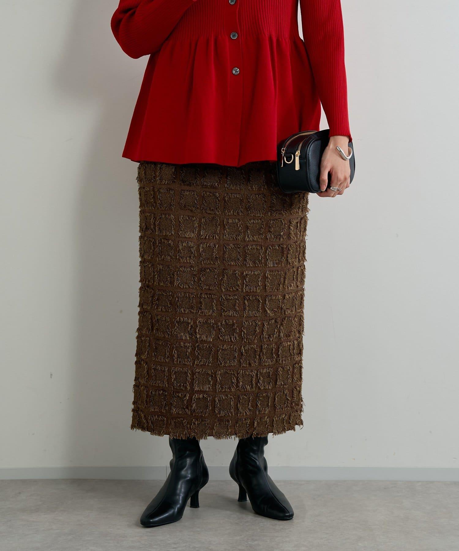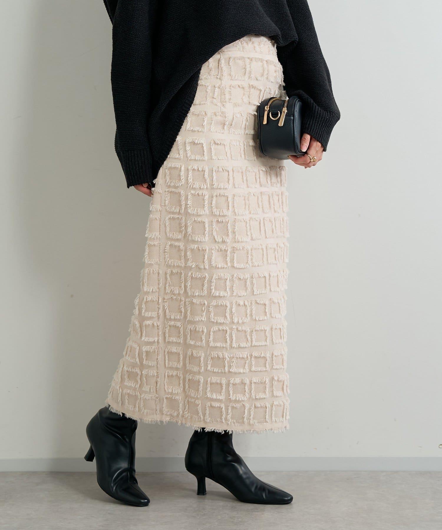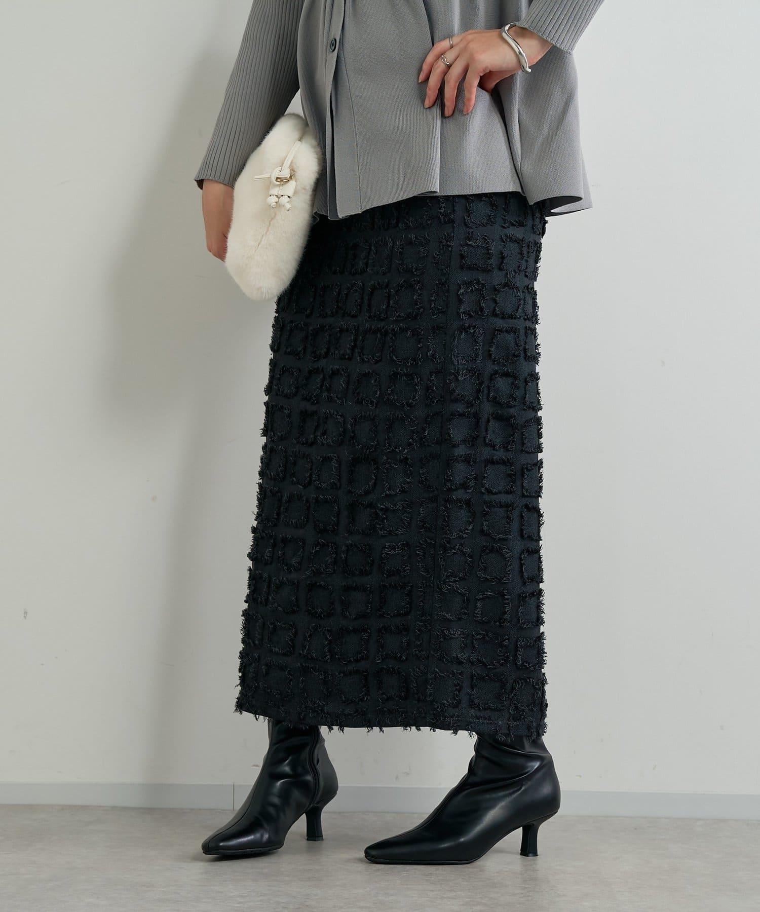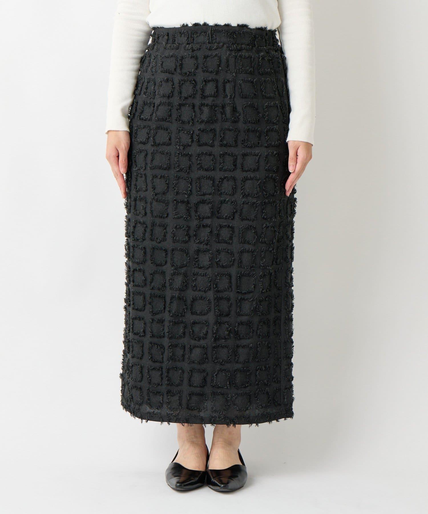 立體感十足的方形提花設計吸引眼球,讓這款裙子成為全場的焦點。