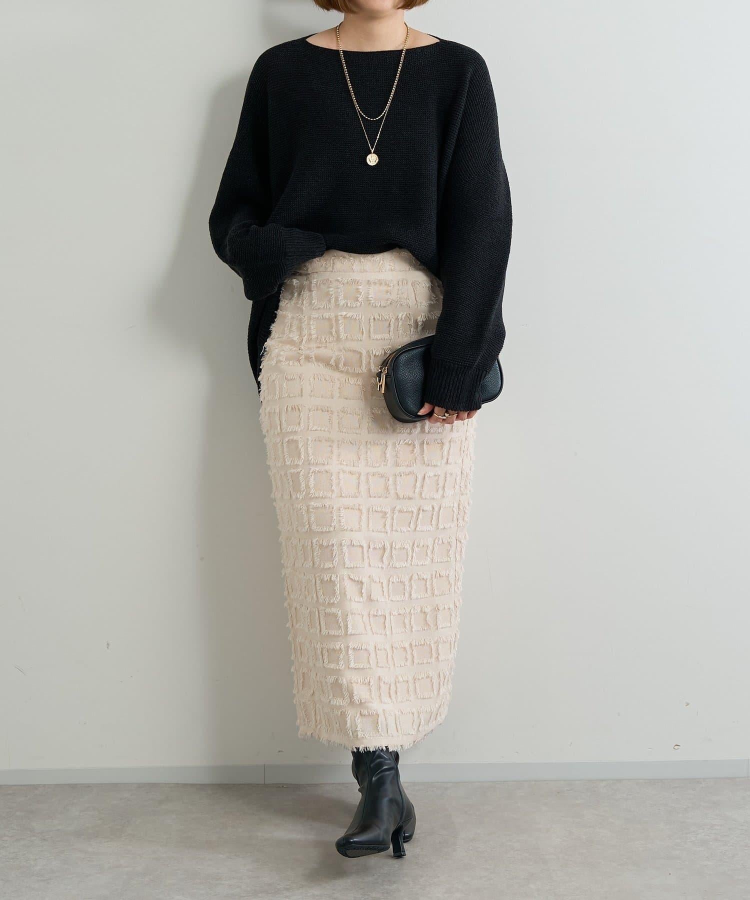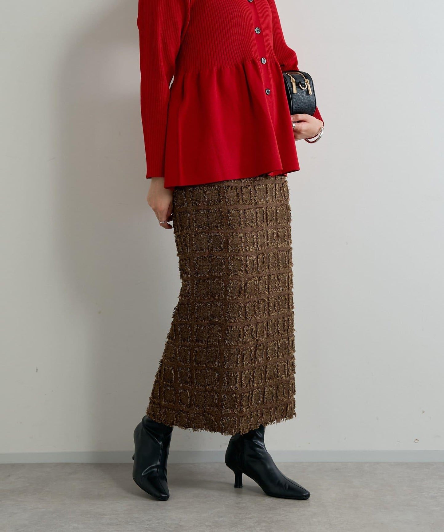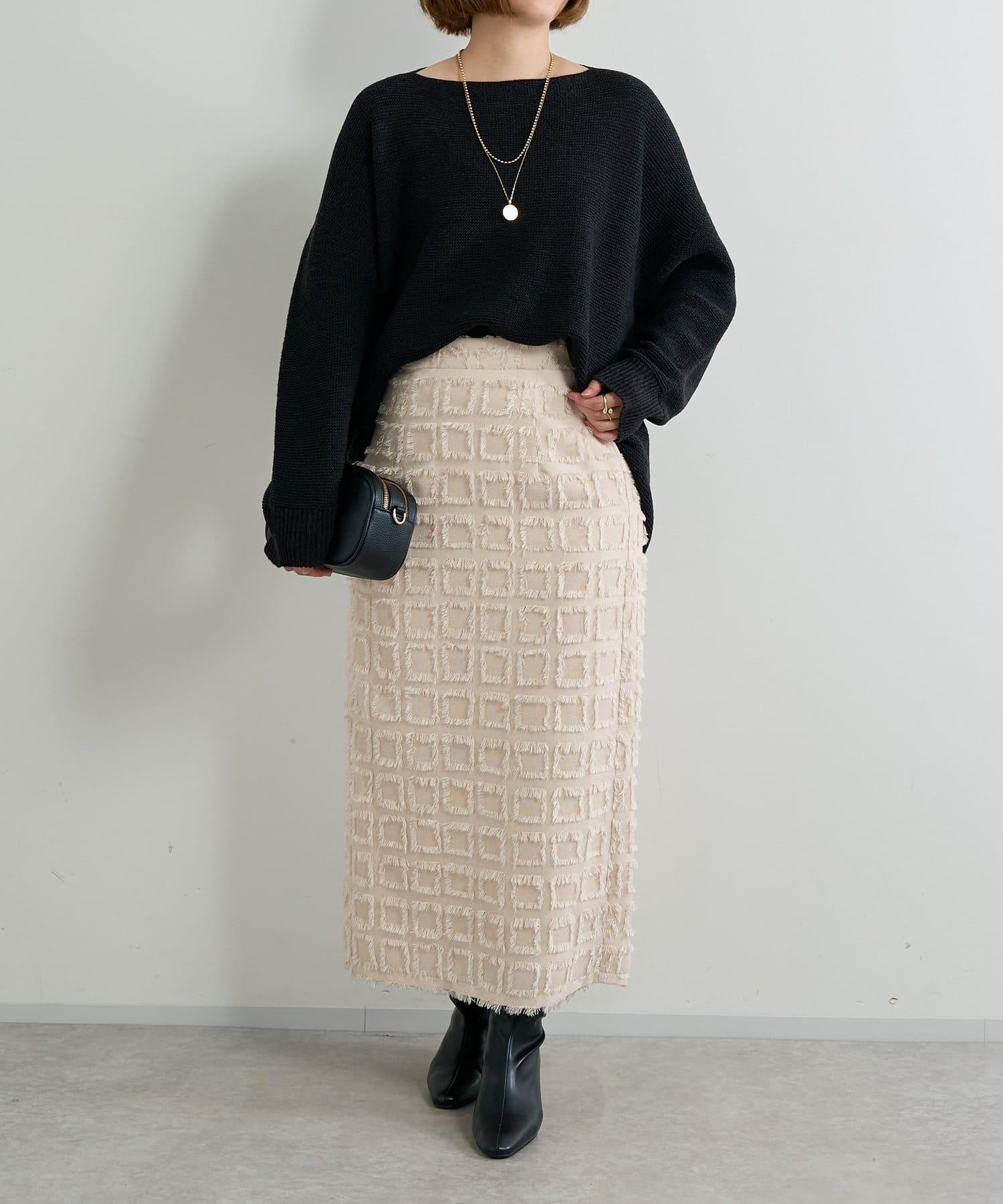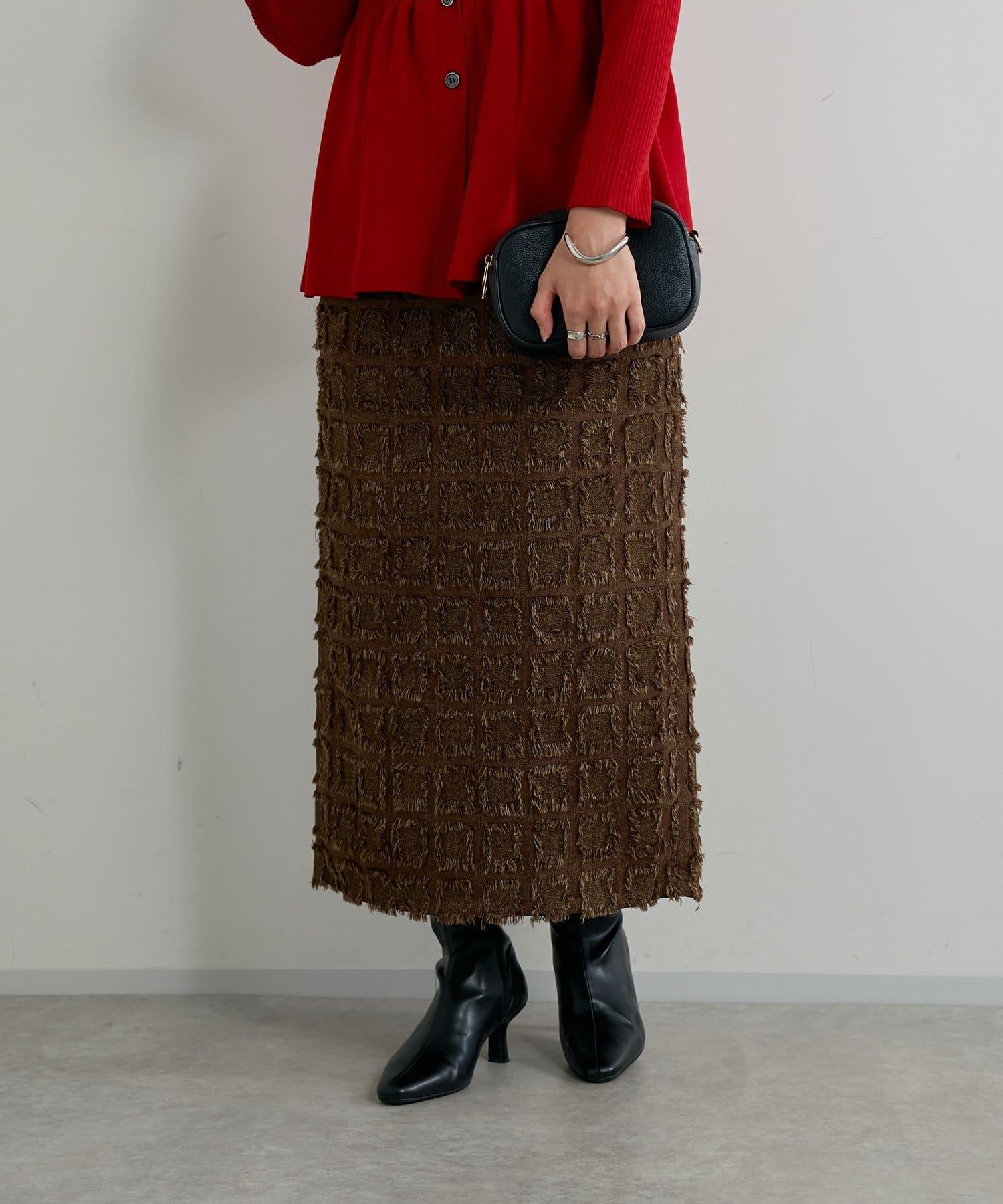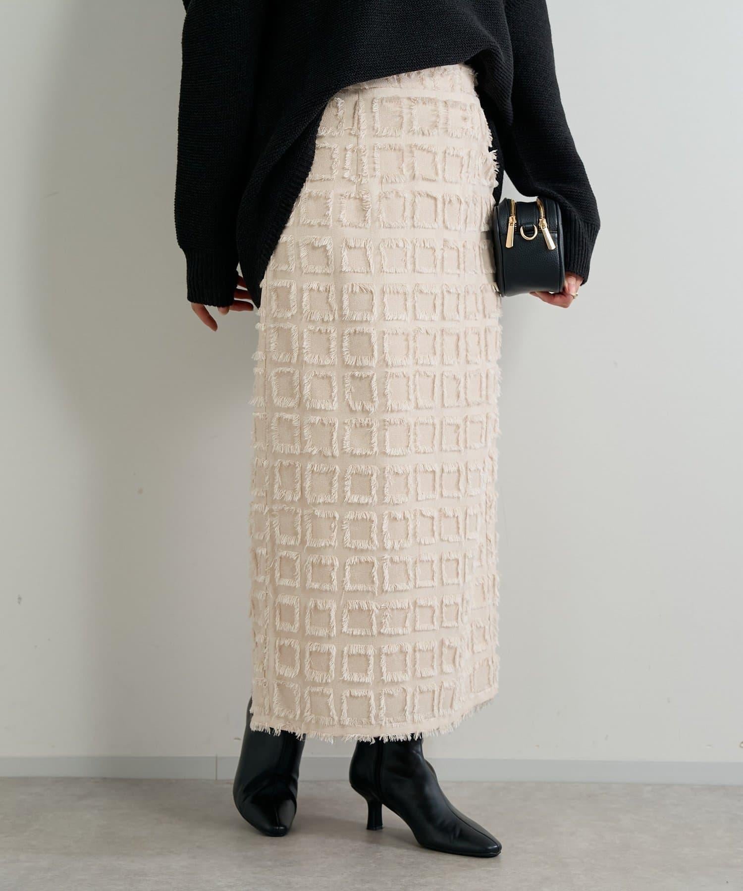立體感十足的方形提花設計吸引眼球,讓這款裙子成為全場的焦點。