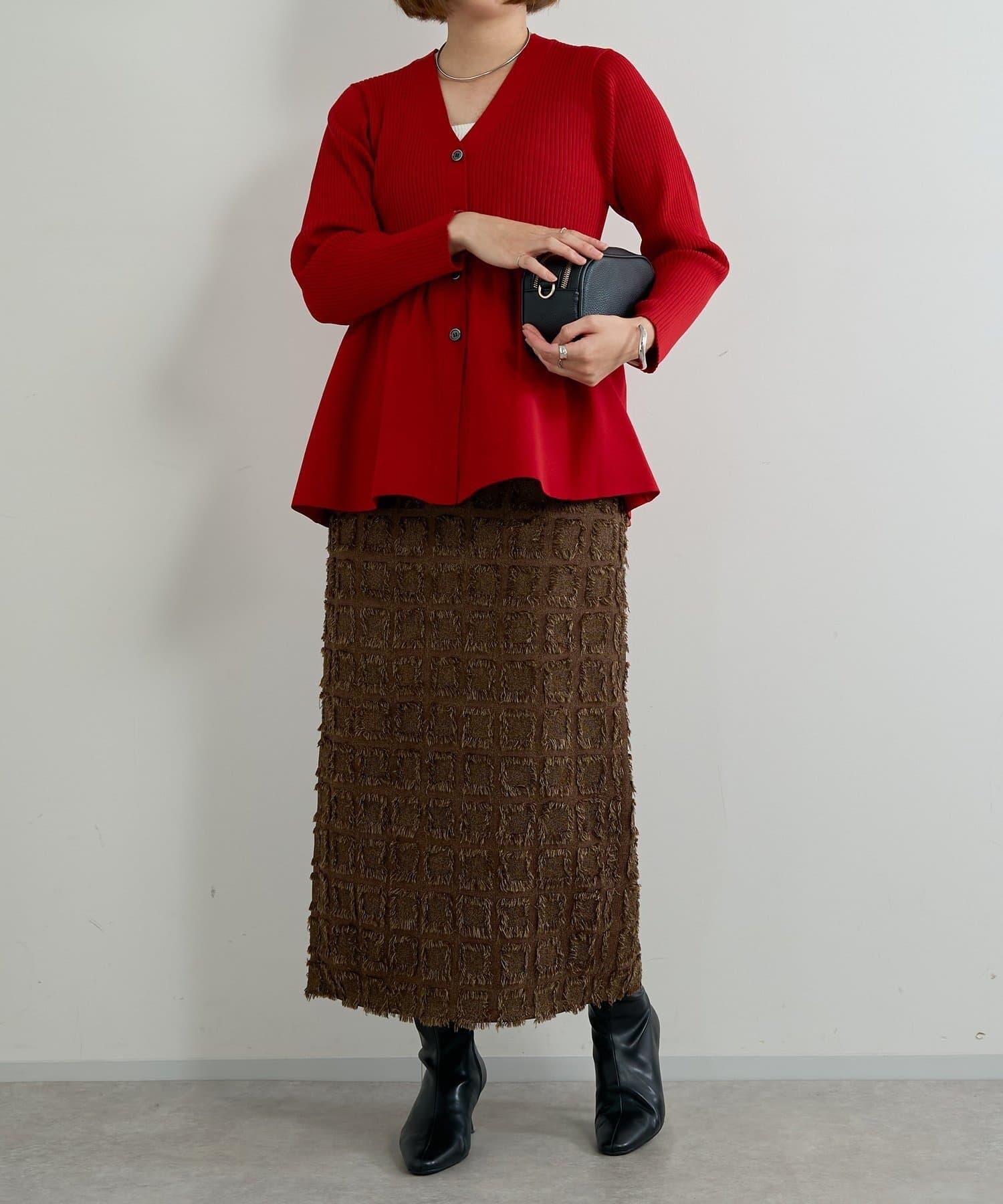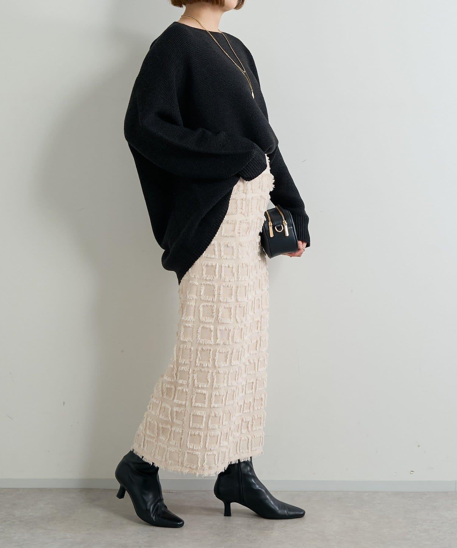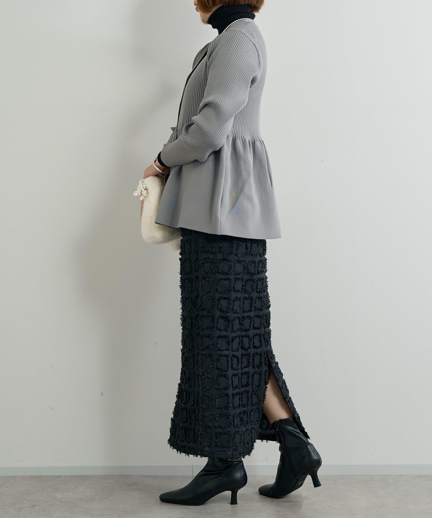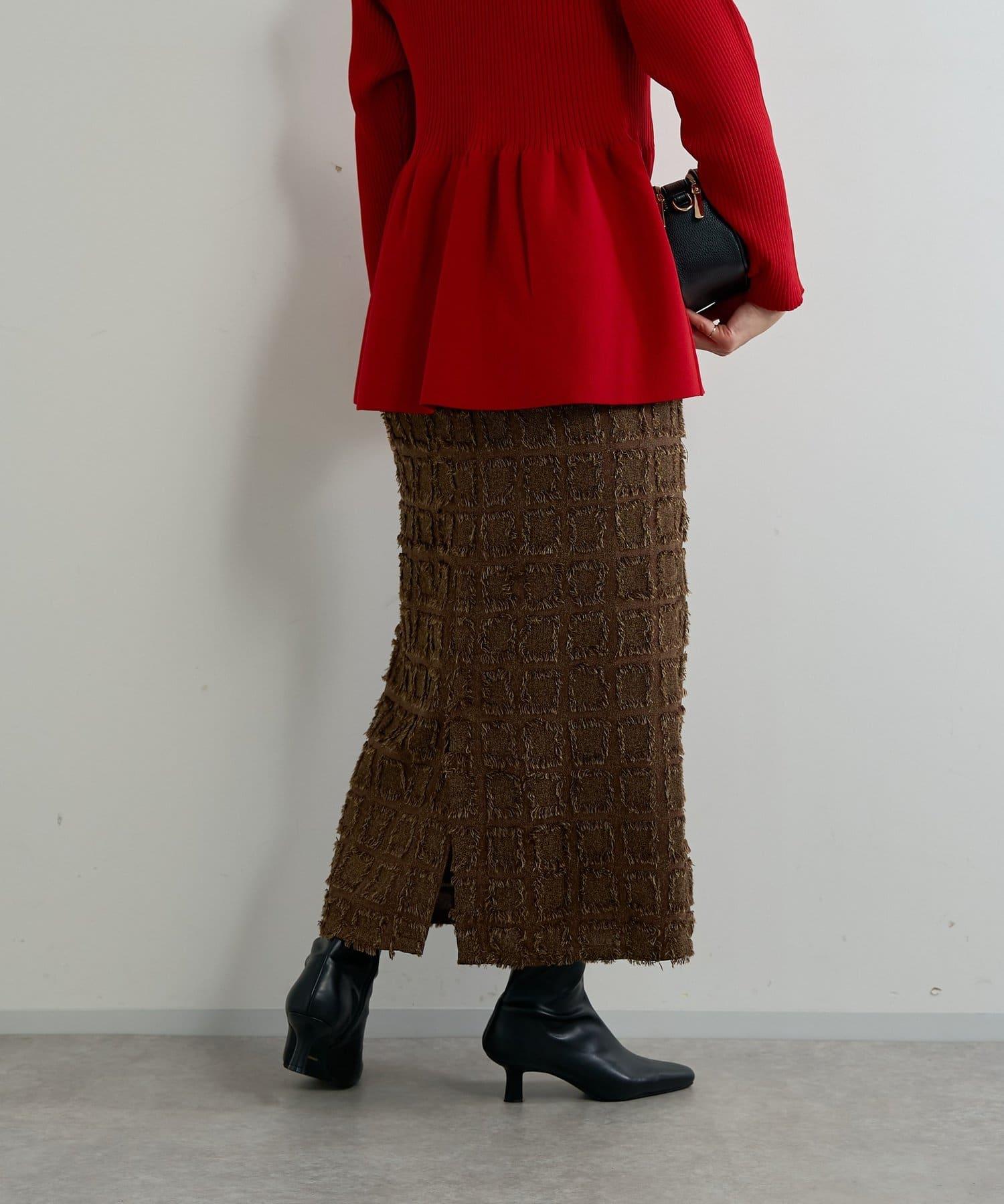 立體感十足的方形提花設計吸引眼球,讓這款裙子成為全場的焦點。