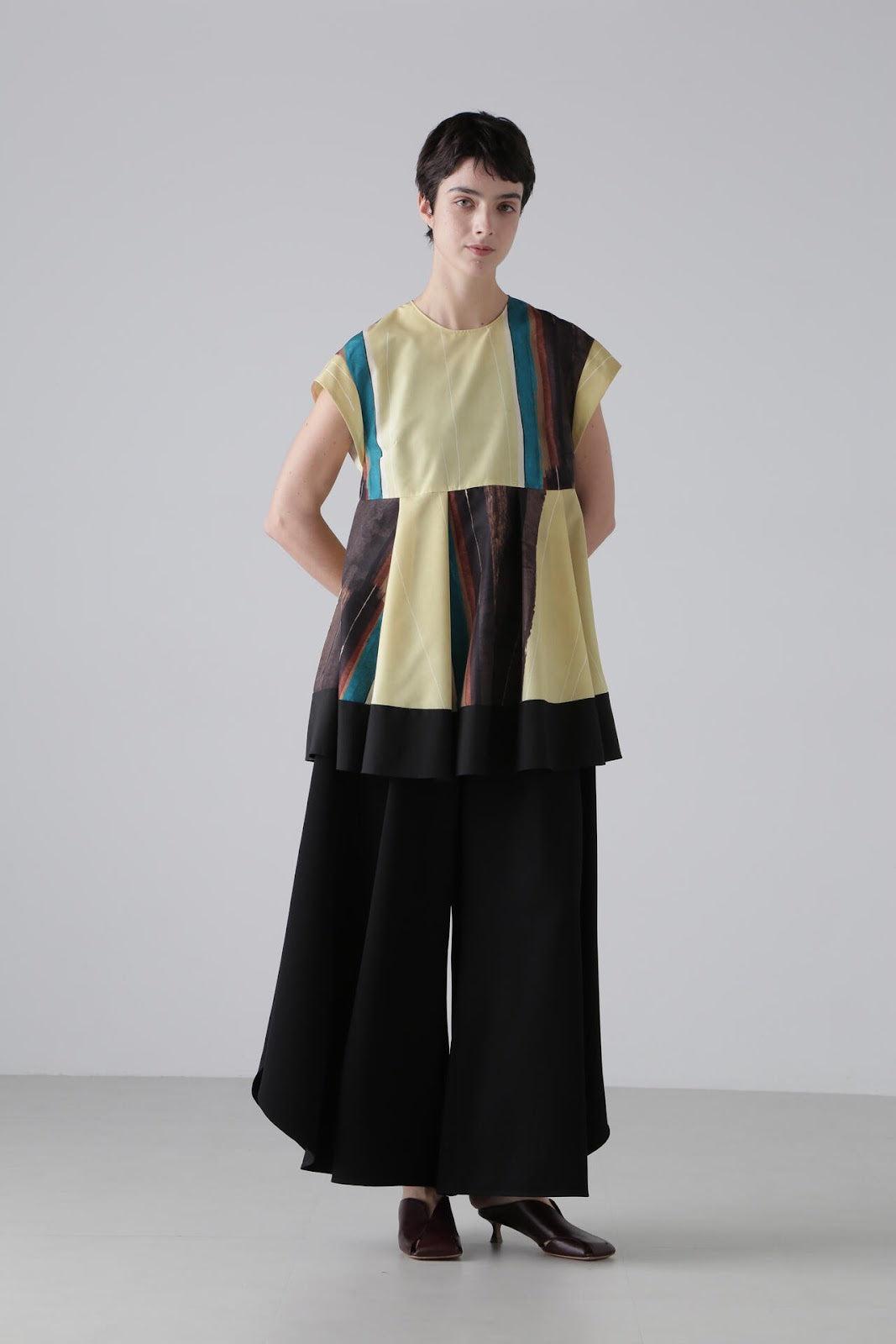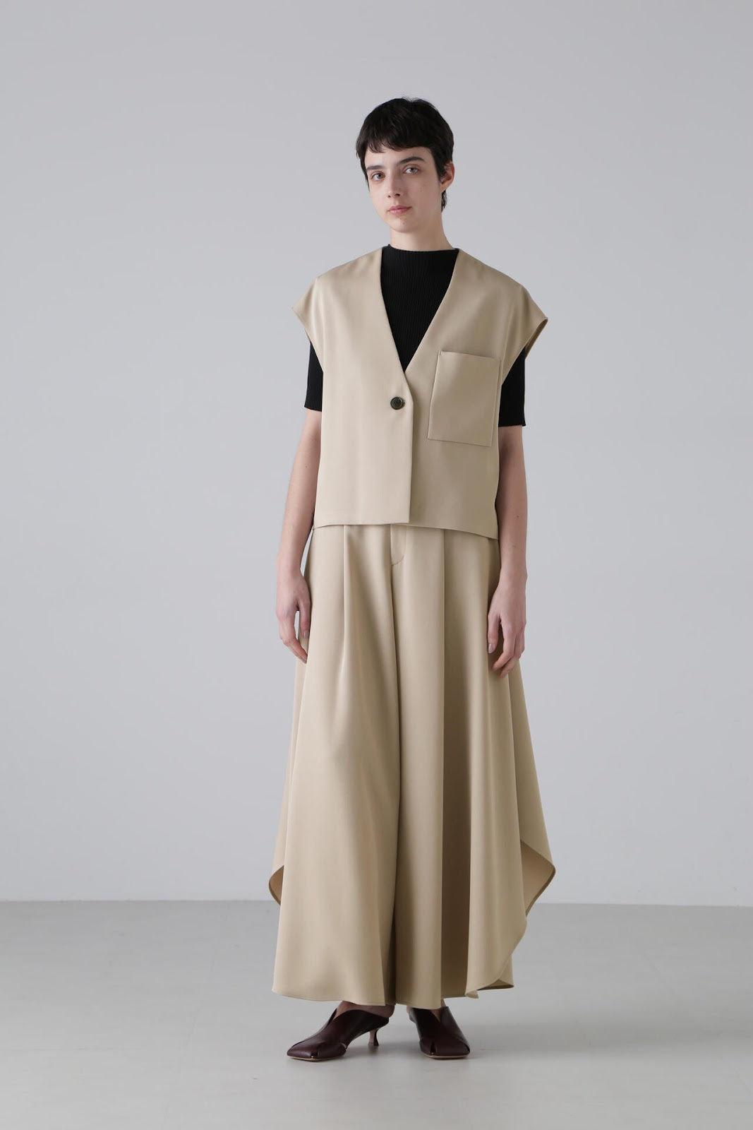 Dry cashidos 喇叭褲這款喇叭褲採用合成 Dry cashidos 面料製成,在 24SS 季度大受歡迎。這款喇叭褲採用了 24SS 季流行的合成幹 Cashidos 面料,設計簡約,但下襬處有一個大喇叭,使褲子看起來像裙子一樣。可搭配同款外套(貨號 531-5150304)和上衣(貨號 531-5110304)。該面料由滌綸/氨綸混紡製成,手感柔軟豐滿,採用男式面料結構,表面光潔,具有適度的張力和垂墜感。