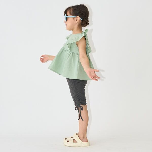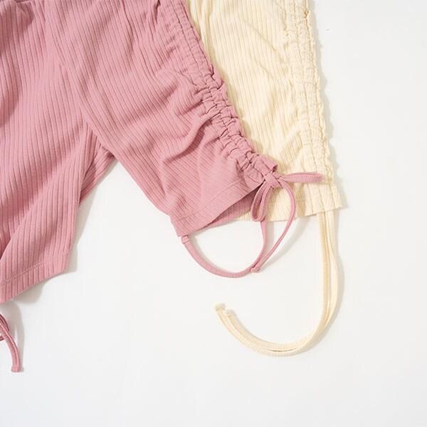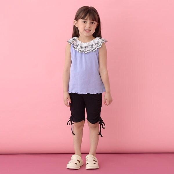 兩側採用寬鬆的收邊設計,下襬繫有絲帶,盡顯少女風情。