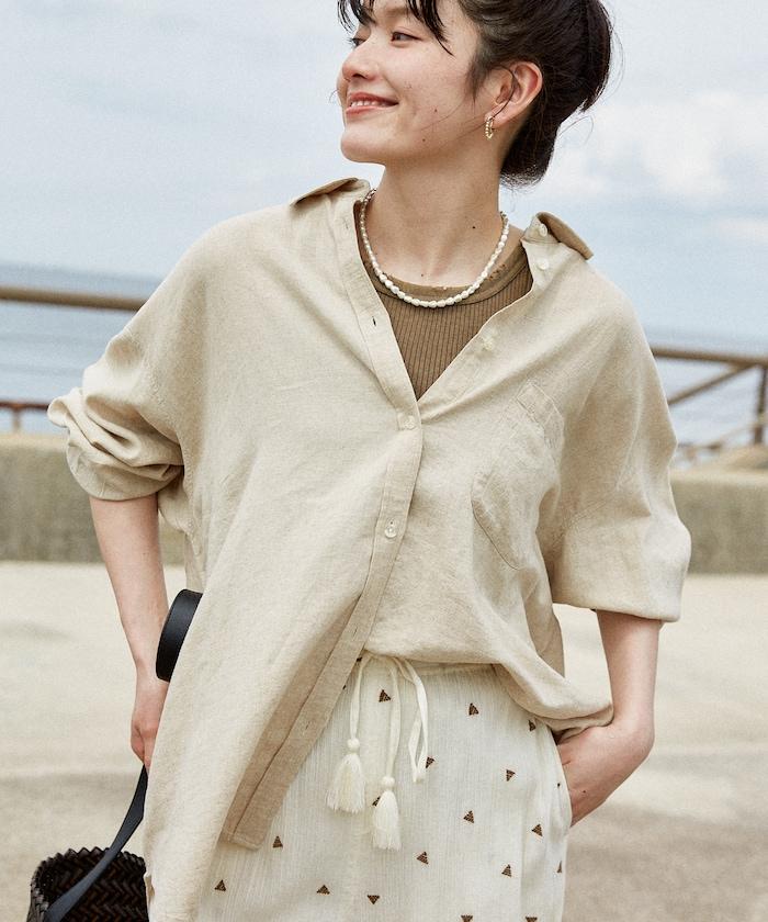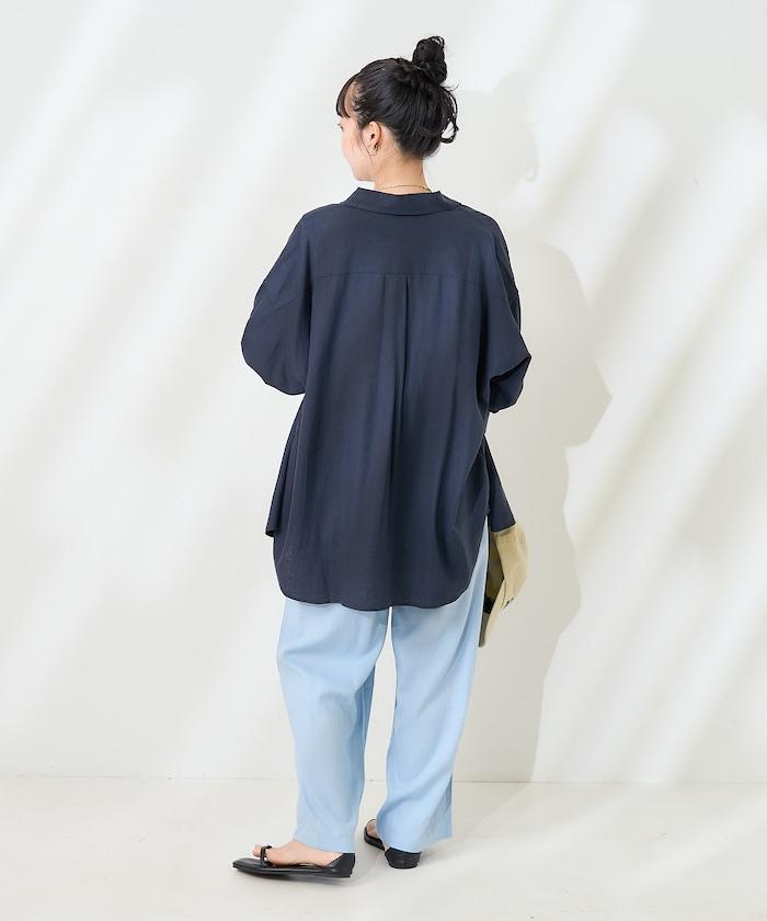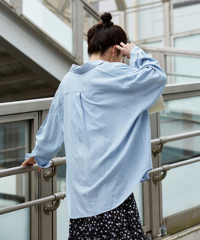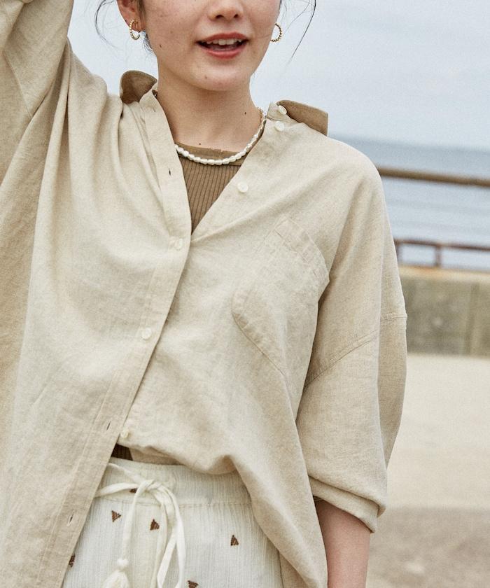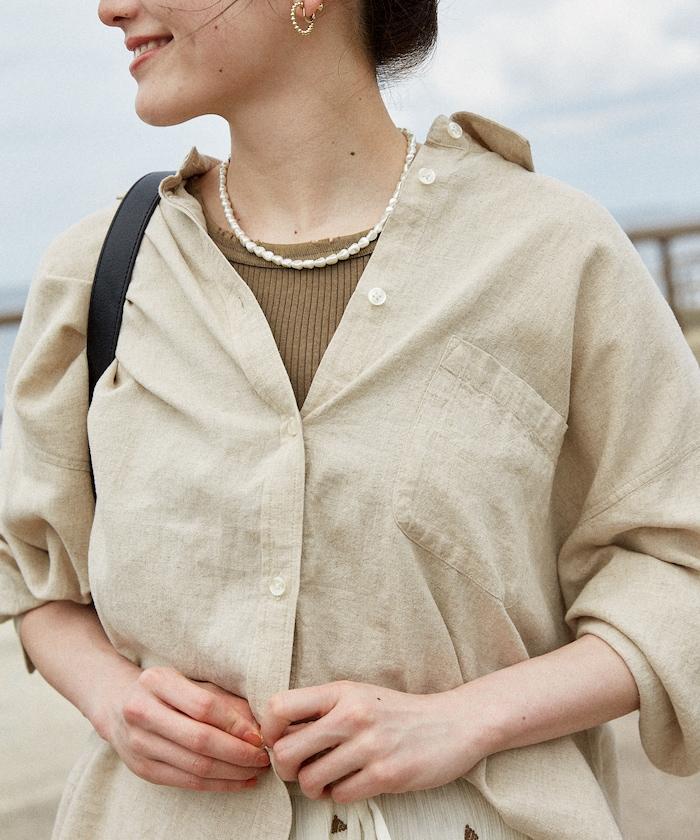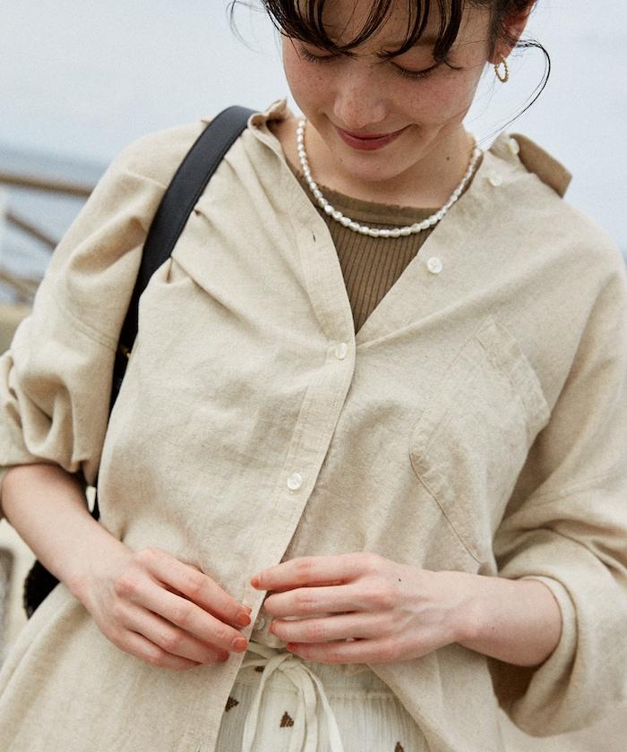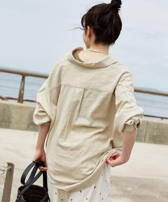 採用亞麻混紡面料製成的長袖襯衫,手感柔軟寬鬆。
