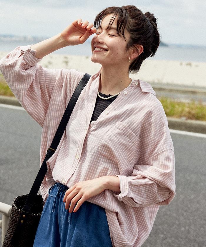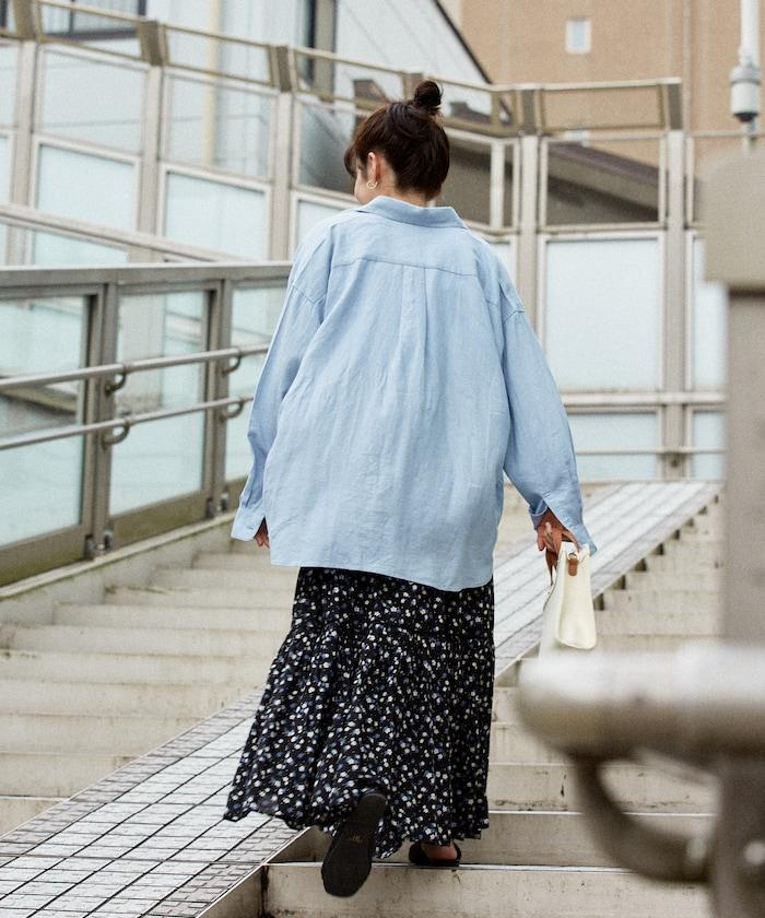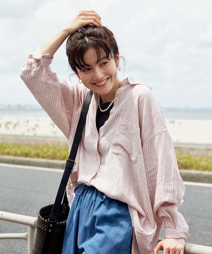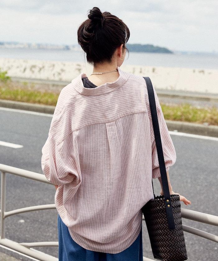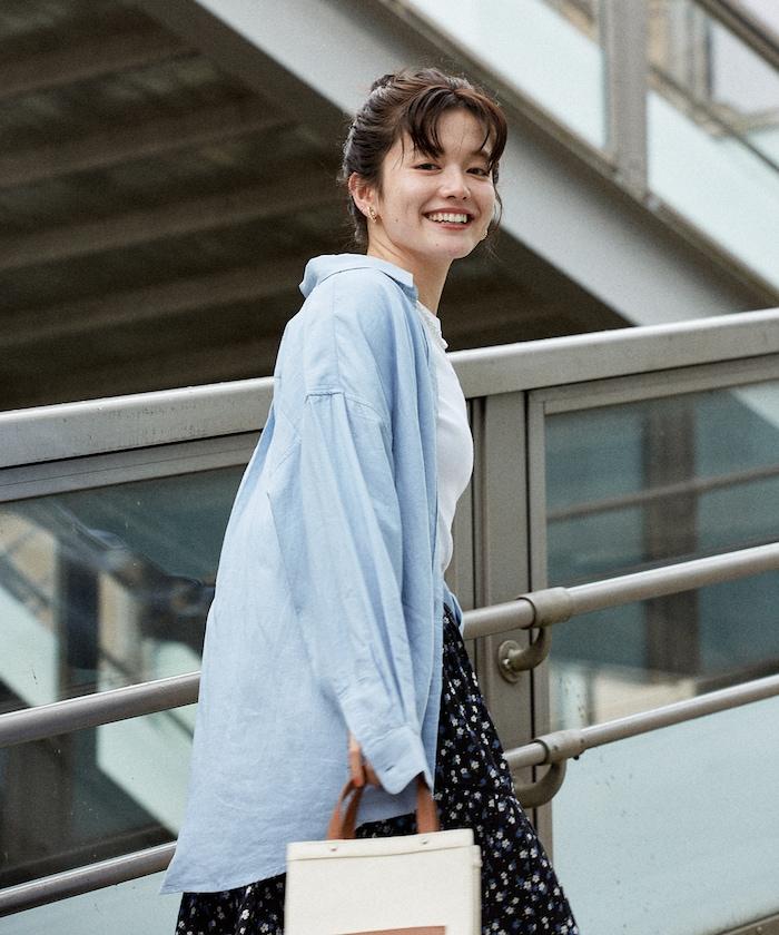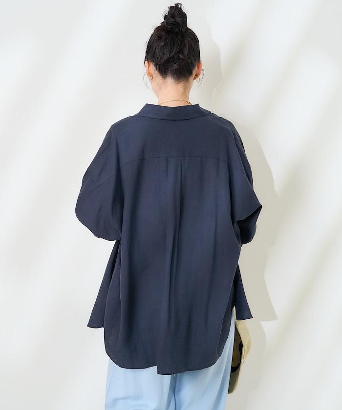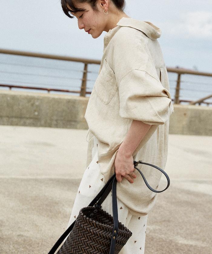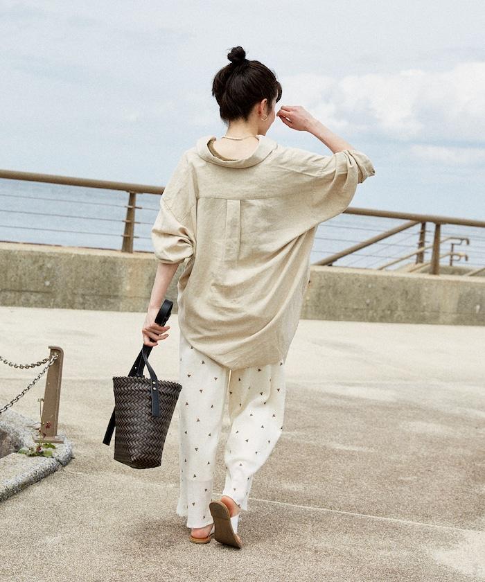 採用亞麻混紡面料製成的長袖襯衫,手感柔軟寬鬆。