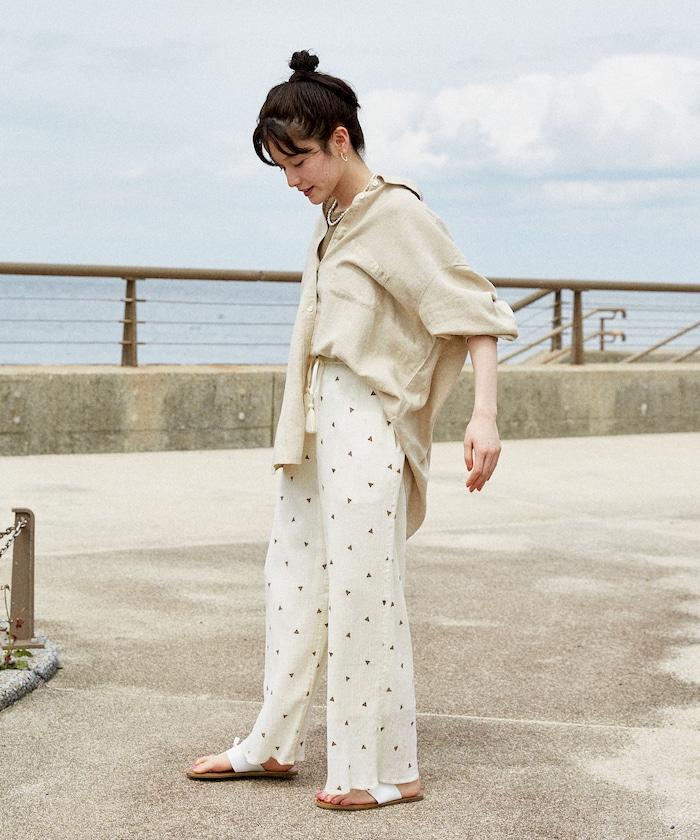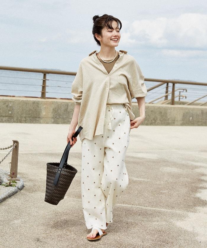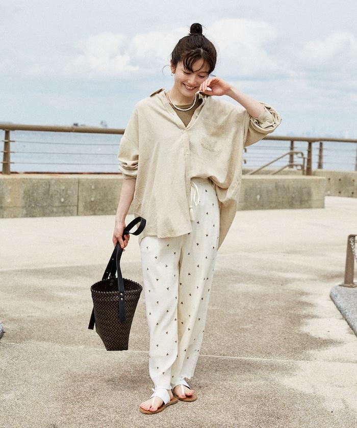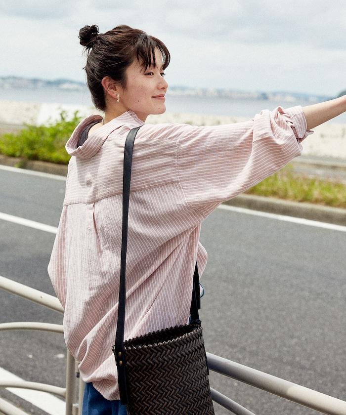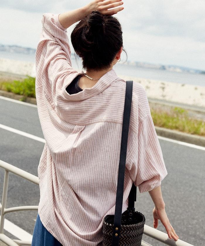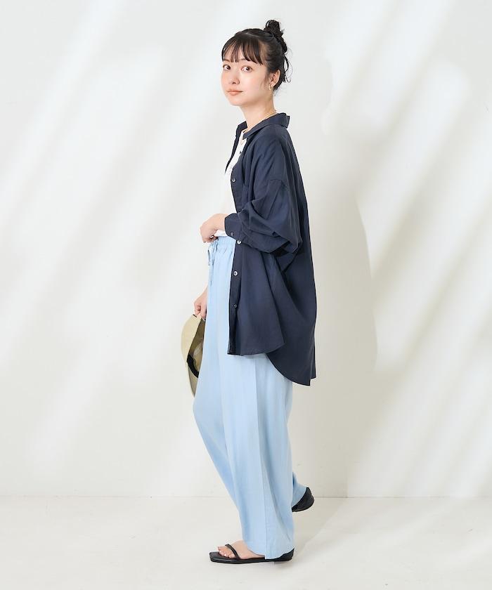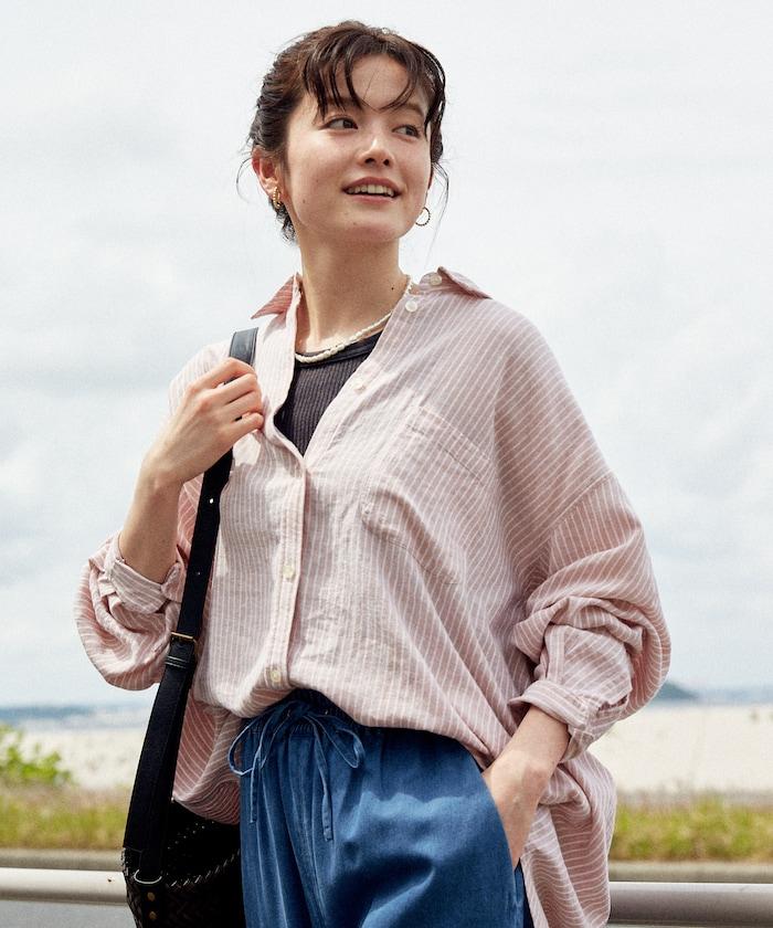 採用亞麻混紡面料製成的長袖襯衫,手感柔軟寬鬆。