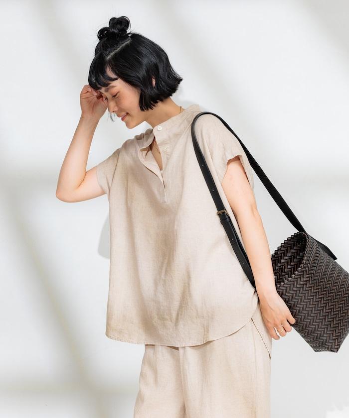 採用亞麻混紡面料製成的船長襯衫,手感柔軟舒適。