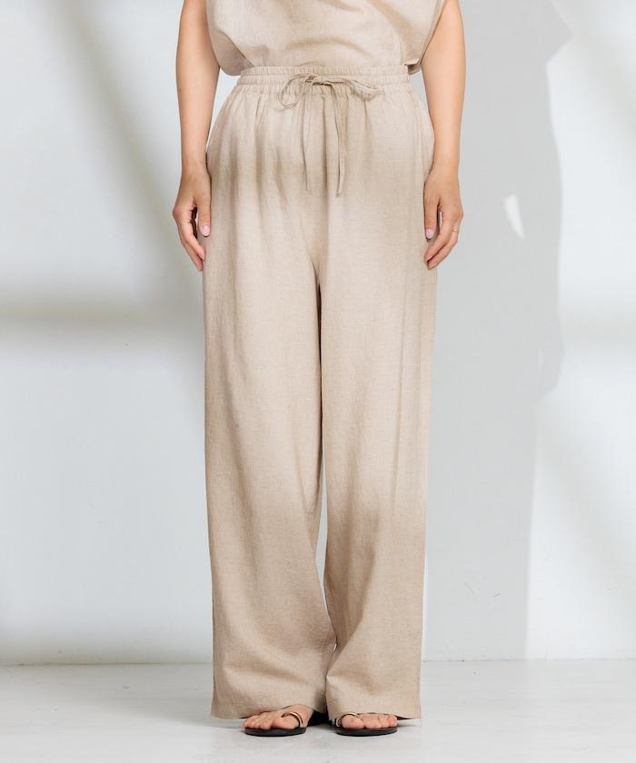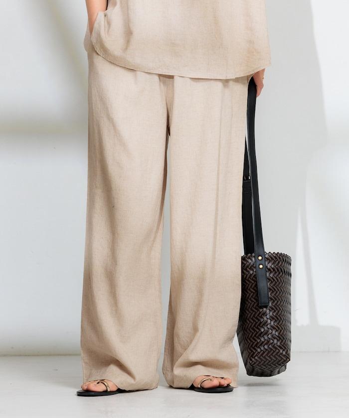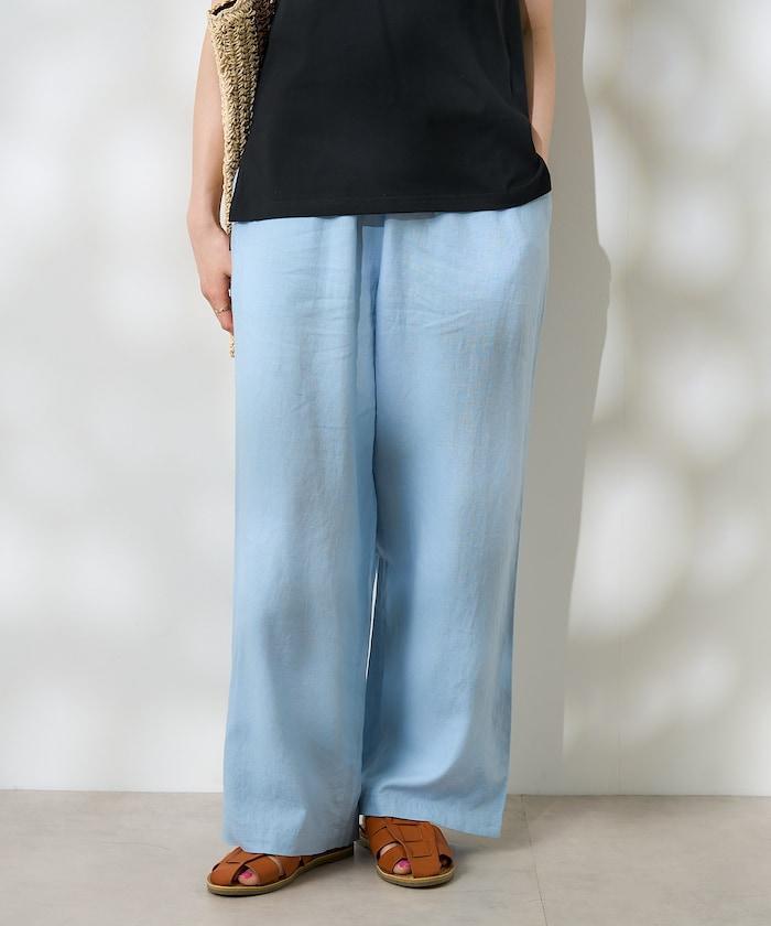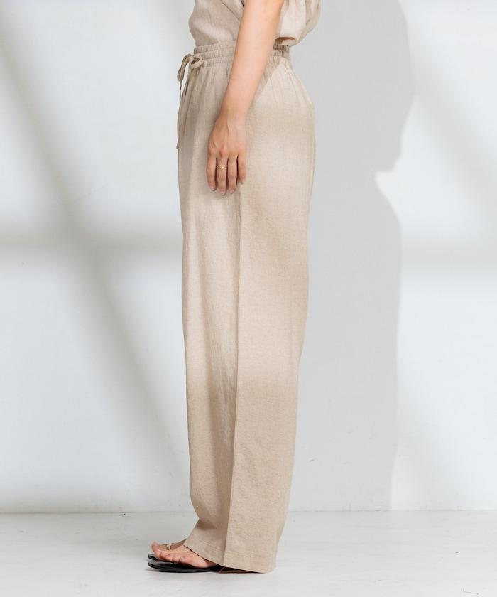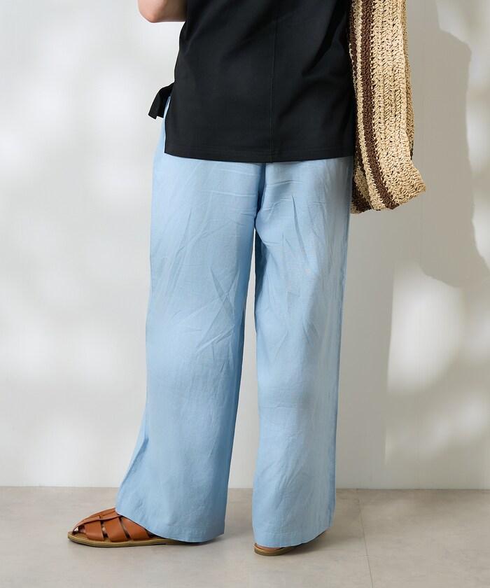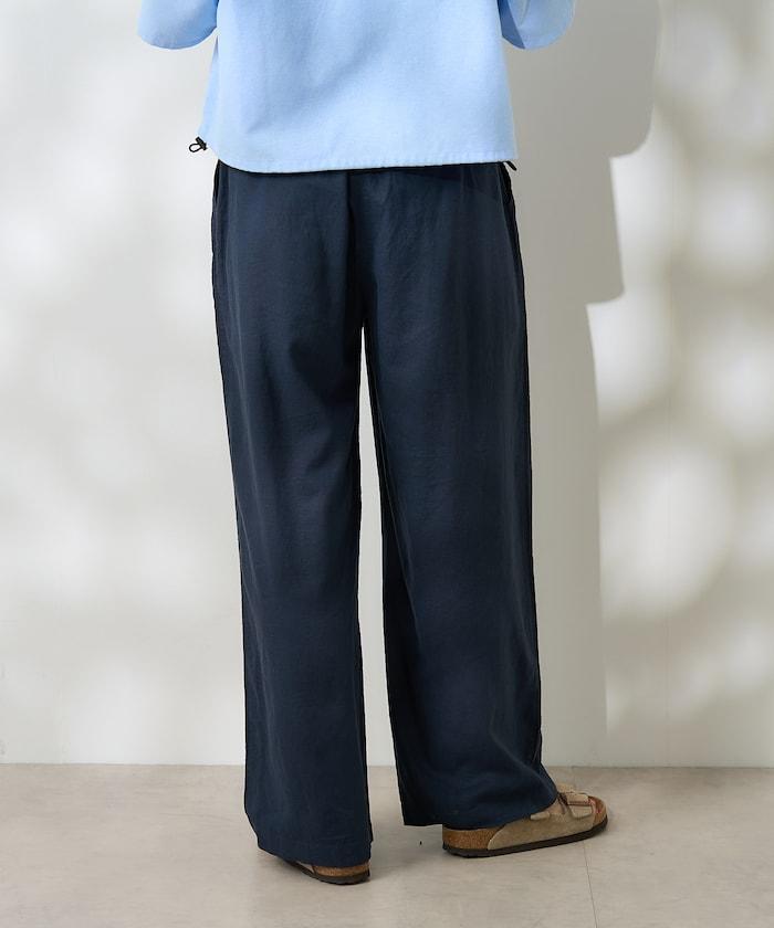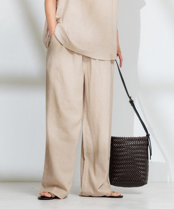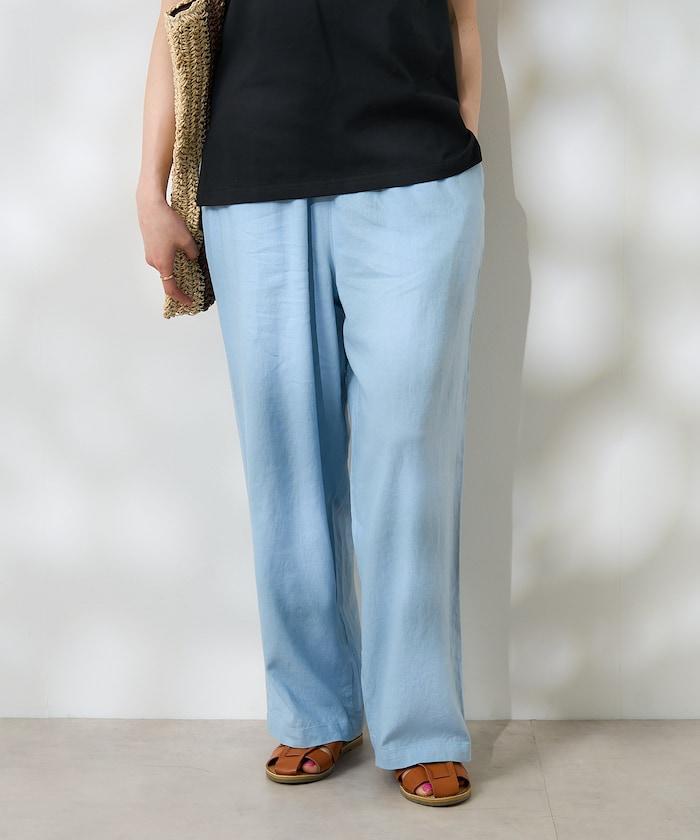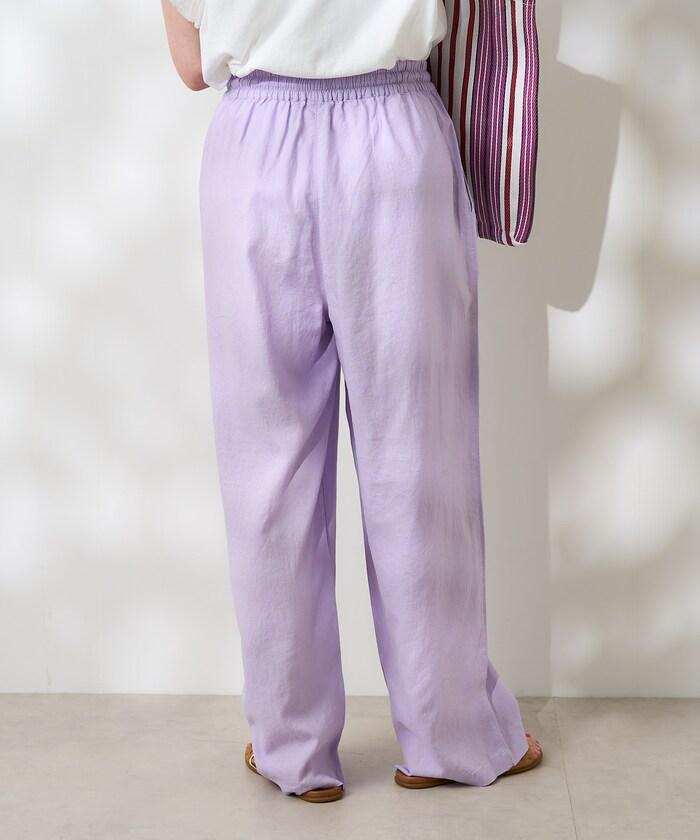 採用亞麻混紡面料製成的簡易長褲,手感柔軟舒適。