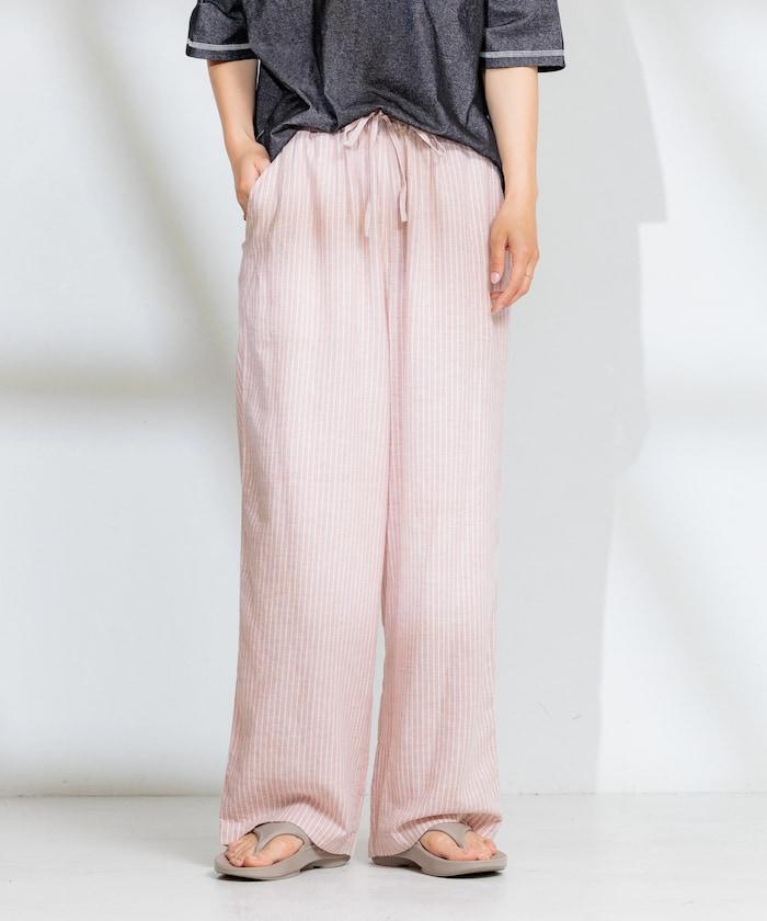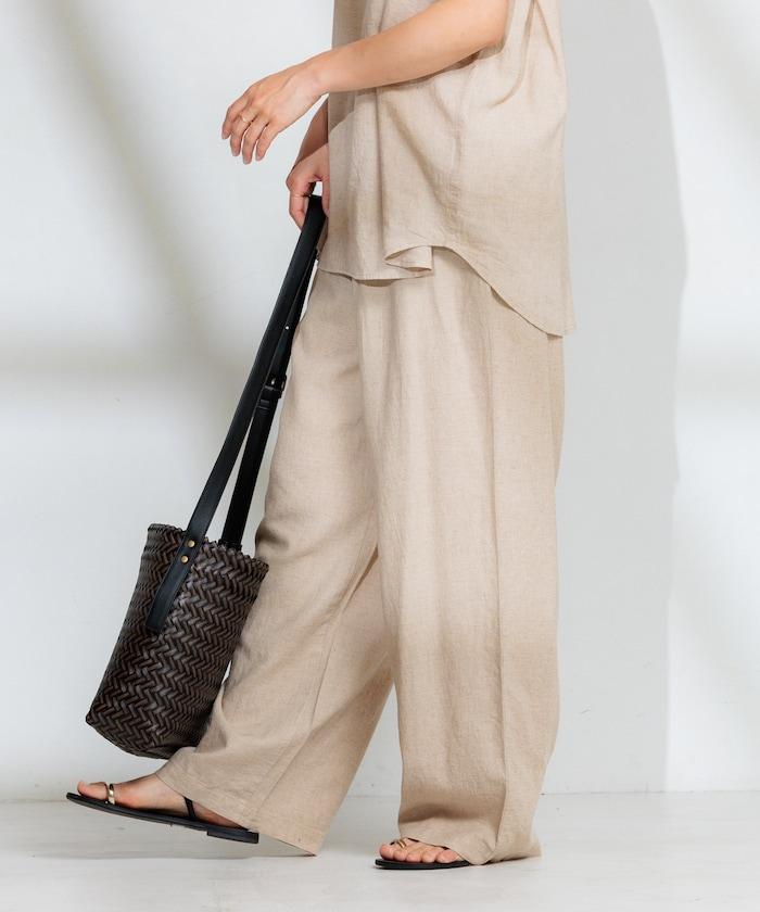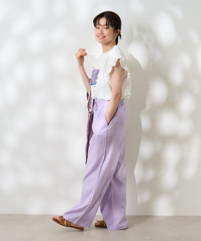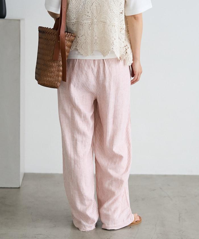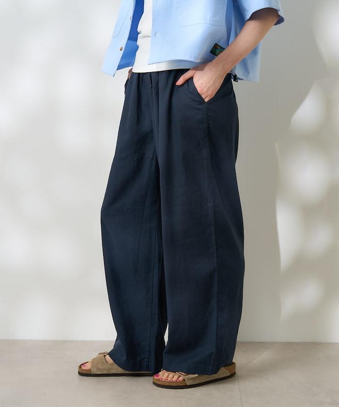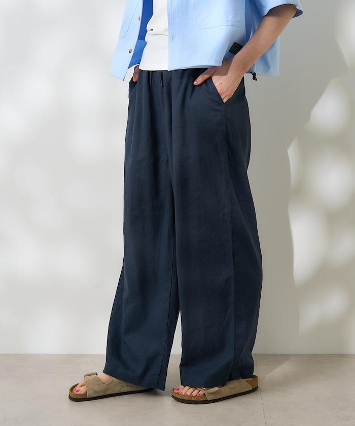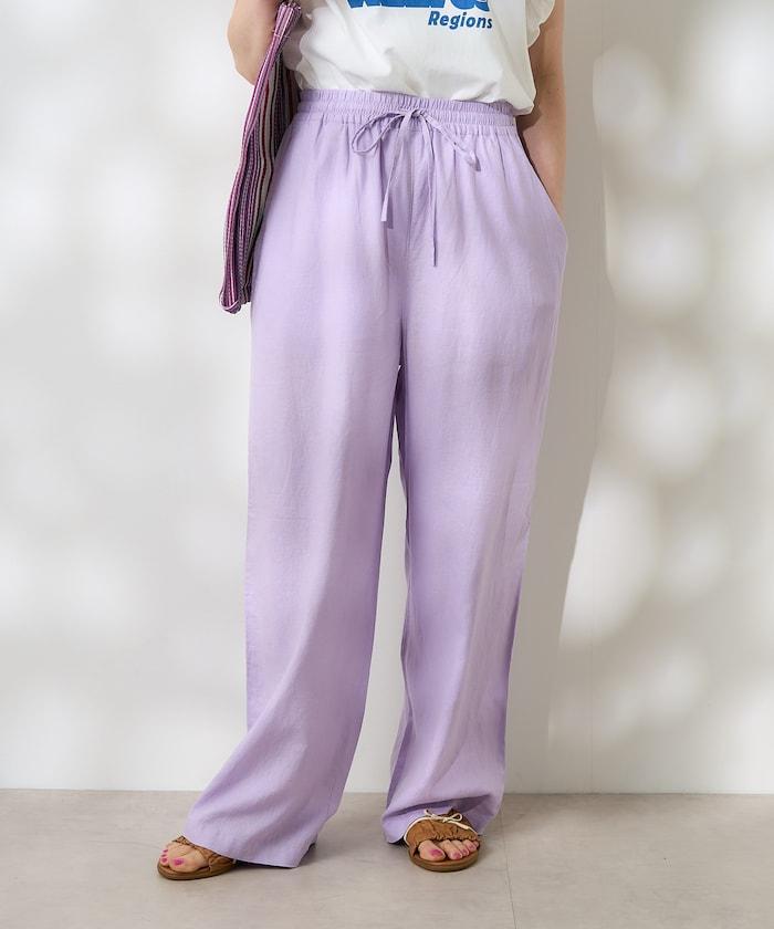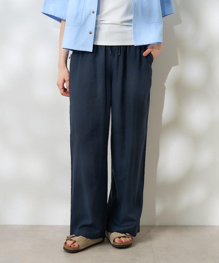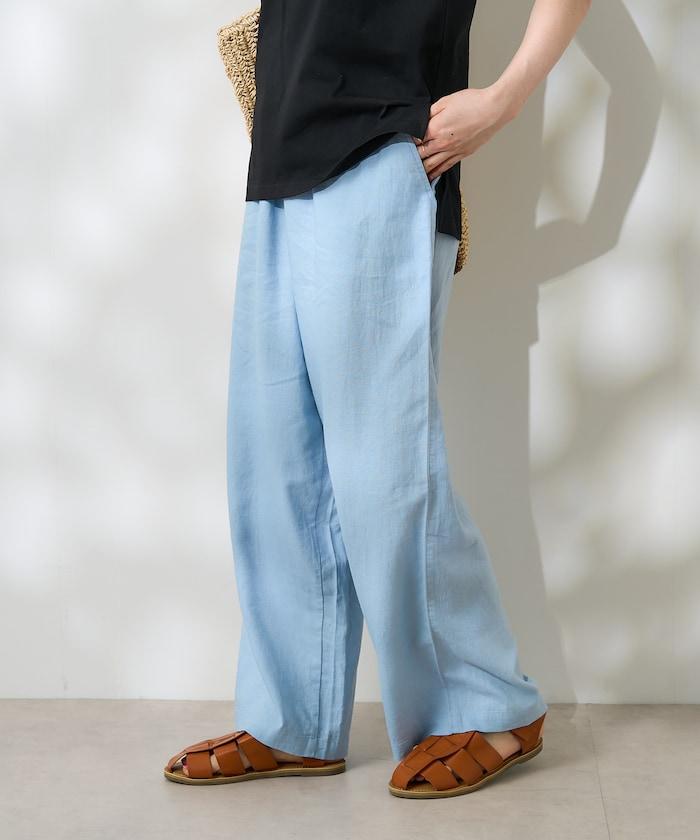 採用亞麻混紡面料製成的簡易長褲,手感柔軟舒適。
