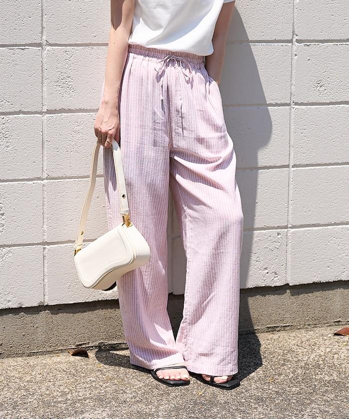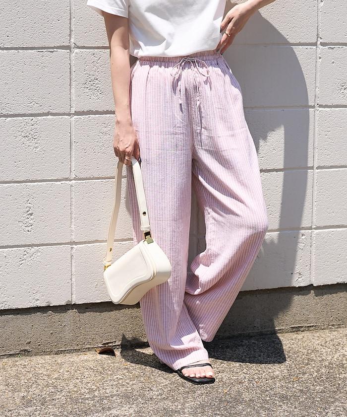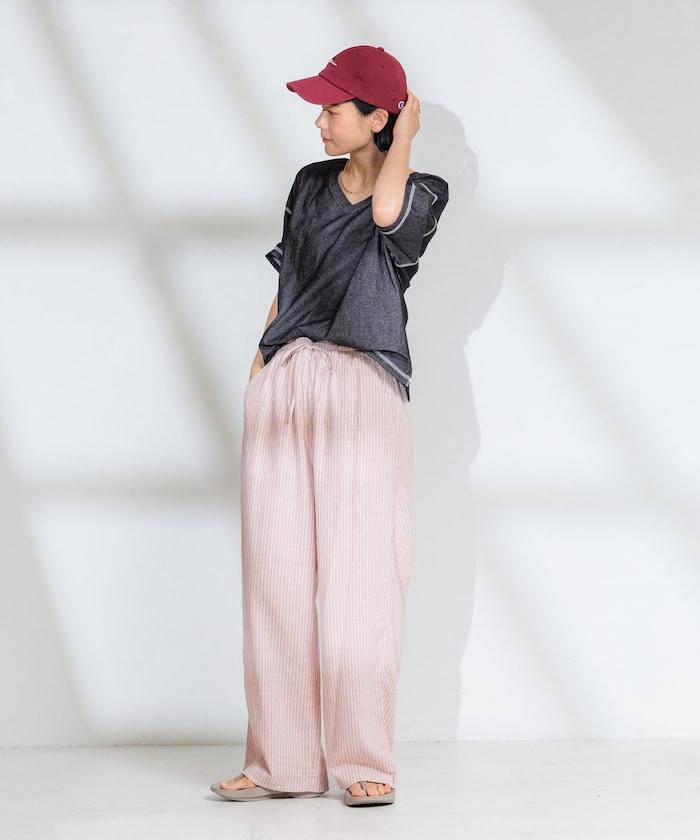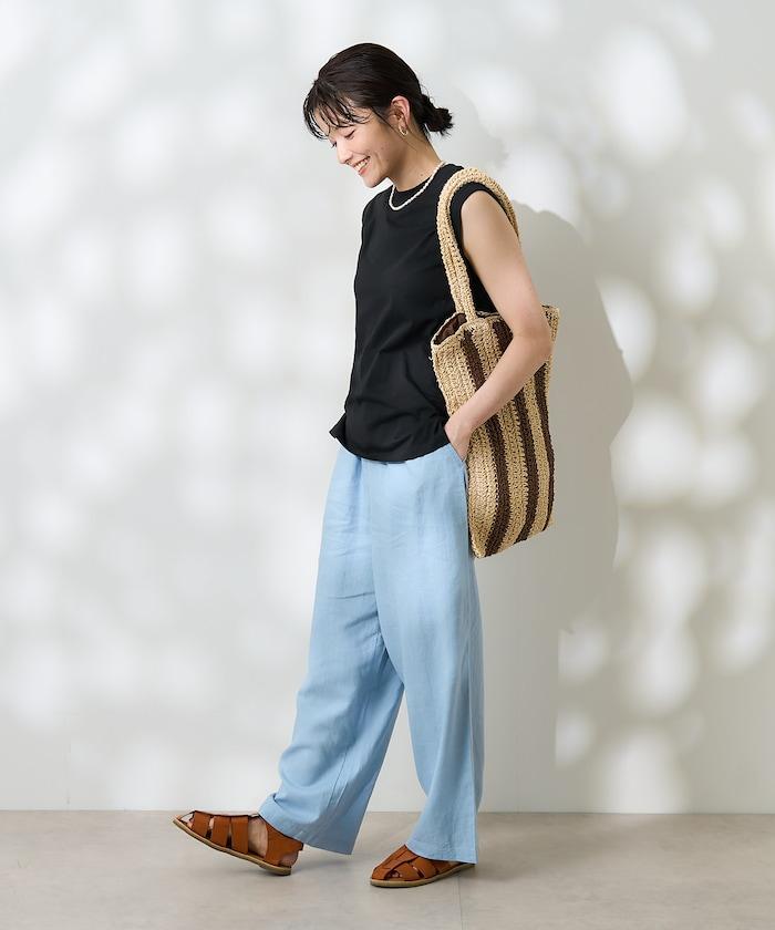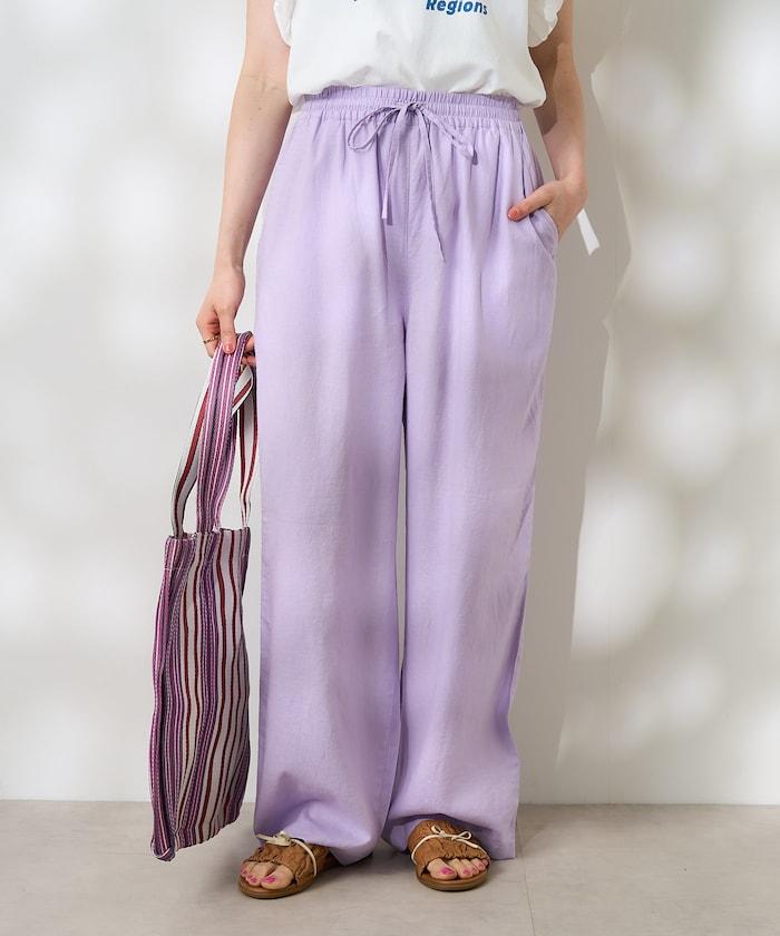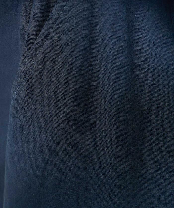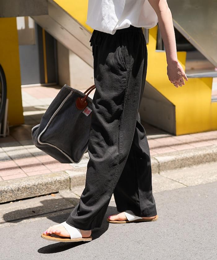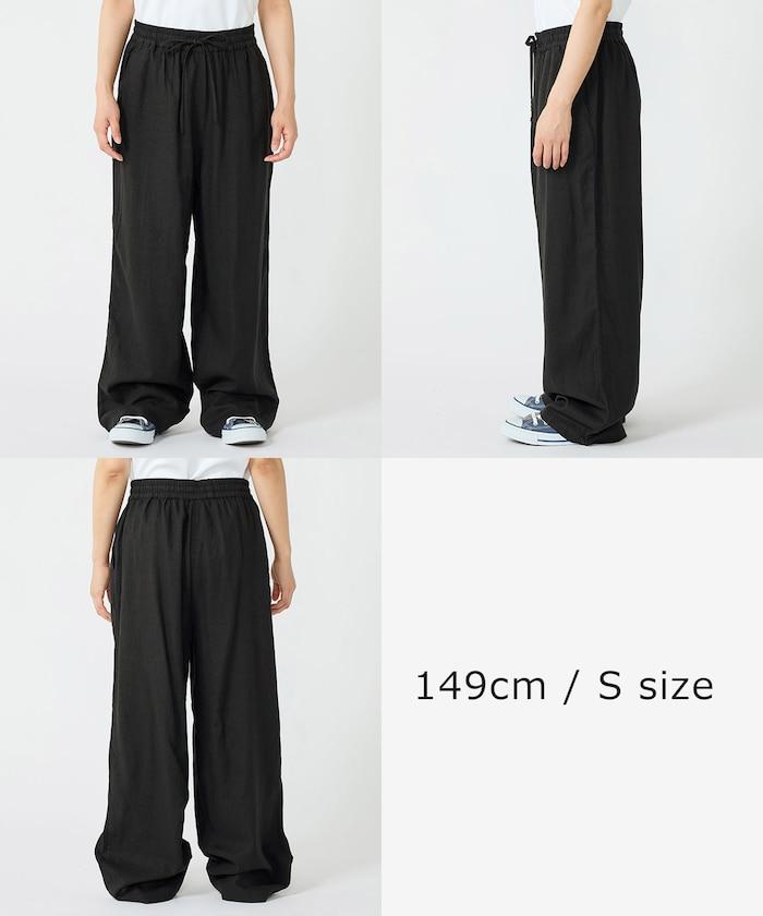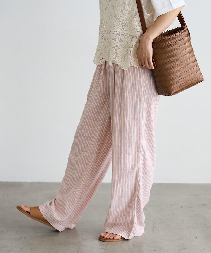 採用亞麻混紡面料製成的簡易長褲,手感柔軟舒適。
