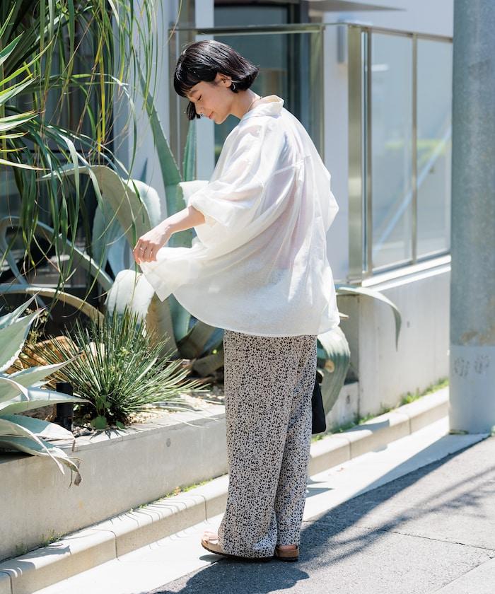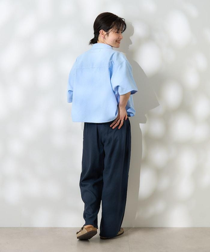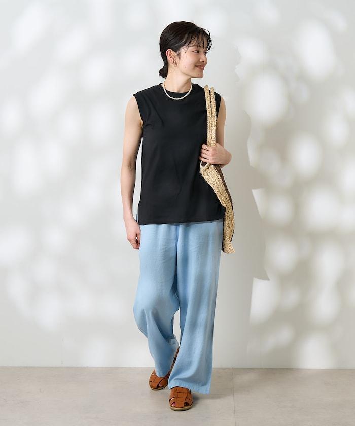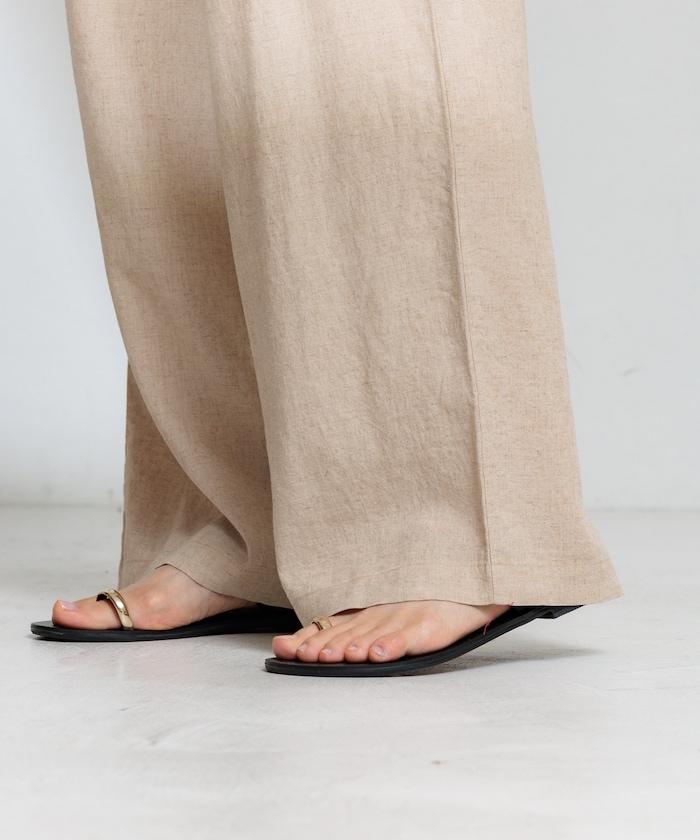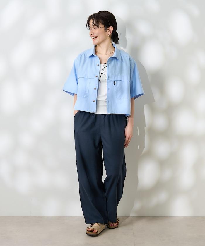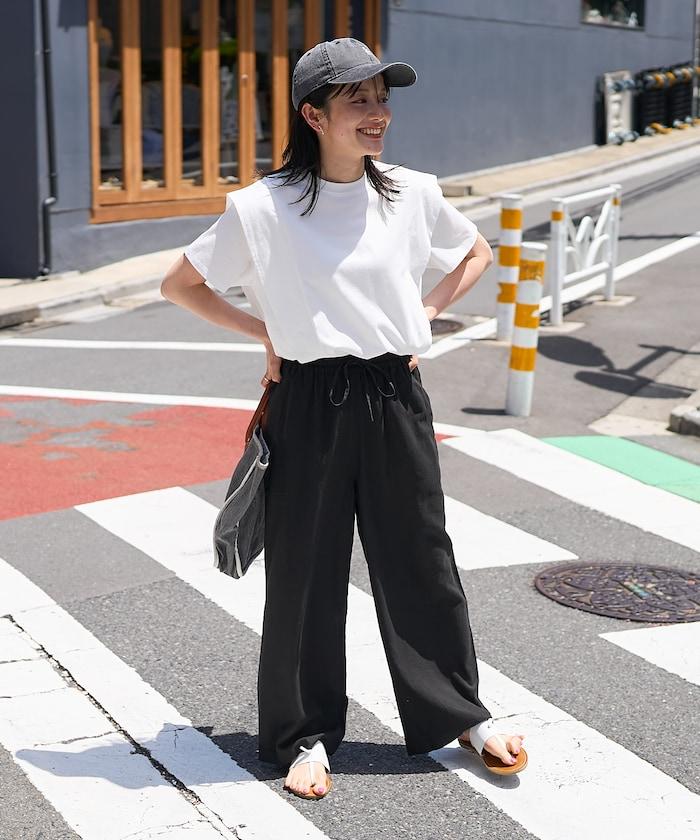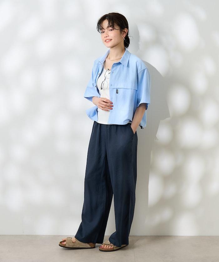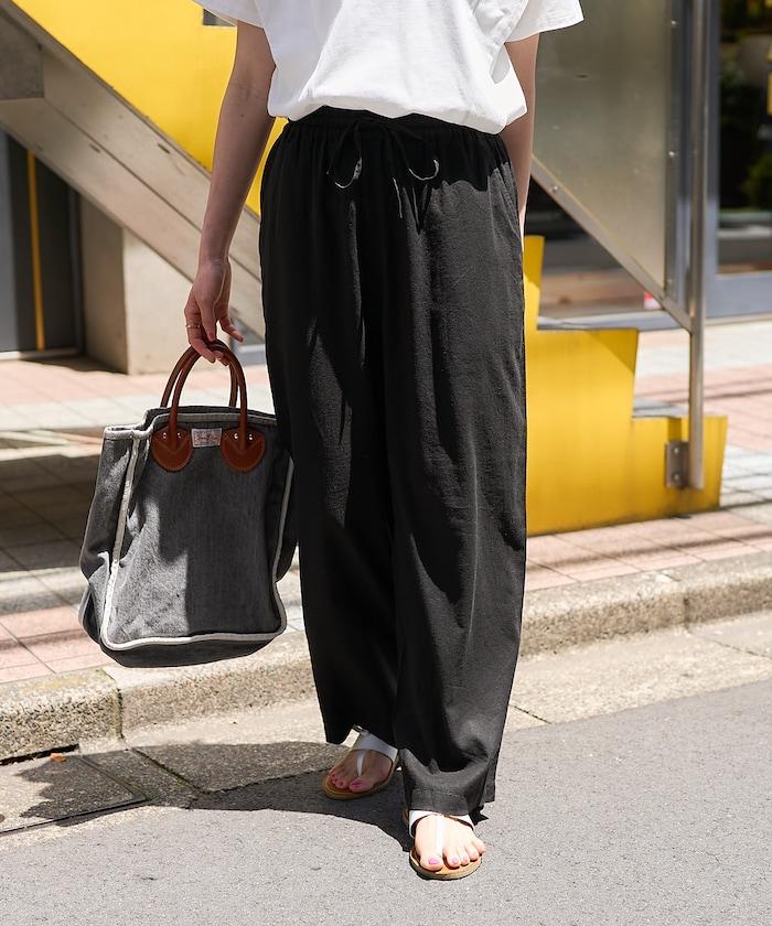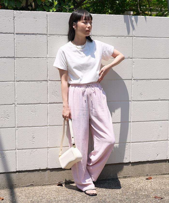 採用亞麻混紡面料製成的簡易長褲,手感柔軟舒適。