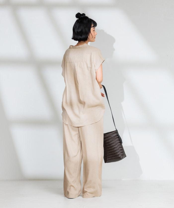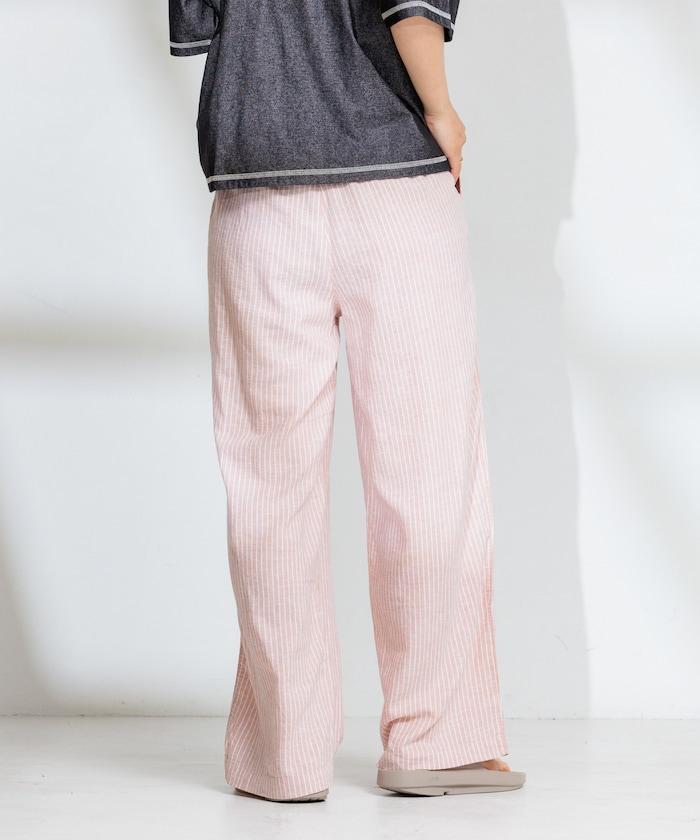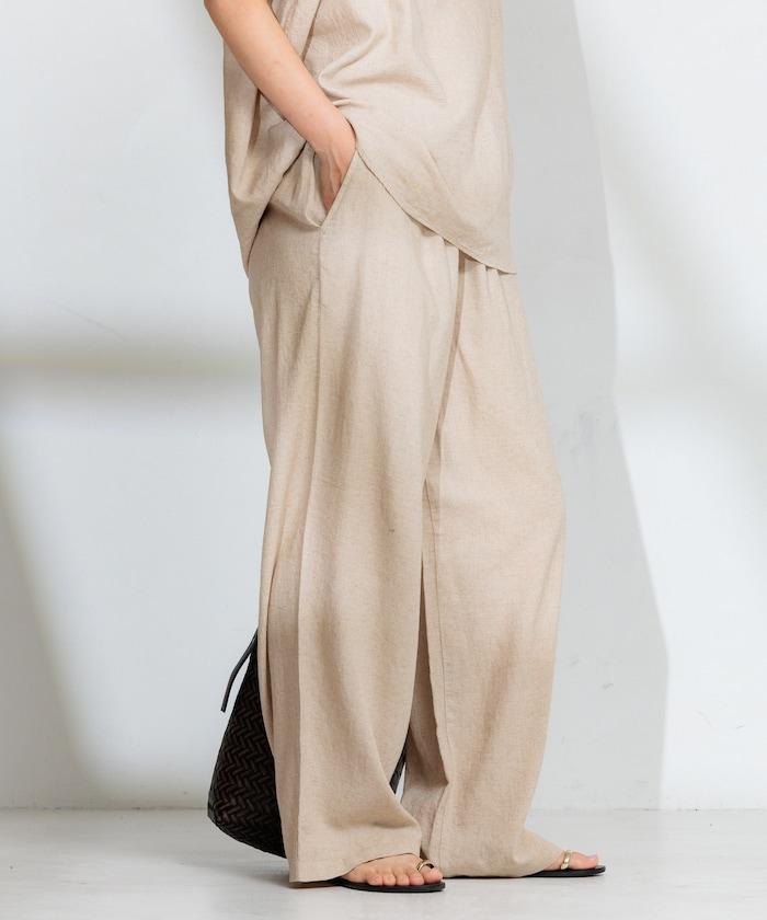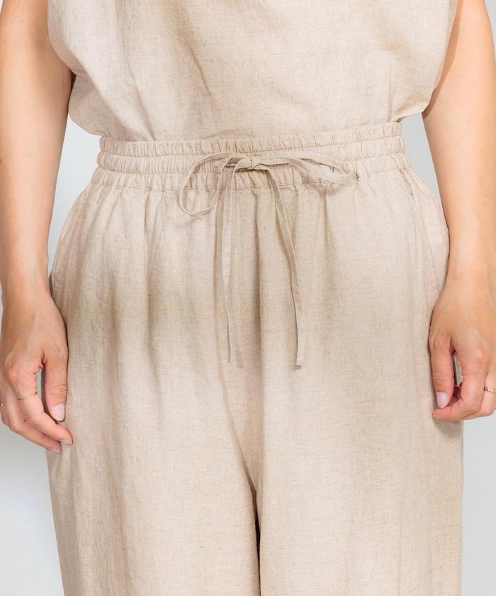 亞麻混紡 寬鬆 休閒褲<可搭配套裝>