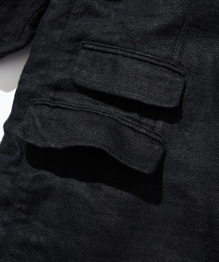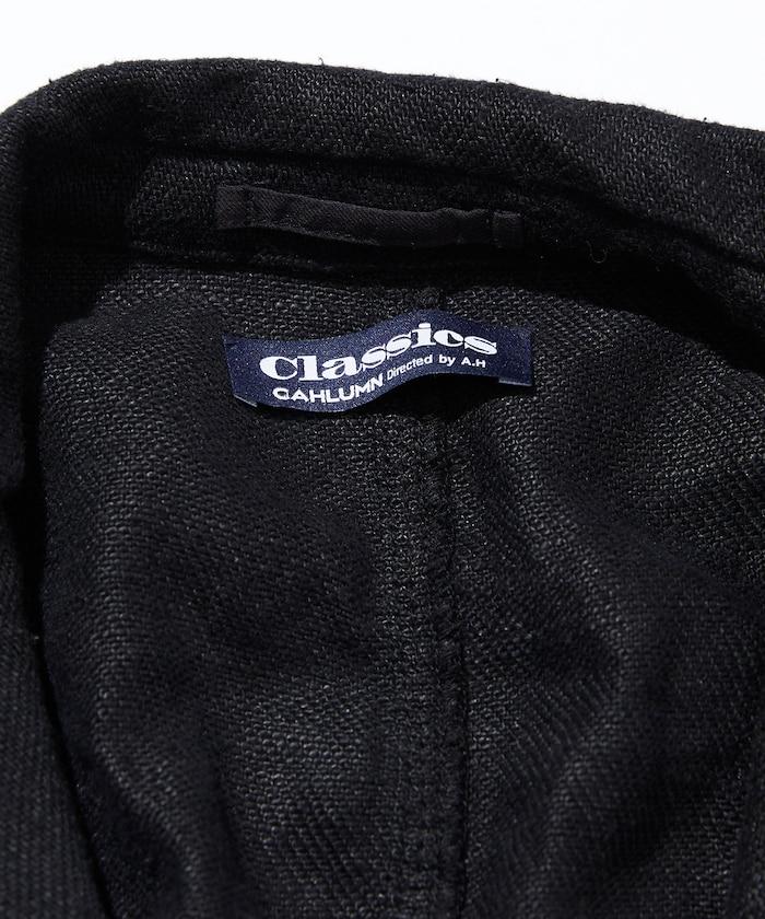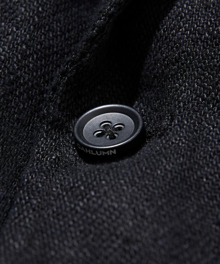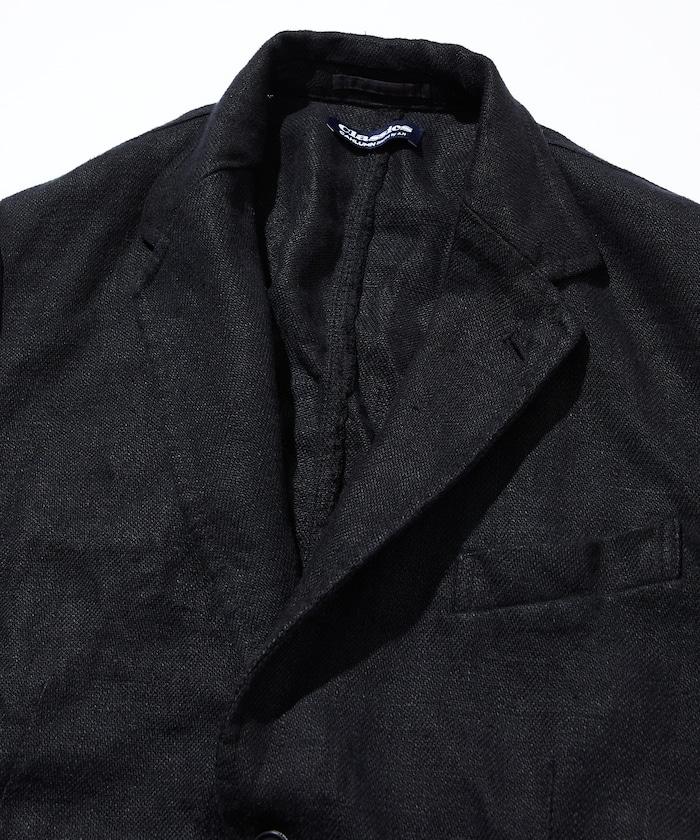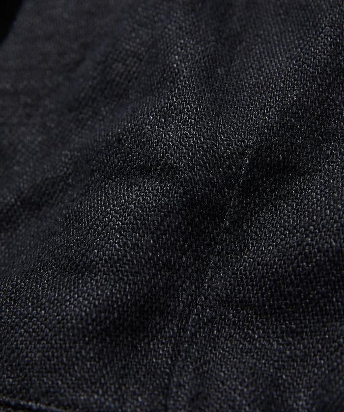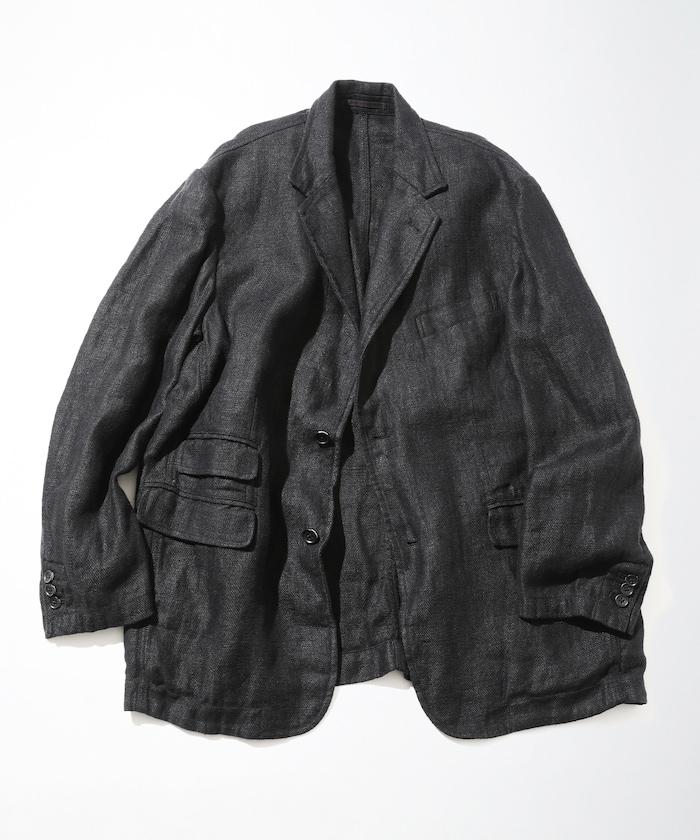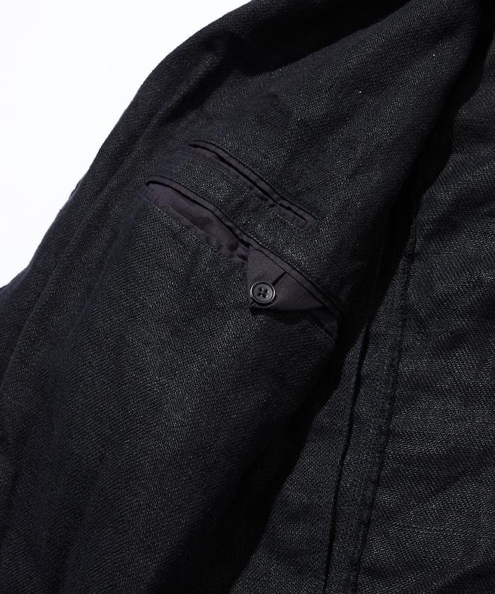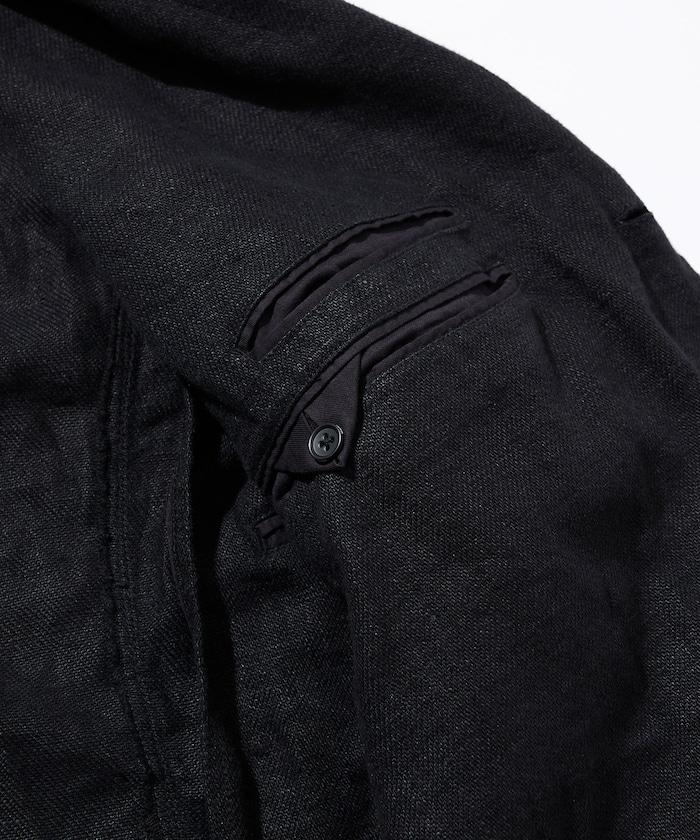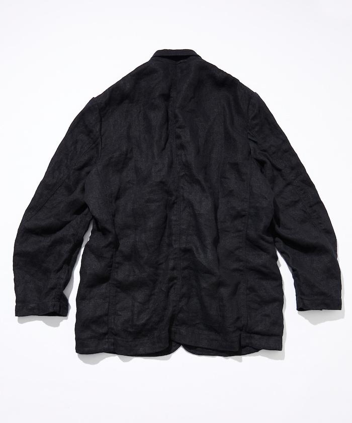 我把上次做的一件亞麻外套改成了深藍色。這是一種非常深的藏青色,深得乍一看就像黑色。藏青色越深越好。面料由 100% 厚 8 支亞麻紗線製成,採用半溼法紡紗。這種方法在亞麻紡紗中歷史悠久,據說能👍限度地利用粗紗特有的粗糙度和這種材料的質感。粗紗的斜紋編織營造出厚實、粗獷的感覺,而特殊的滾揉處理則增加了皺褶感和柔軟度。內側有一個大口袋,足以裝下兩臺個人電腦。領子翻起時,翻領後部還有一個紐扣,可以繫上紐扣穿著"。(A.H)
