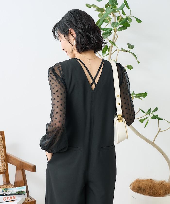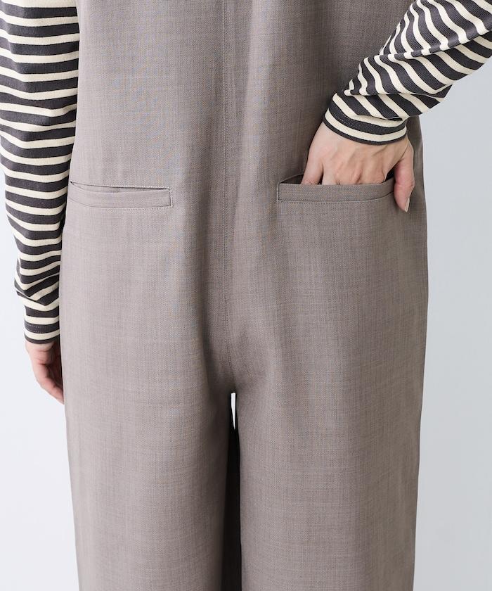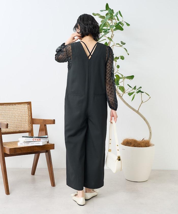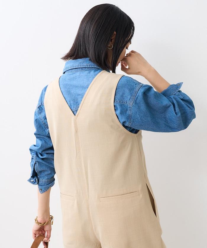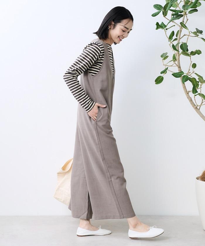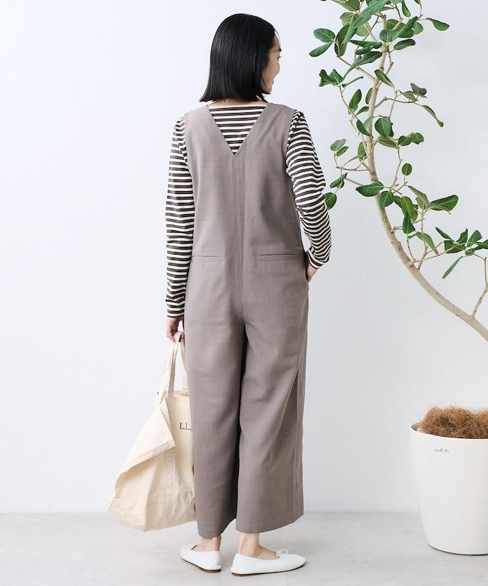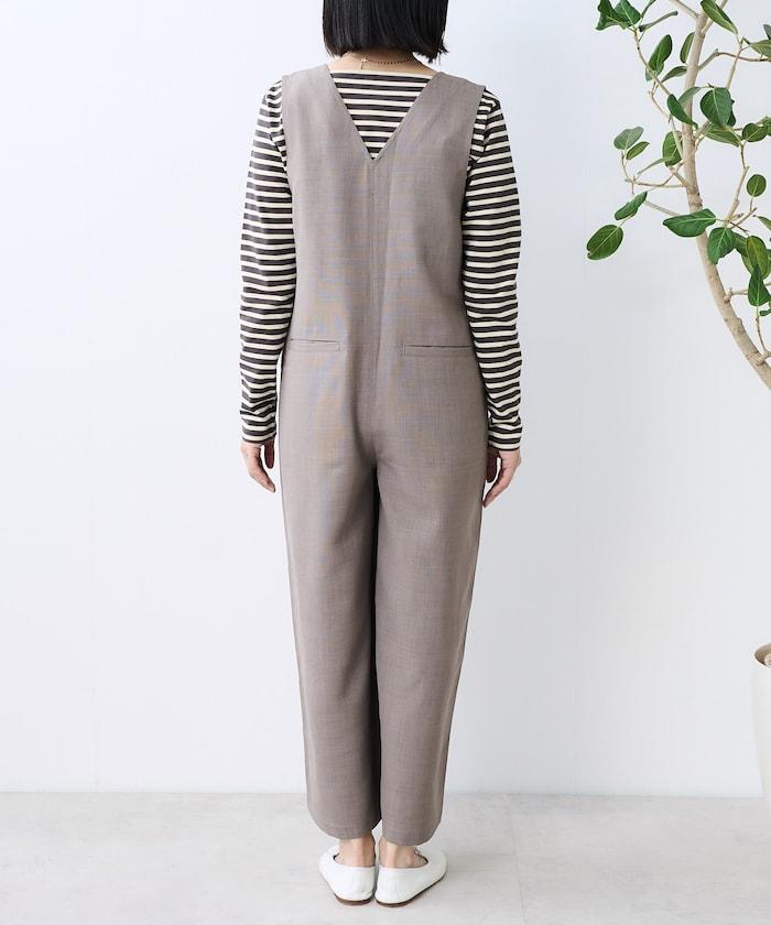 這款連體服具有亞麻的質感,但由聚酯纖維製成,因此抗皺性強,易於居家打理。