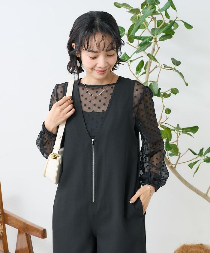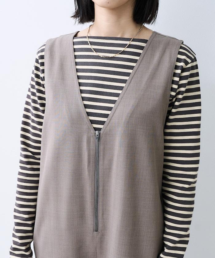 V 領和無袖設計給人成熟的感覺,前襟拉鍊方便穿脫。