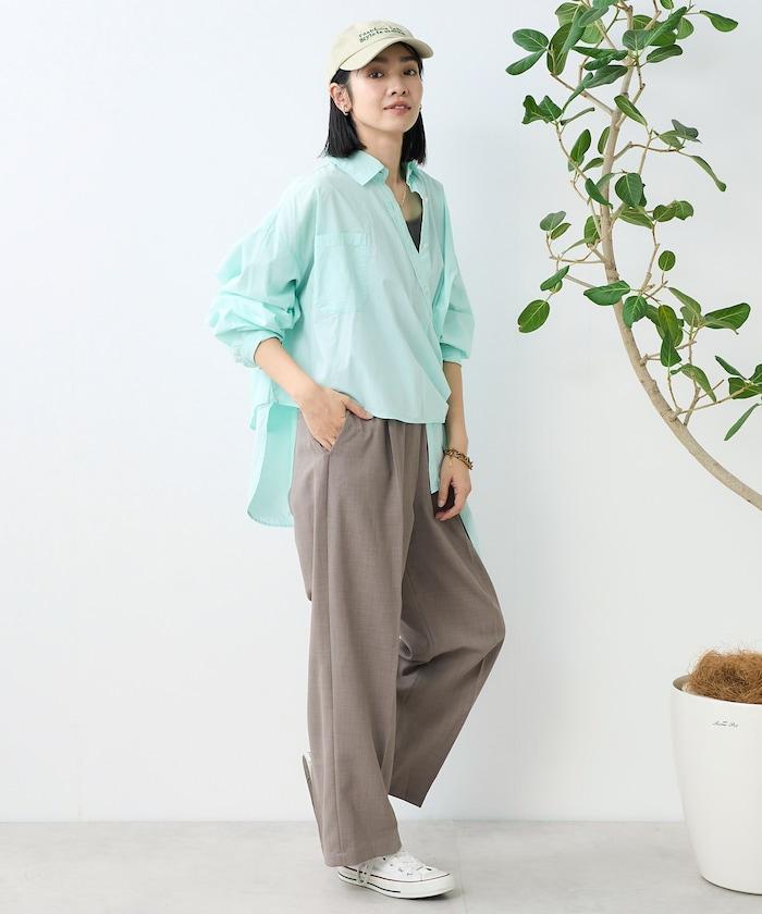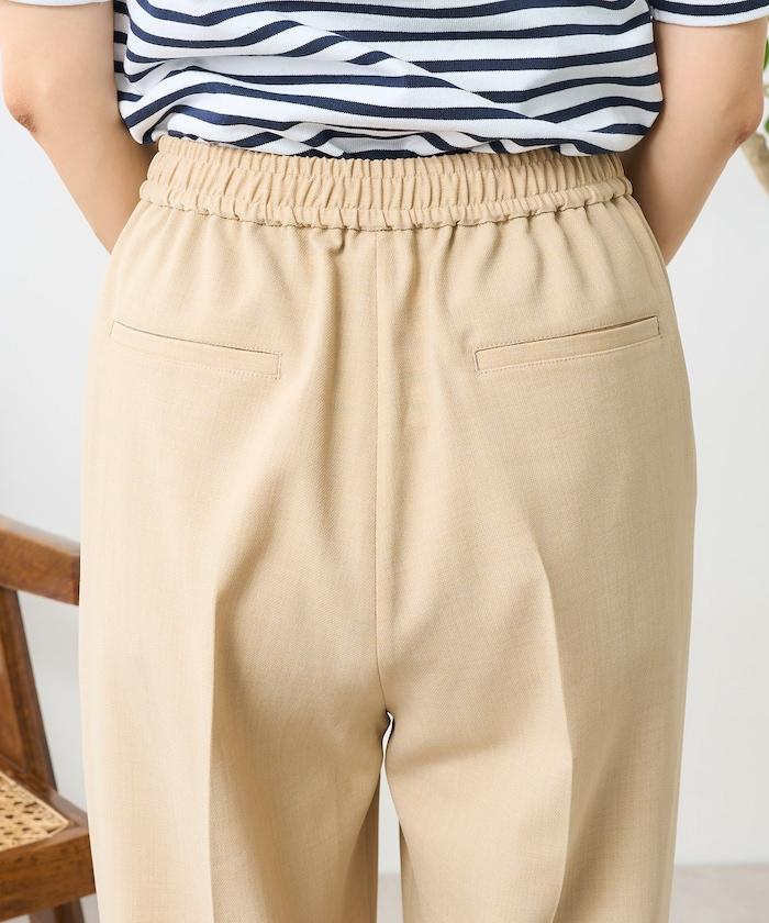 這款簡便長褲具有亞麻的質感,但由聚酯纖維製成,抗皺性強,易於居家打理。