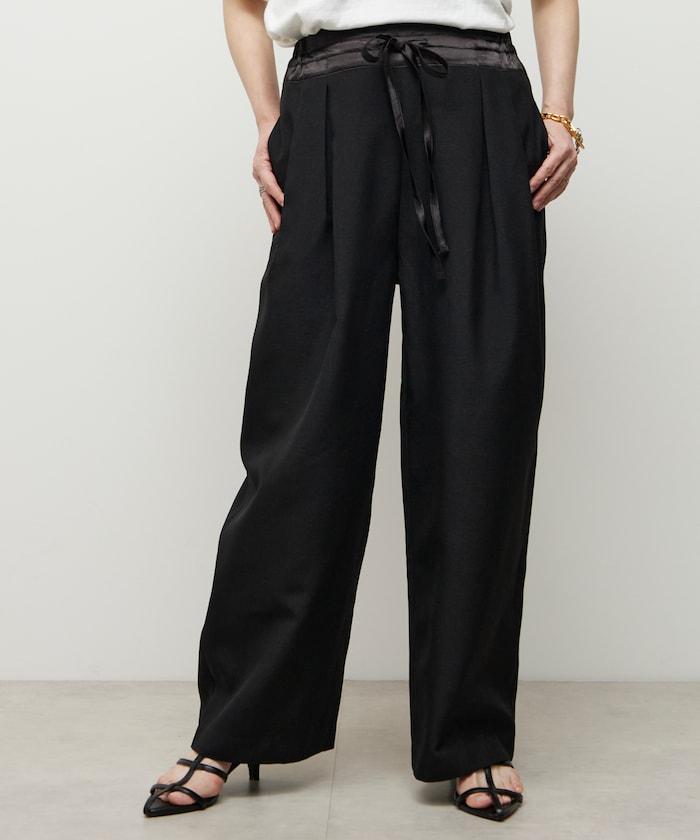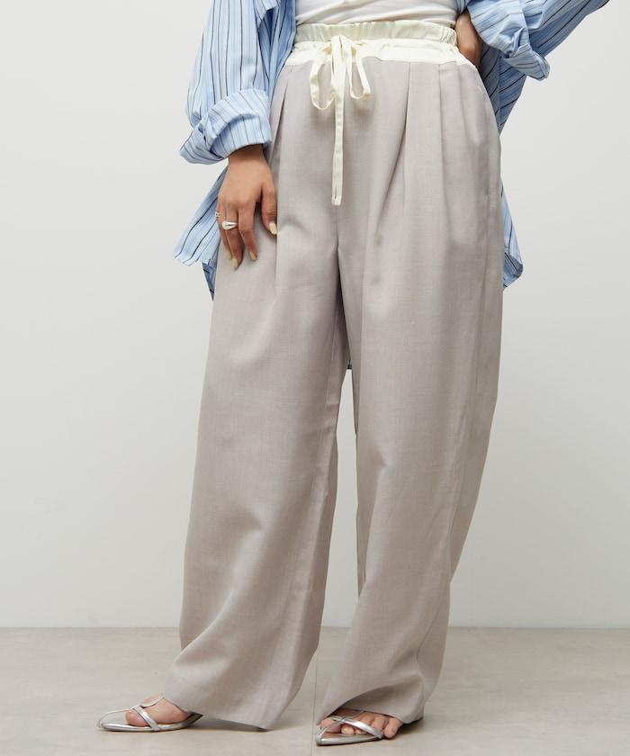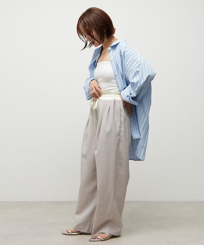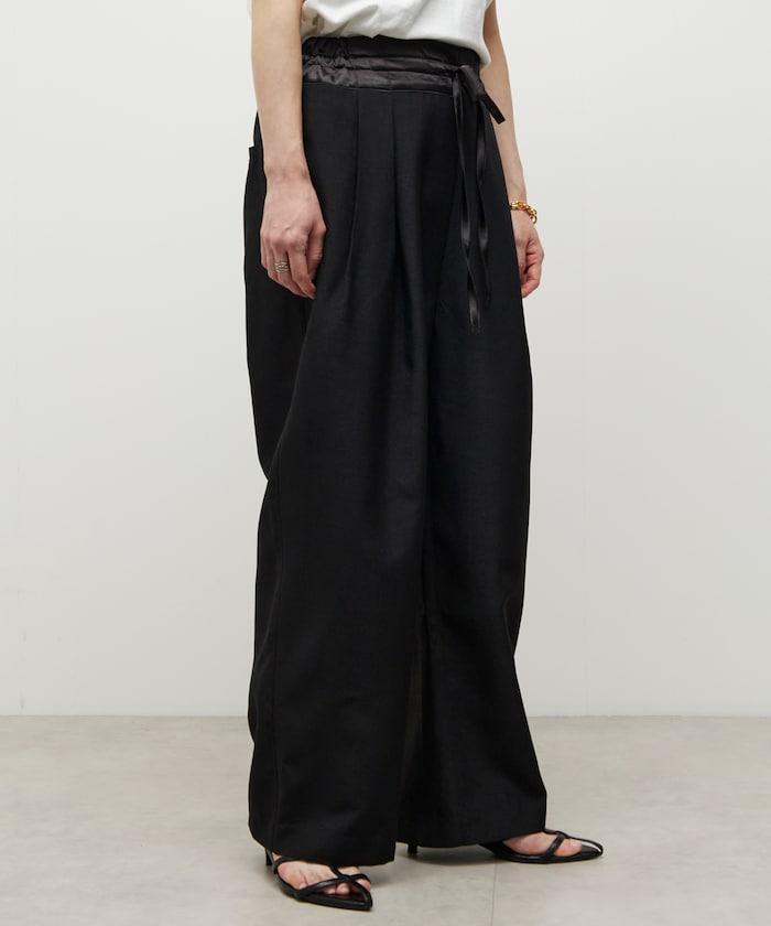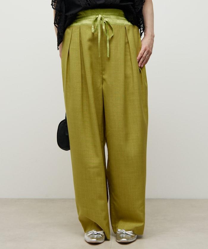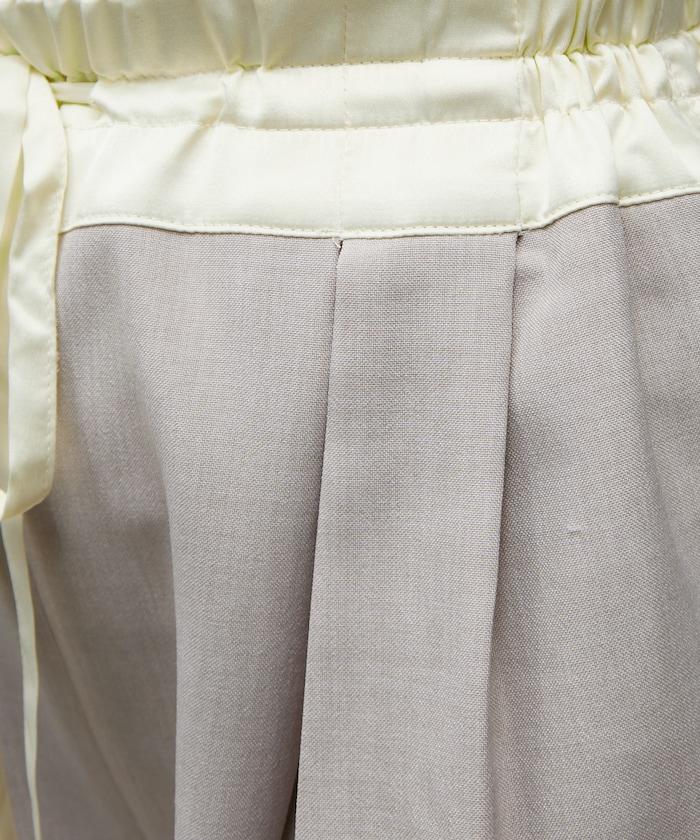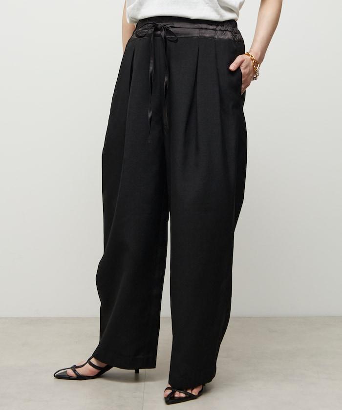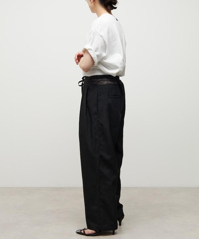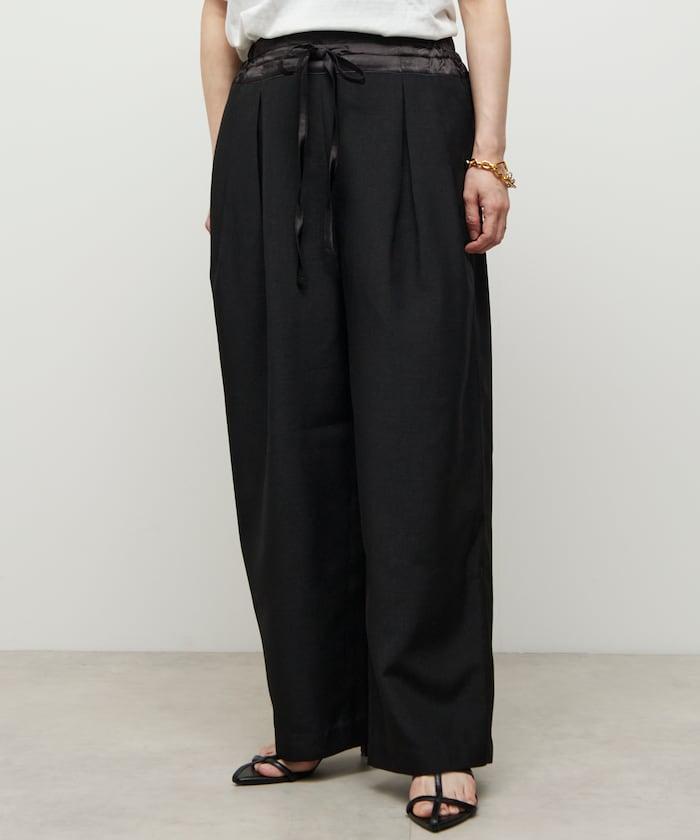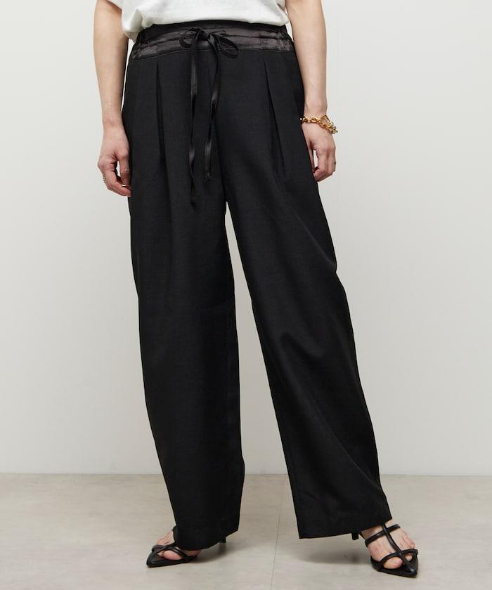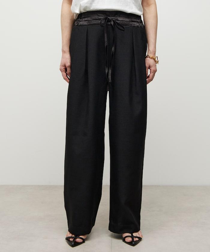 腰部採用了不同的材質,切換到具有微妙光澤的緞面材質規格,因此,亞麻材質的款式既能體現端莊感,又不會過於隨意。