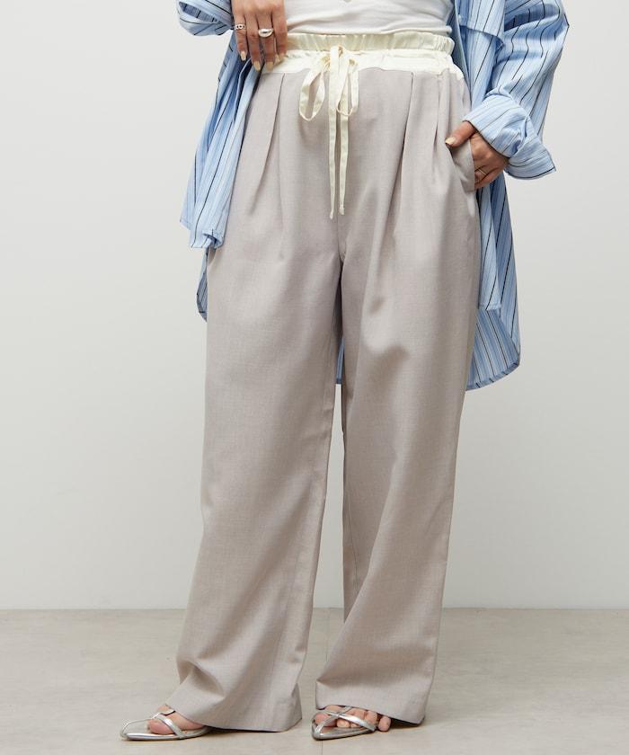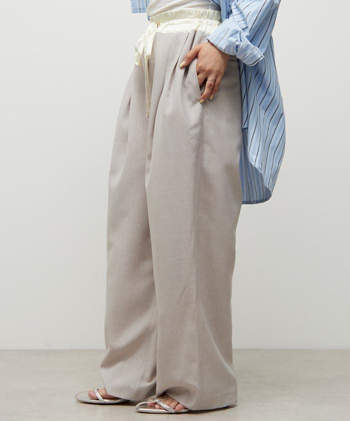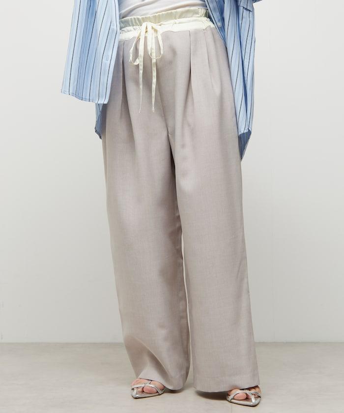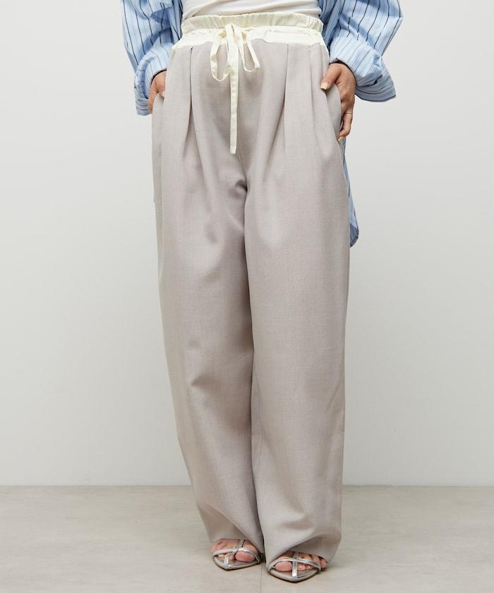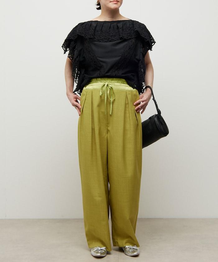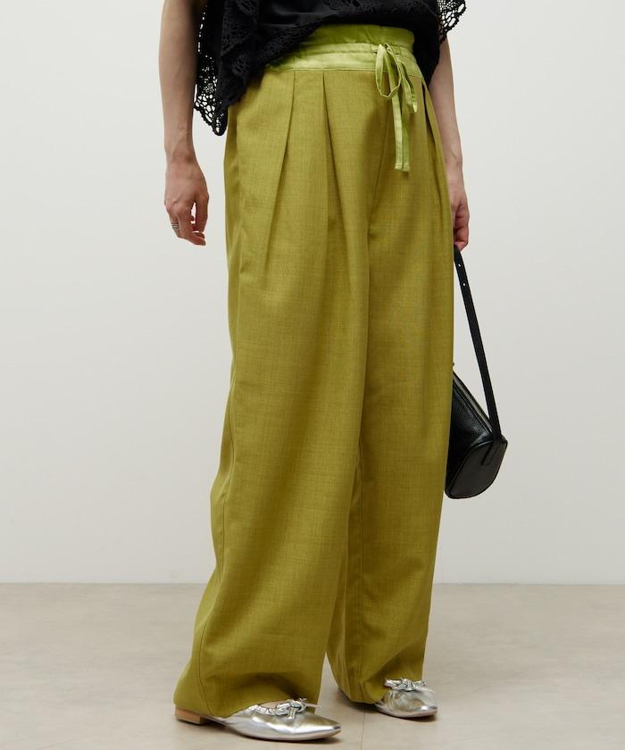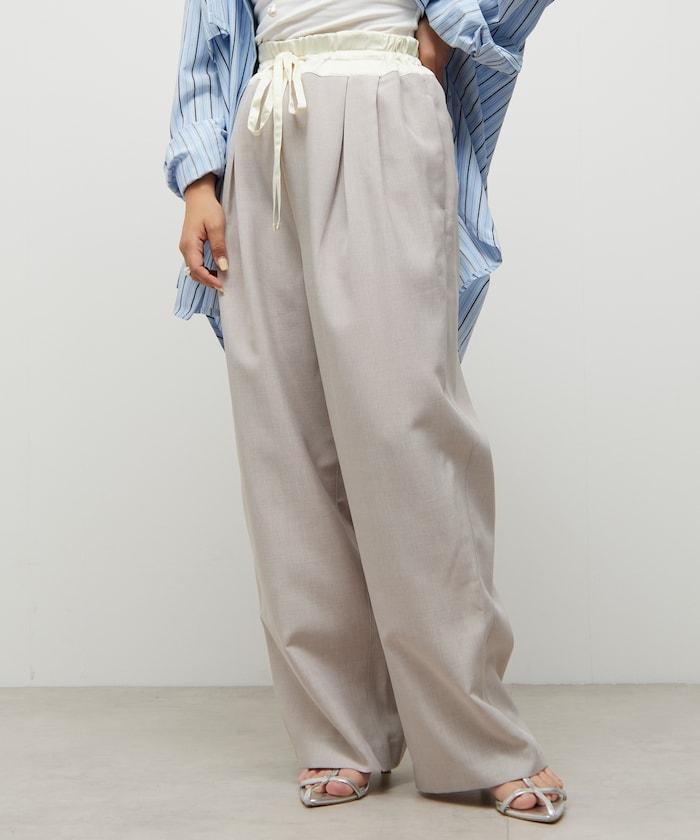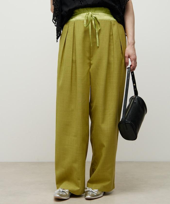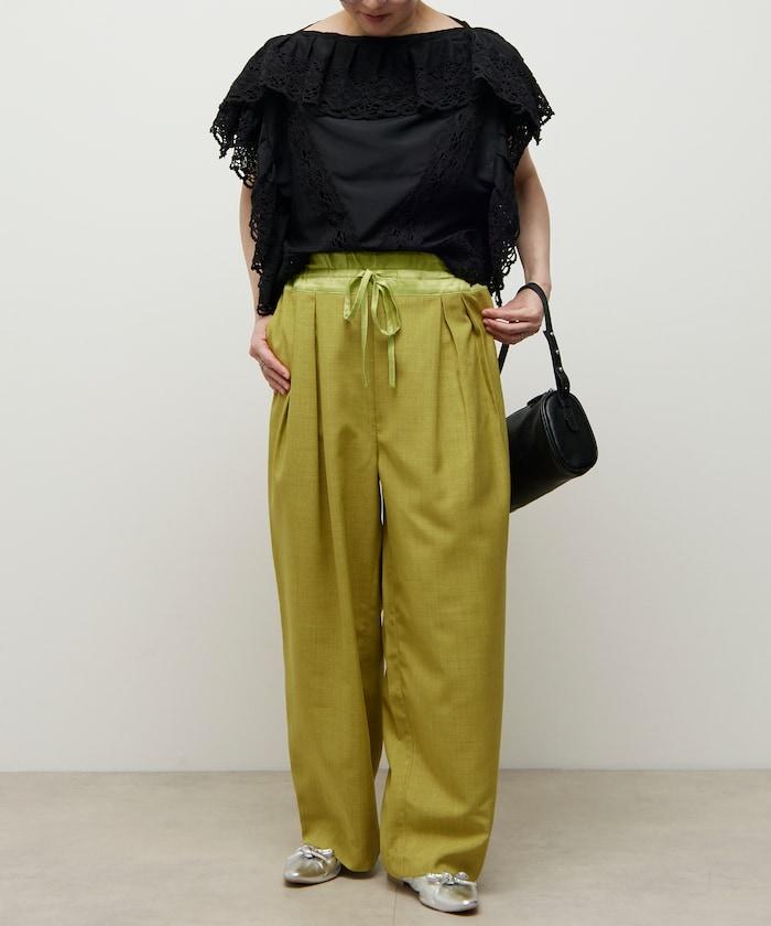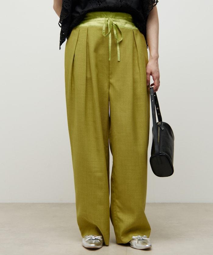 腰部採用了不同的材質,切換到具有微妙光澤的緞面材質規格,因此,亞麻材質的款式既能體現端莊感,又不會過於隨意。
