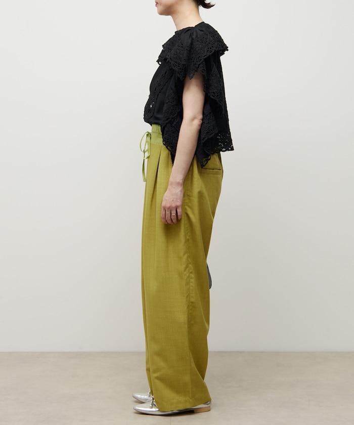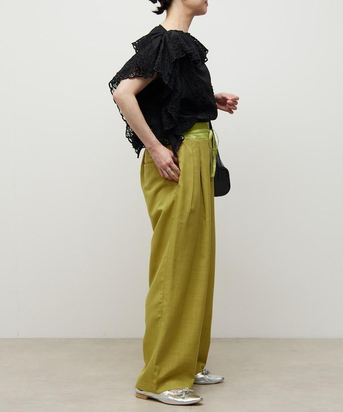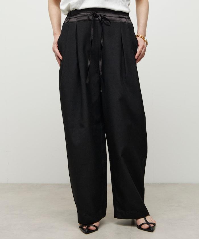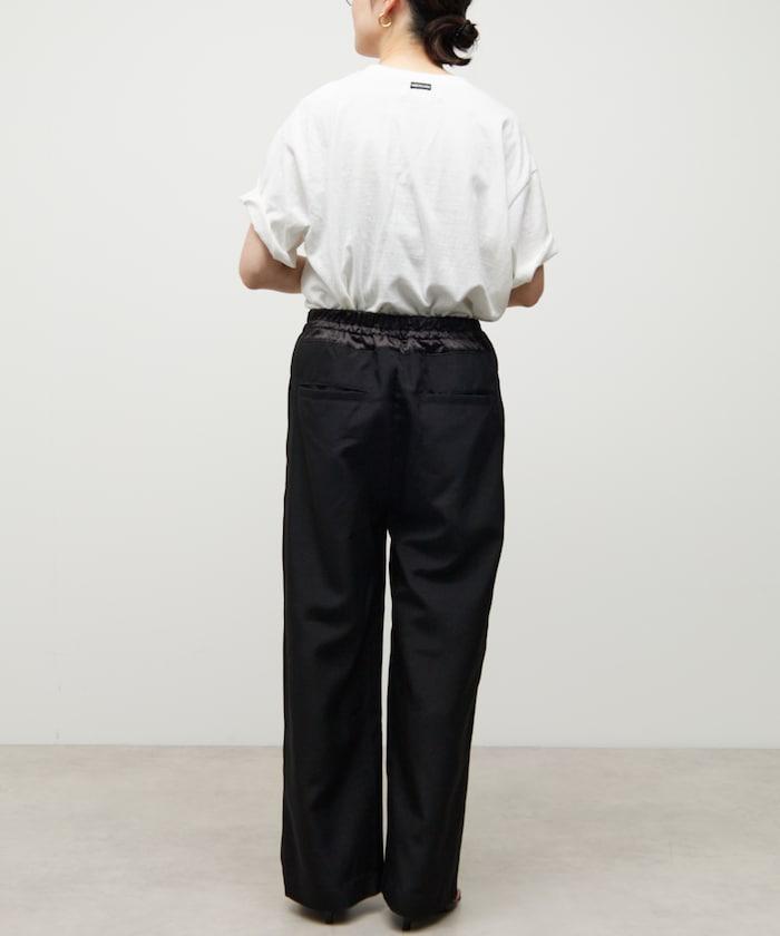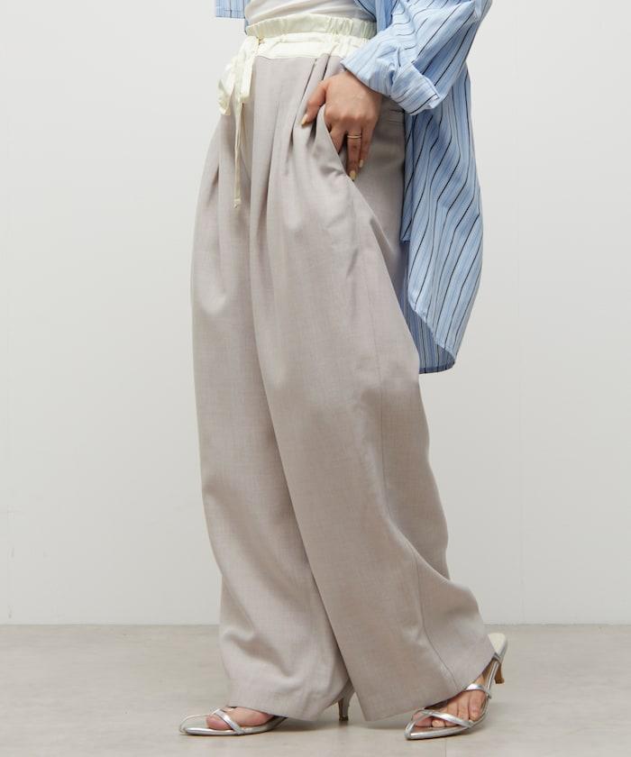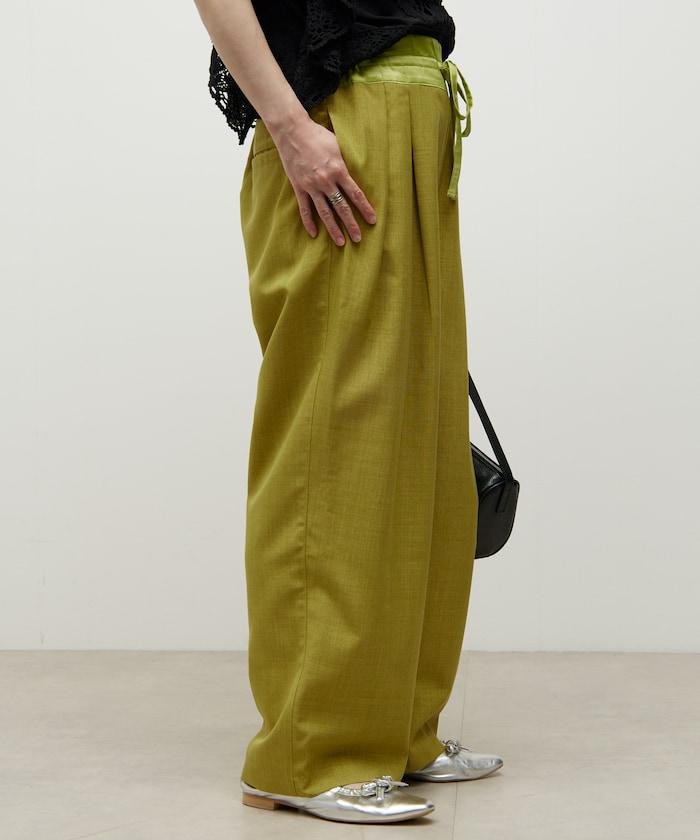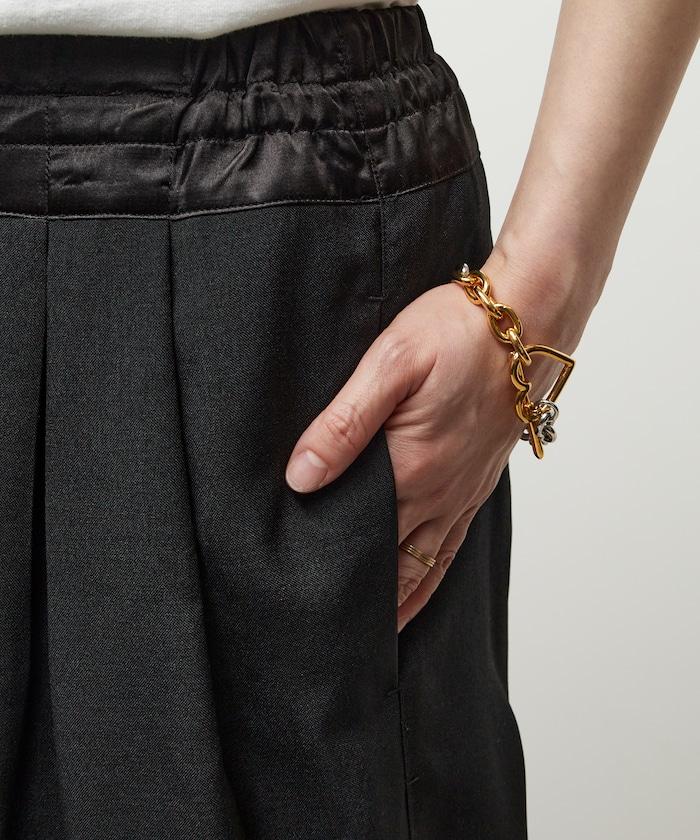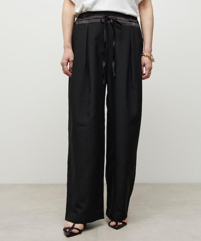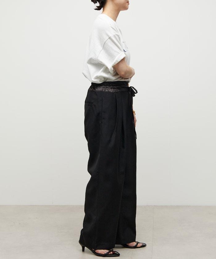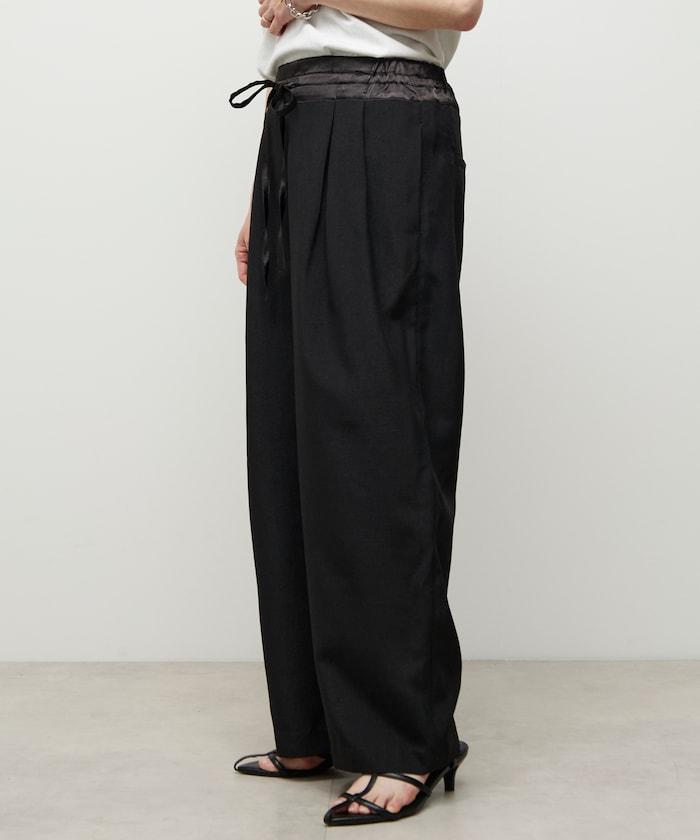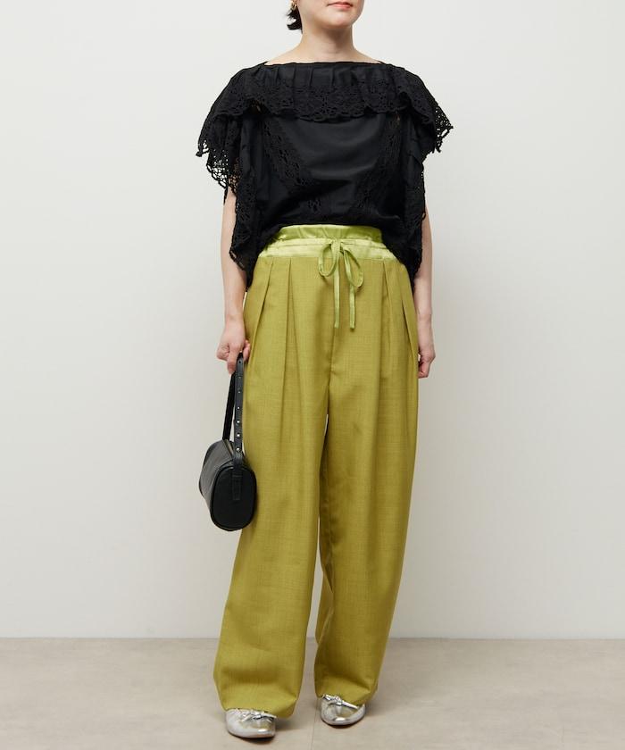腰部採用了不同的材質,切換到具有微妙光澤的緞面材質規格,因此,亞麻材質的款式既能體現端莊感,又不會過於隨意。