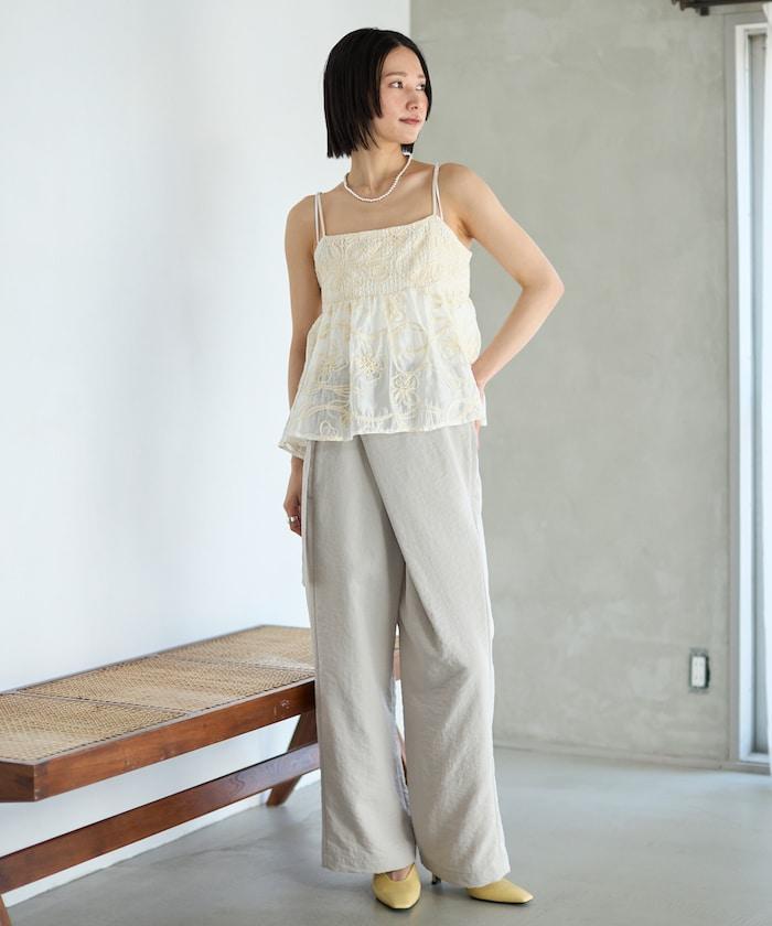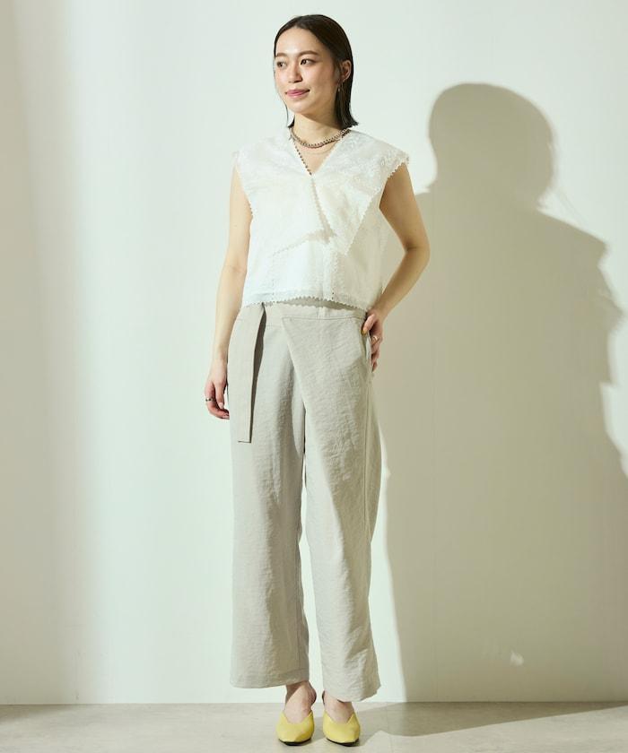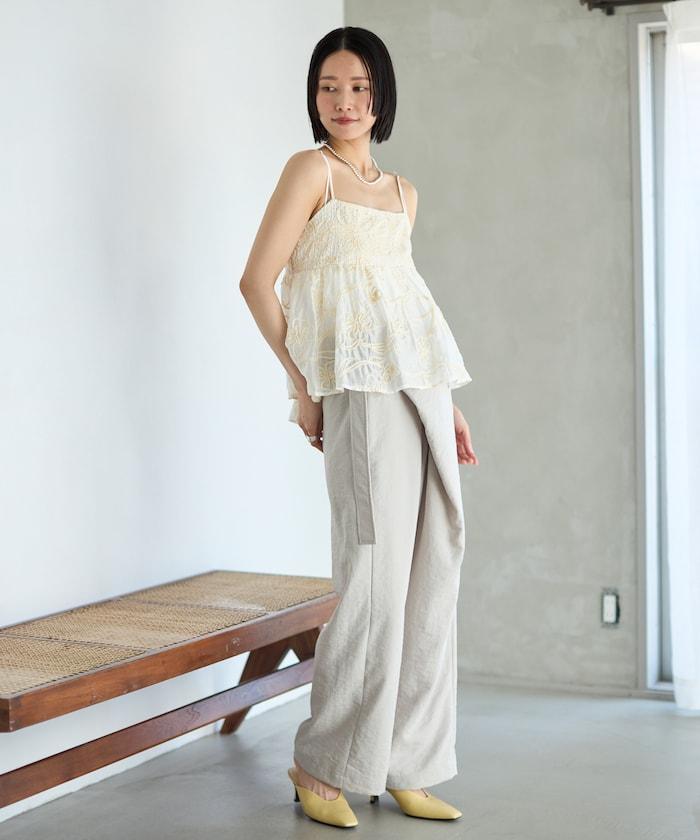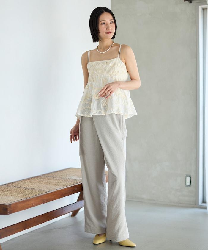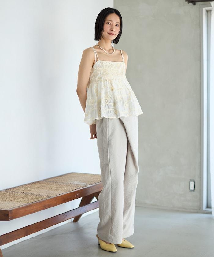 亞麻風 飄逸褲 / 寬鬆剪裁 飄逸褲