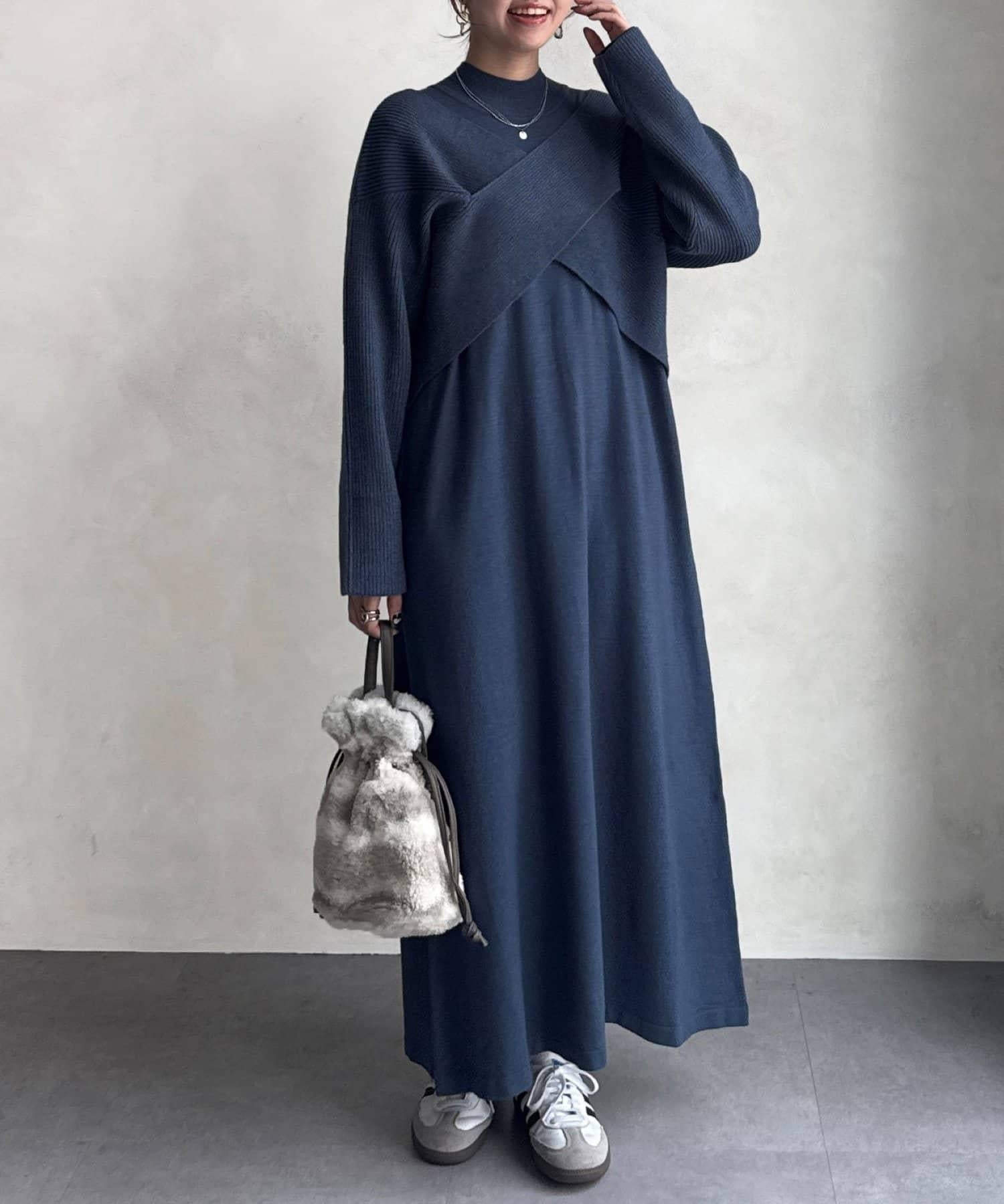 保暖的針織面料溫暖蓬鬆,I 字型廓形整齊垂墜,遮住身材,不挑身材線條。