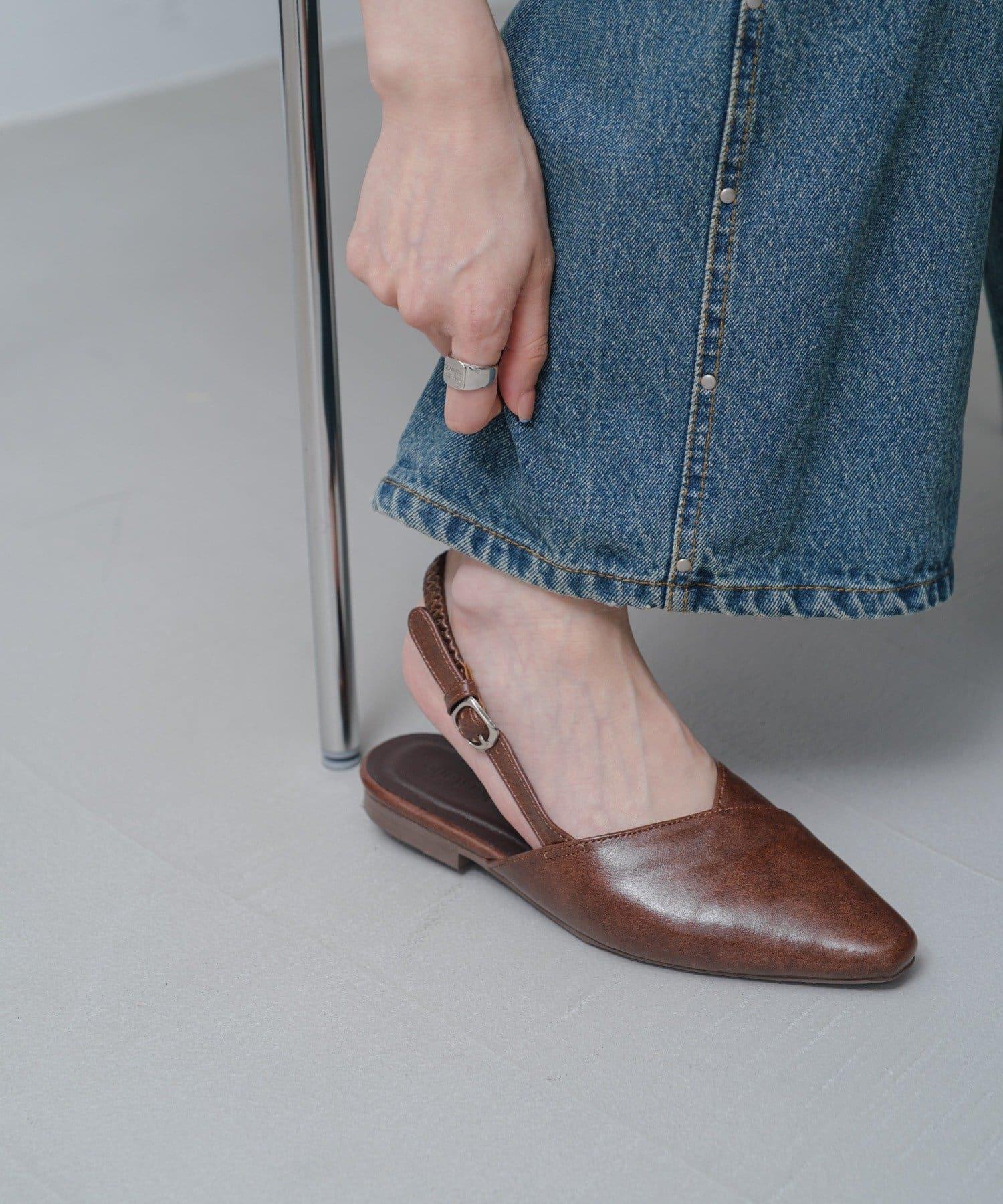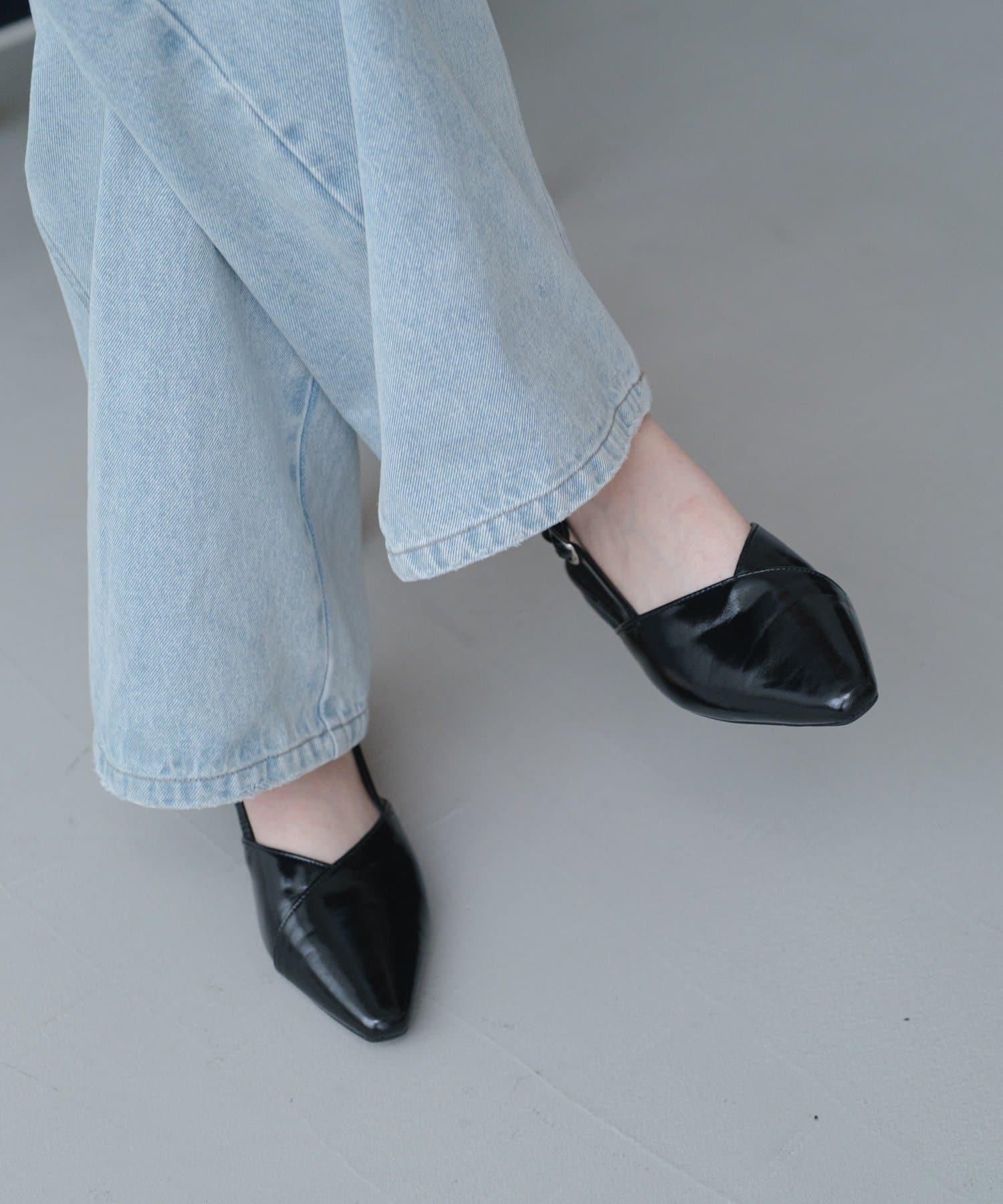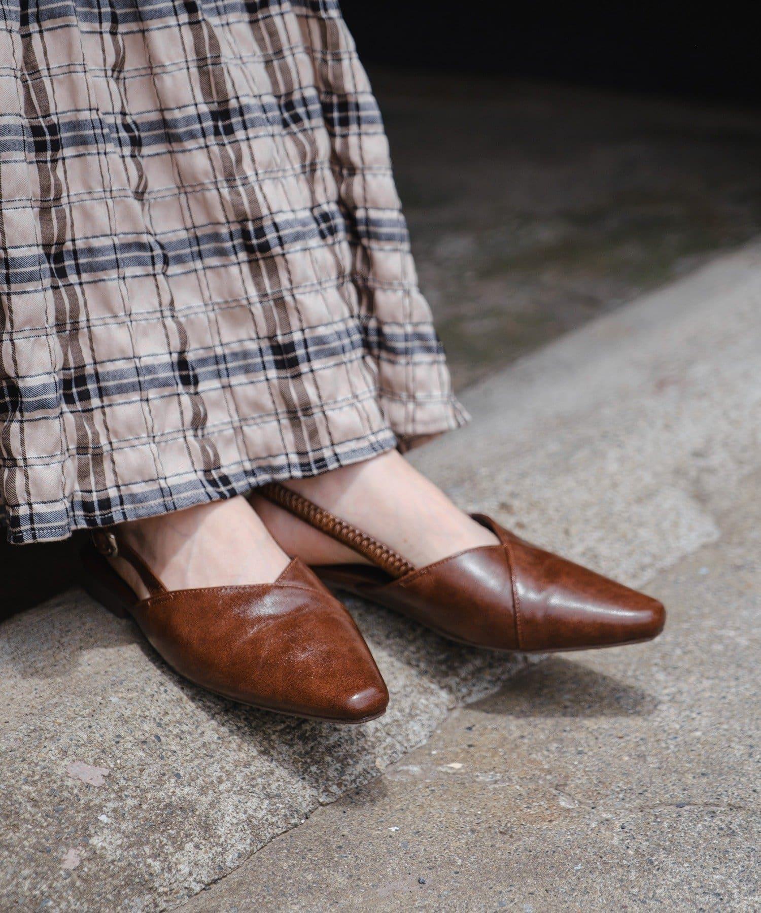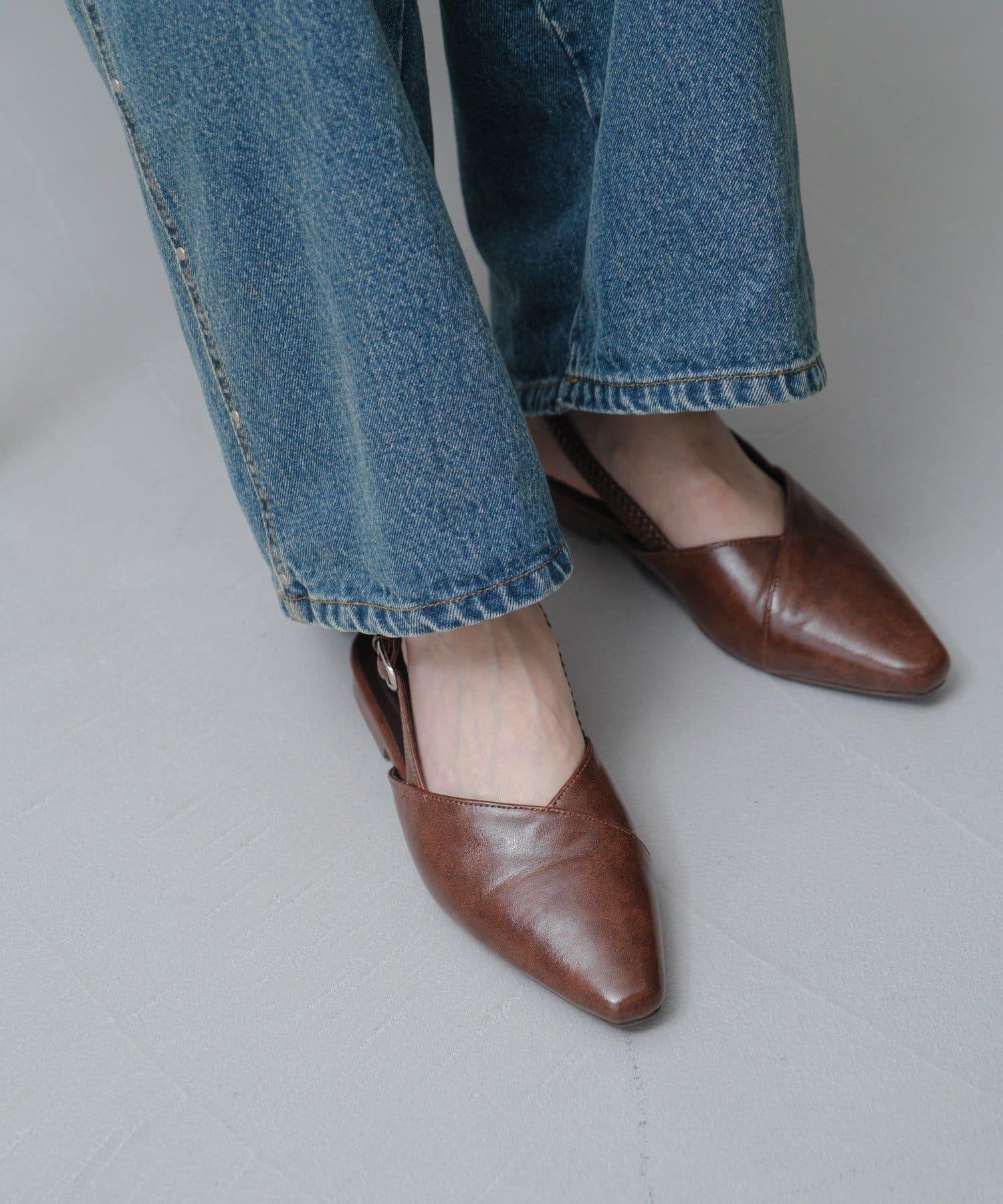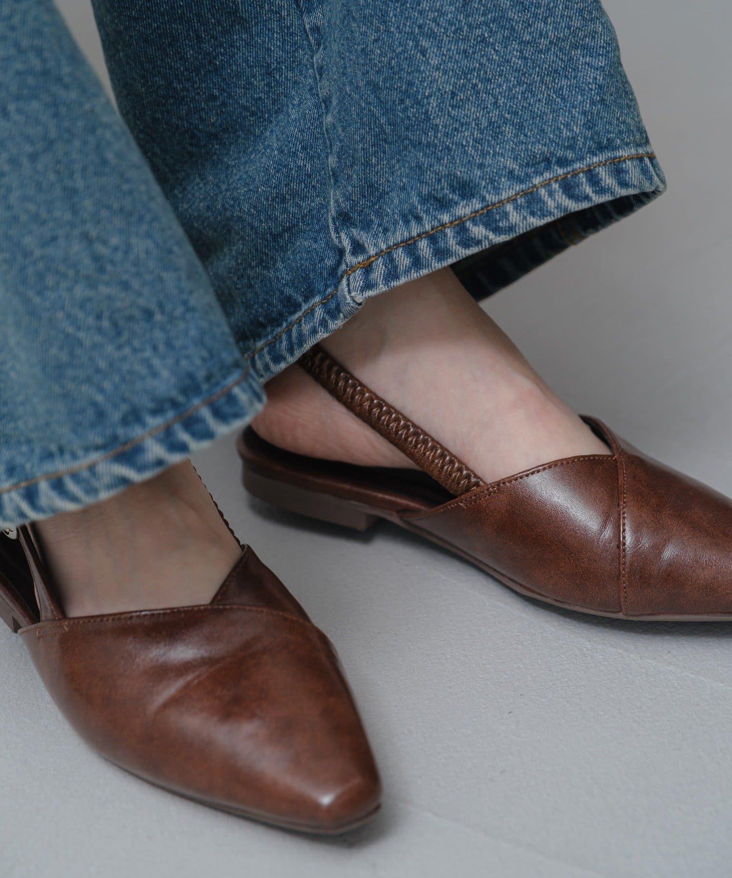 尖尖的鞋頭給人一種乾淨利落的感覺,而交叉的線條則增添了女性的柔美。