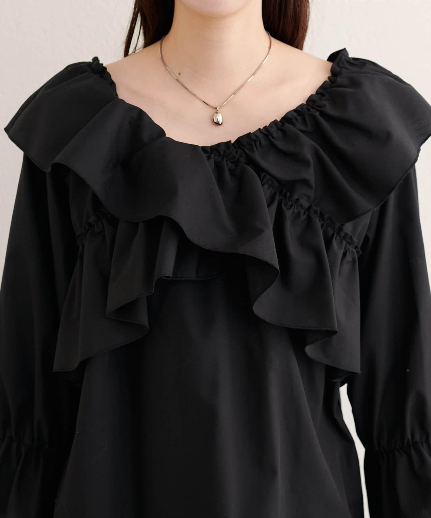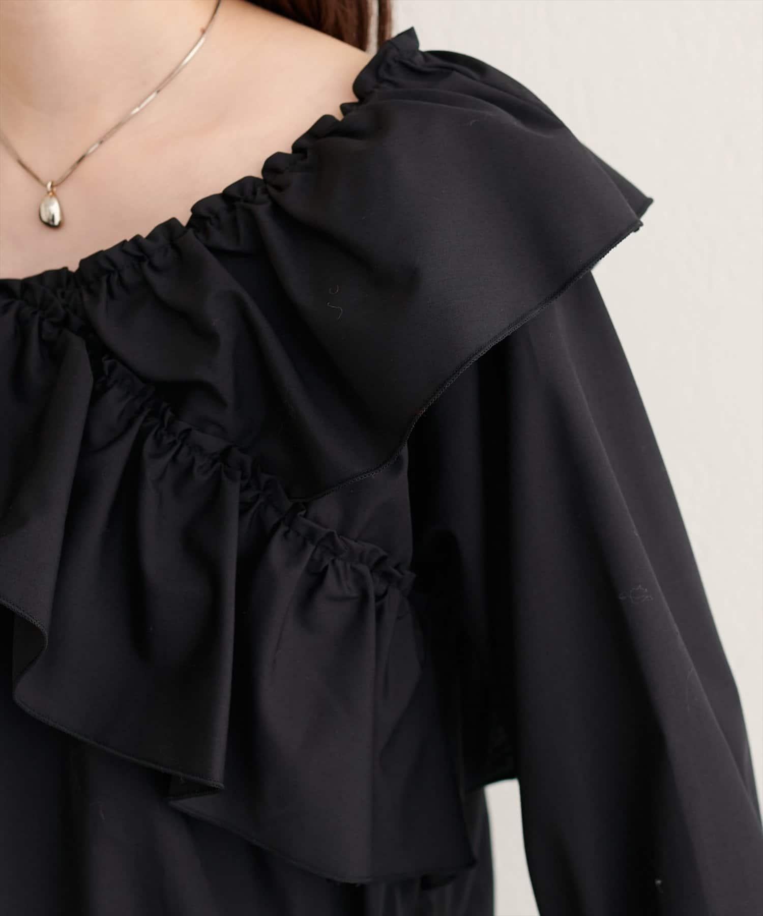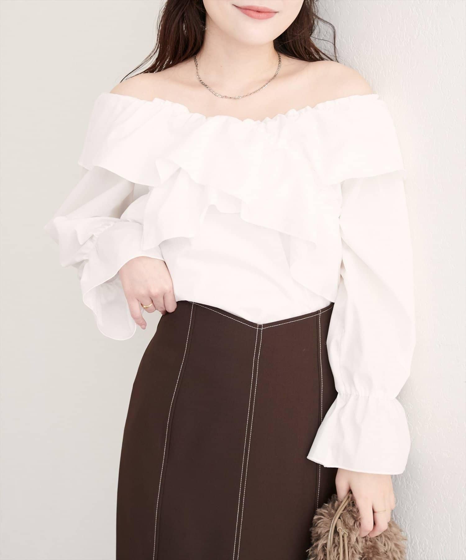 寬大的荷葉邊和糖果袖增加了亮點,因此只需搭配簡單的下裝,就能打造出協調的造型。