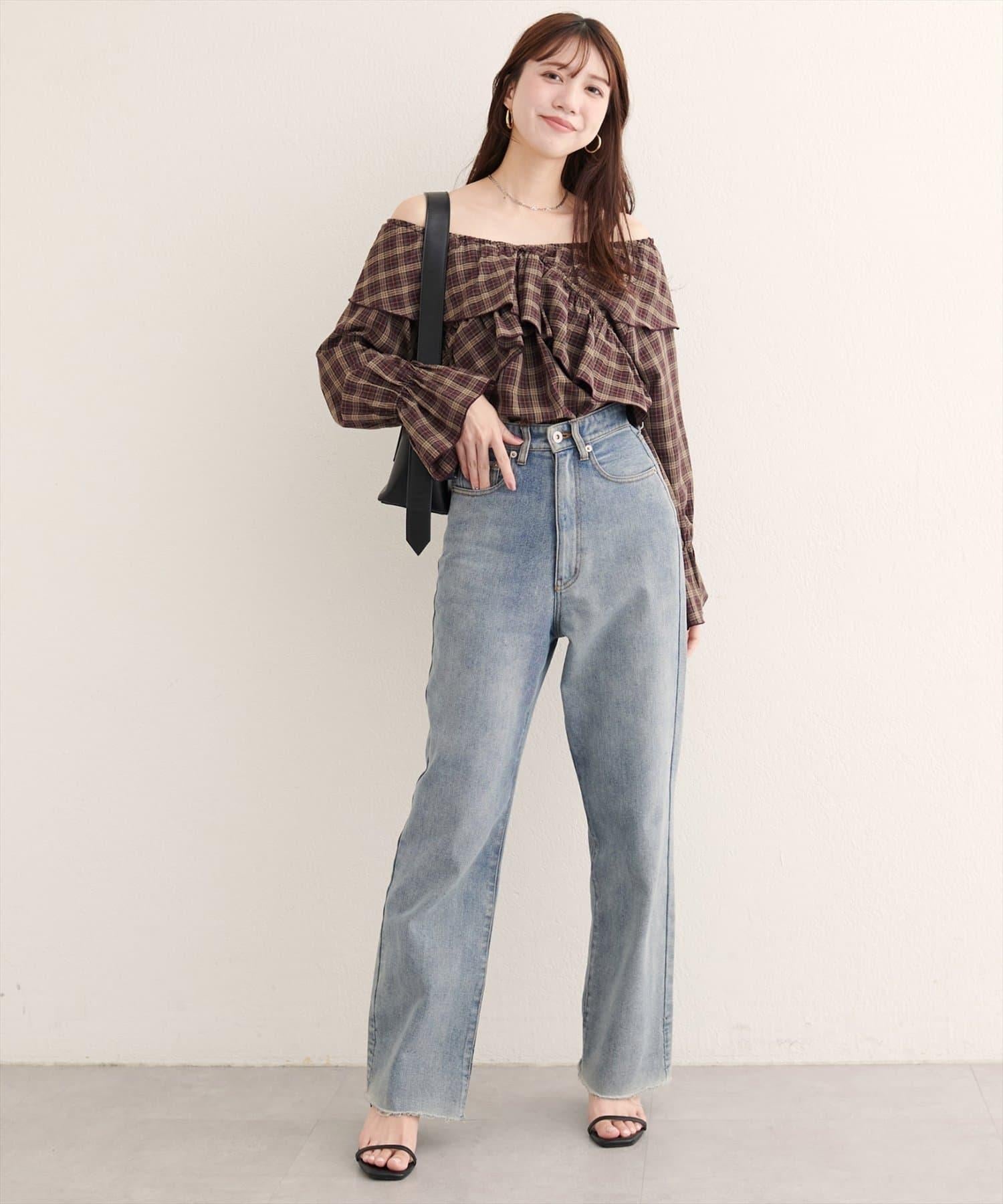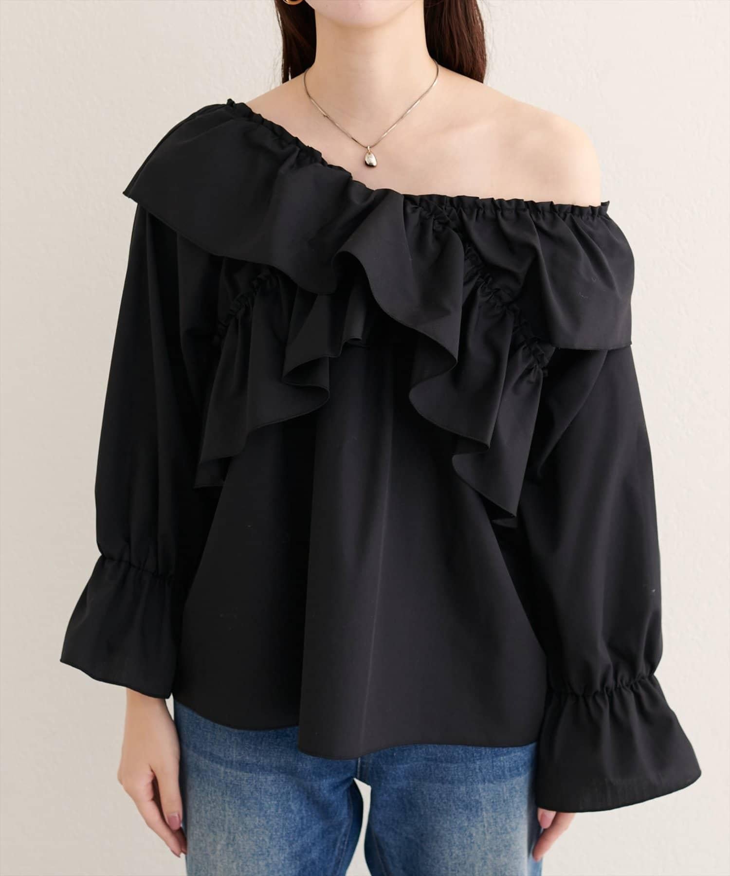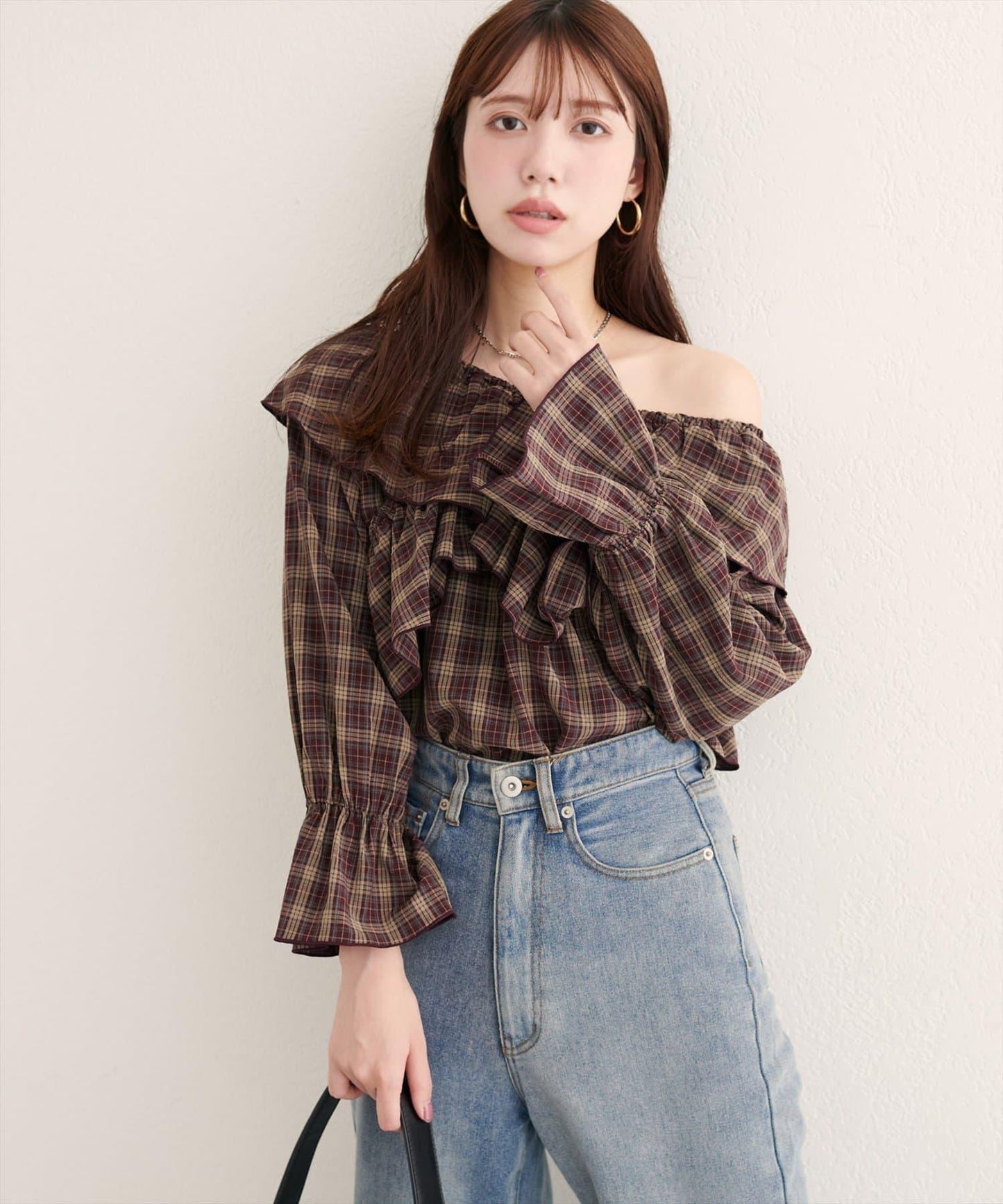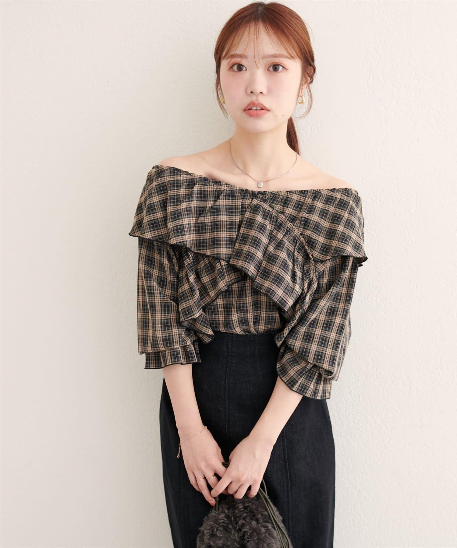 寬大的荷葉邊和糖果袖增加了亮點,因此只需搭配簡單的下裝,就能打造出協調的造型。