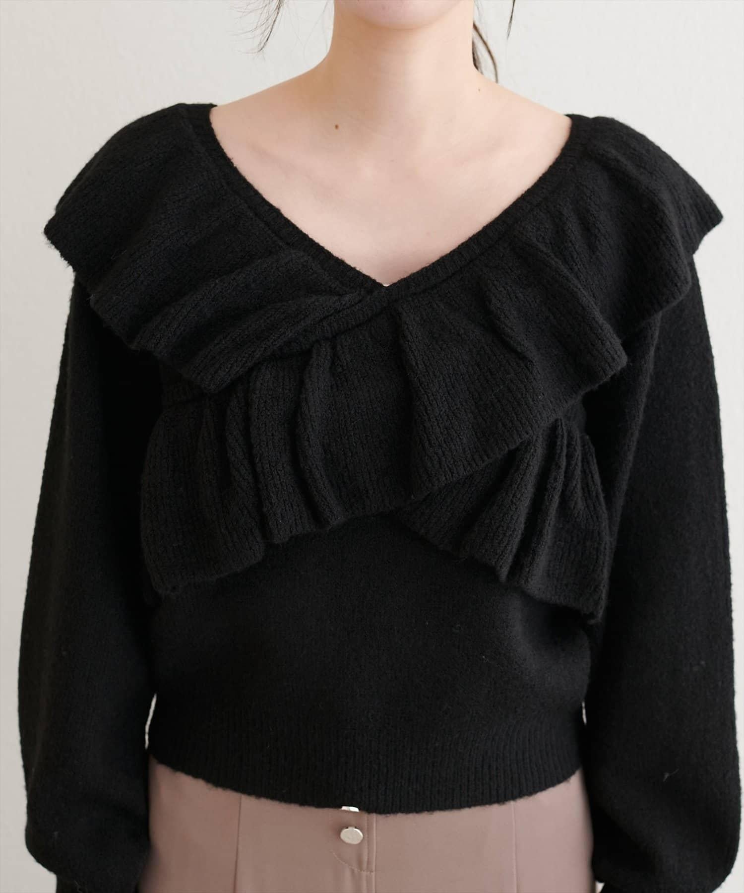 交叉褶邊精美地裝飾了肩部,在面部周圍營造出華麗的效果。精心設計的荷葉邊既優雅又可愛。