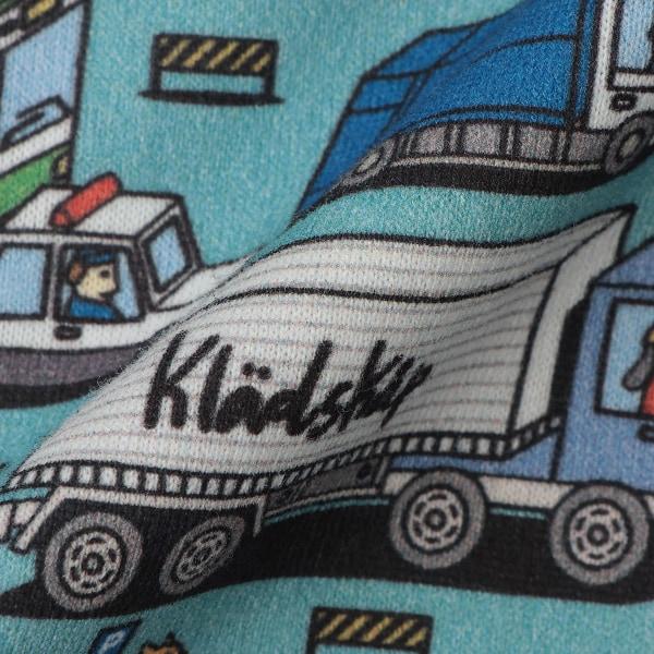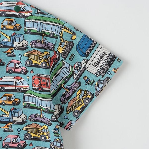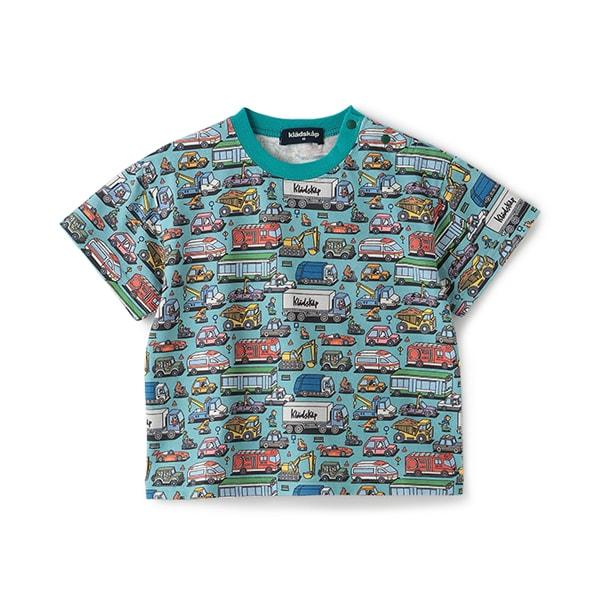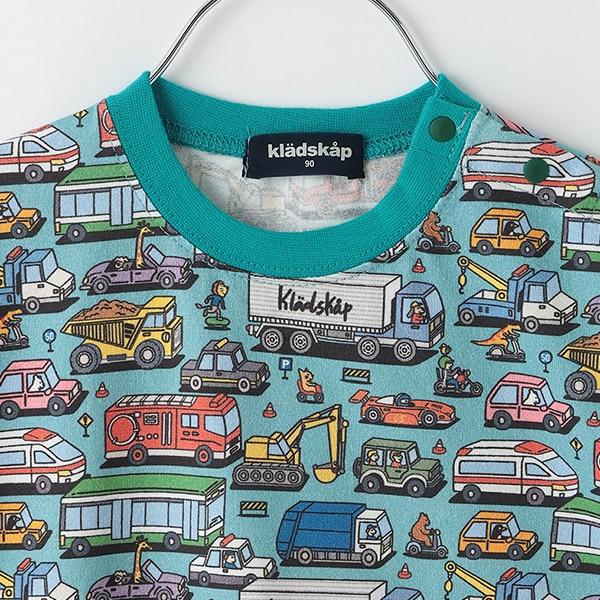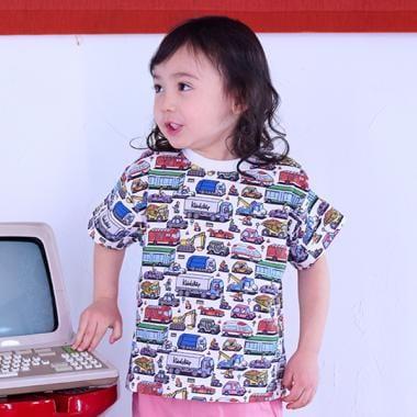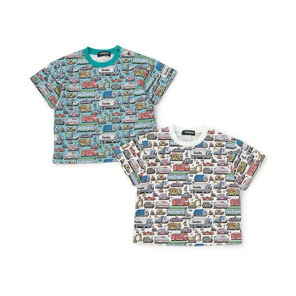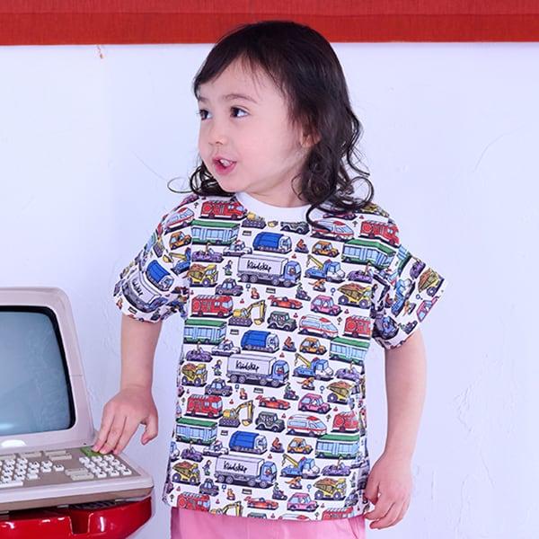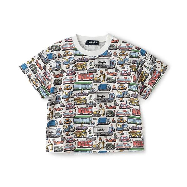 短袖 T 恤上的彩色車輛圖案令人印象深刻。