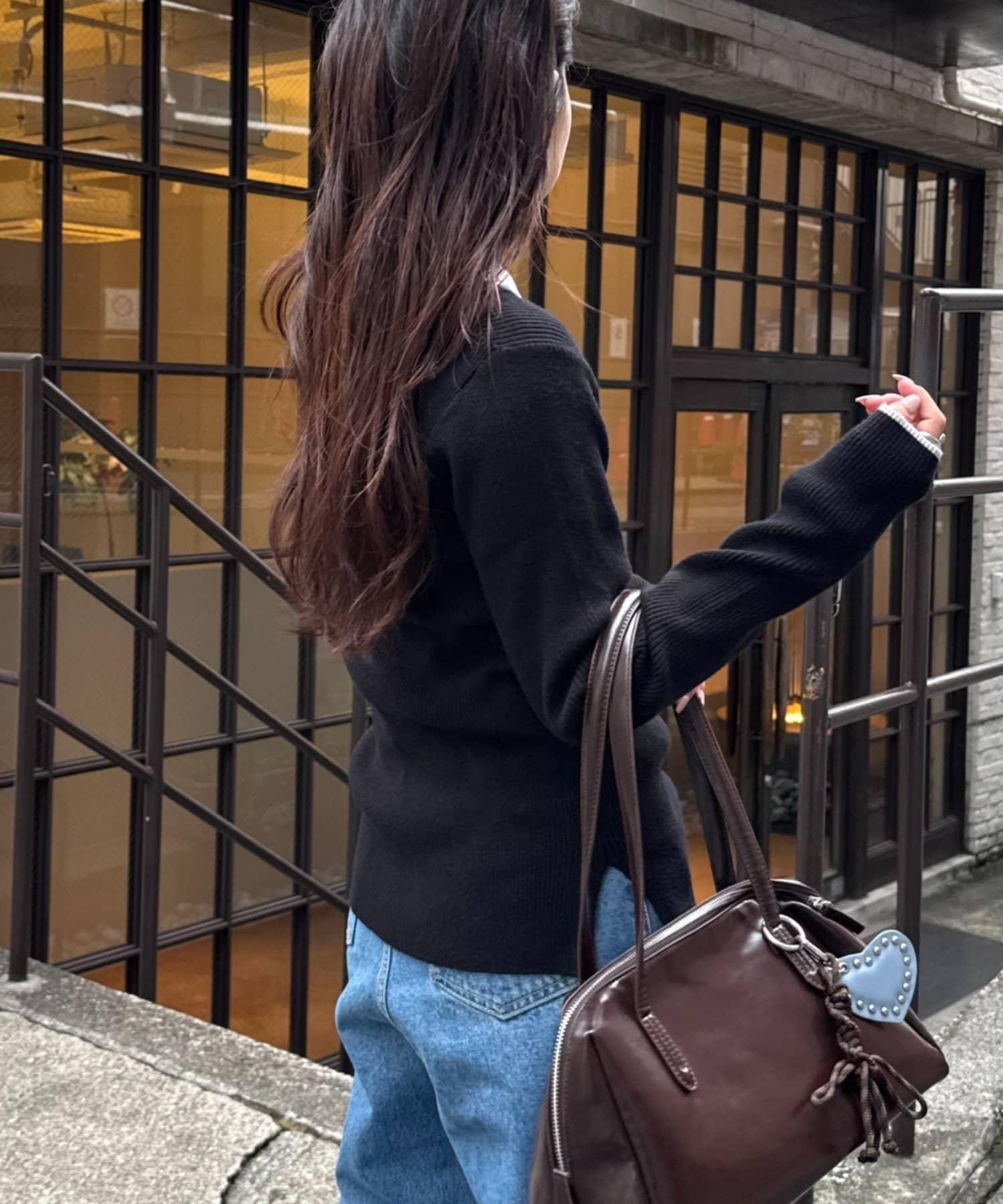雞心領的微妙配色營造出適度時尚而又簡潔的外觀。