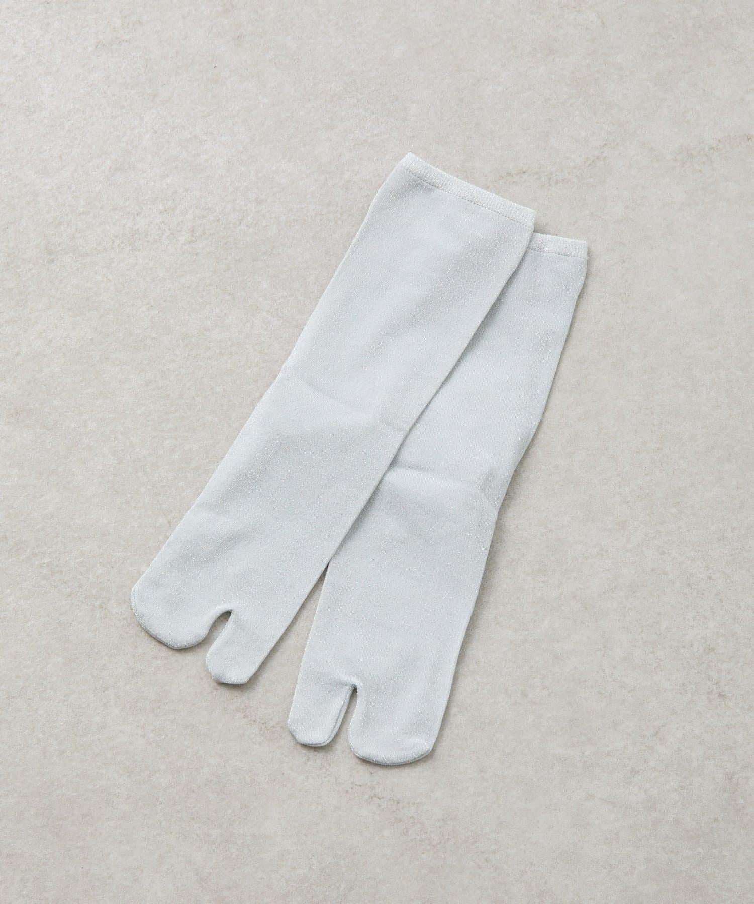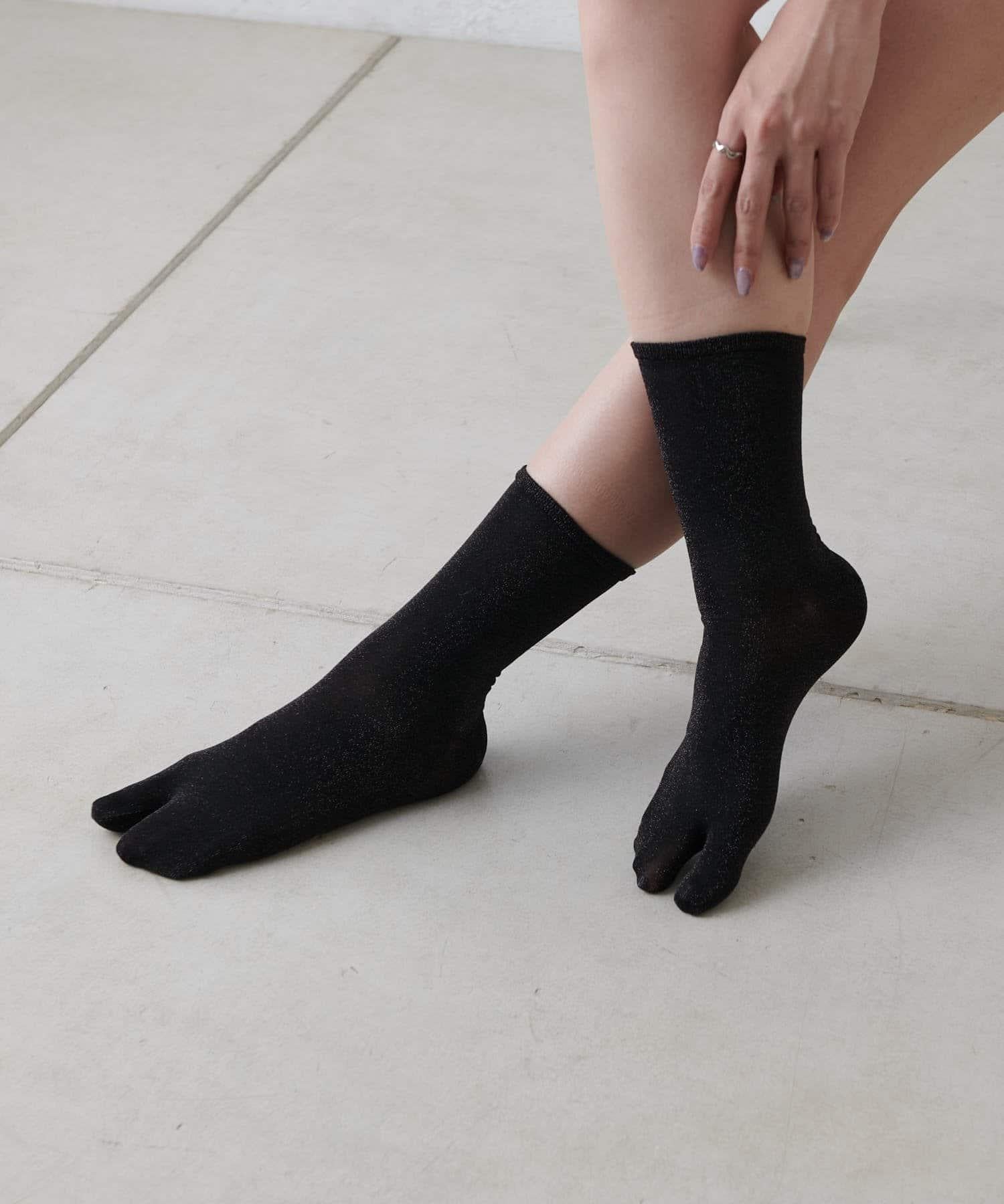 這雙 Tabi Shoes 襪子閃耀著精緻跛腳的優雅光澤。