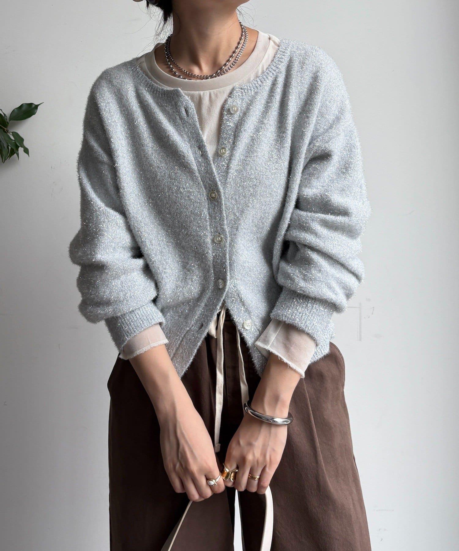 這是一款優雅的成人開襟羊毛衫,面料上織有精緻的睫毛。