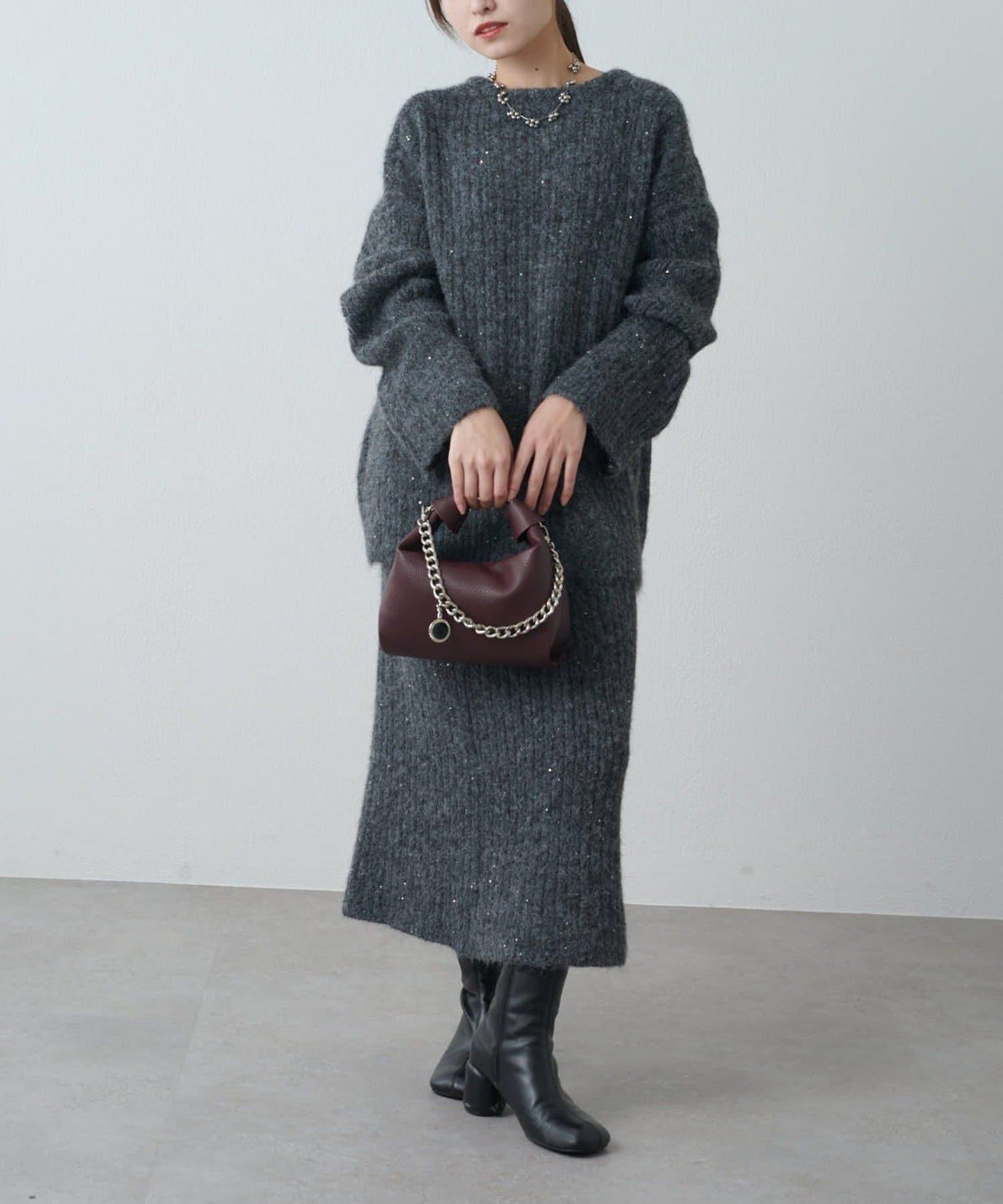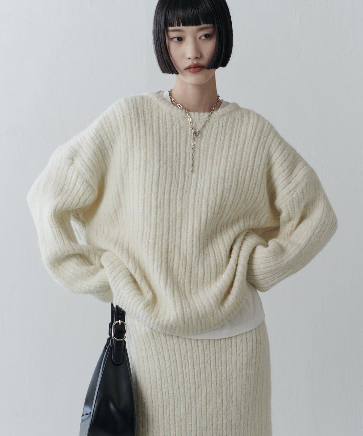 寬鬆的羅紋針織有一種輕鬆的感覺,穿著也非常舒適,整齊地吸引下半身的裙襬美觀大方,具有良好的平衡性。
