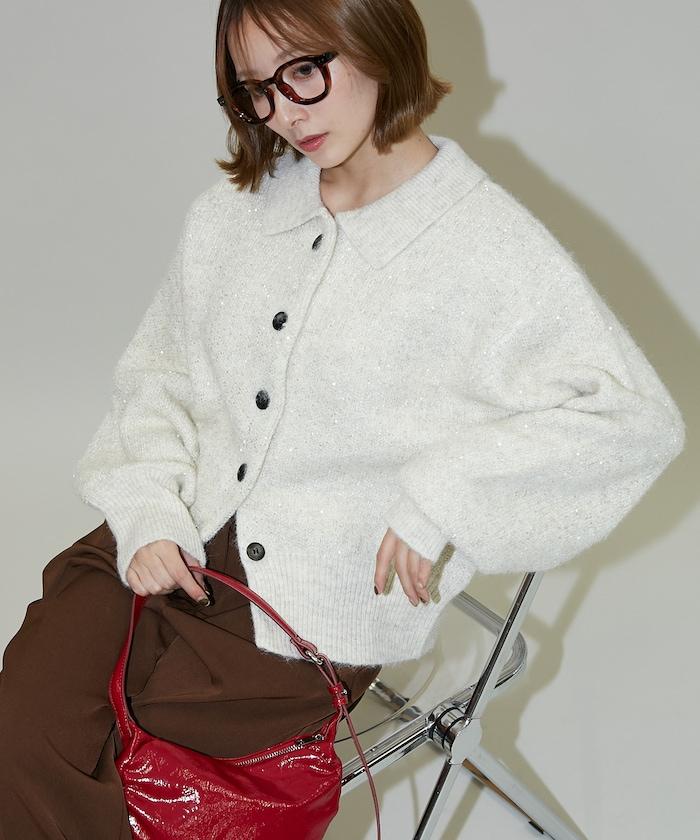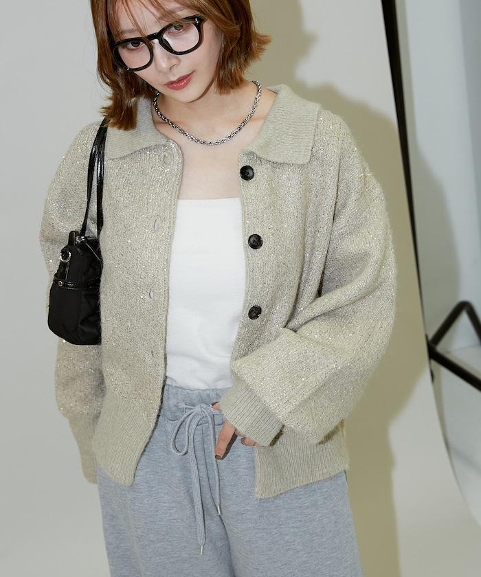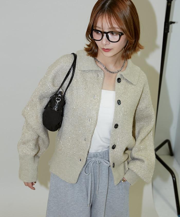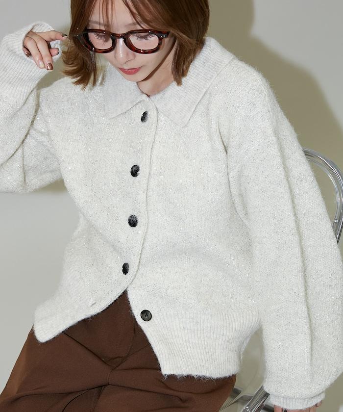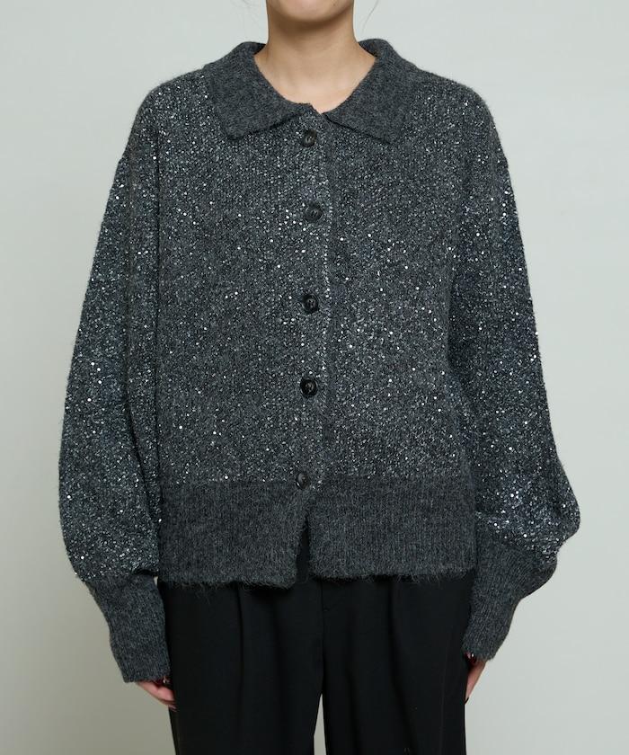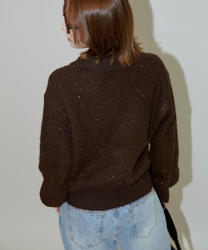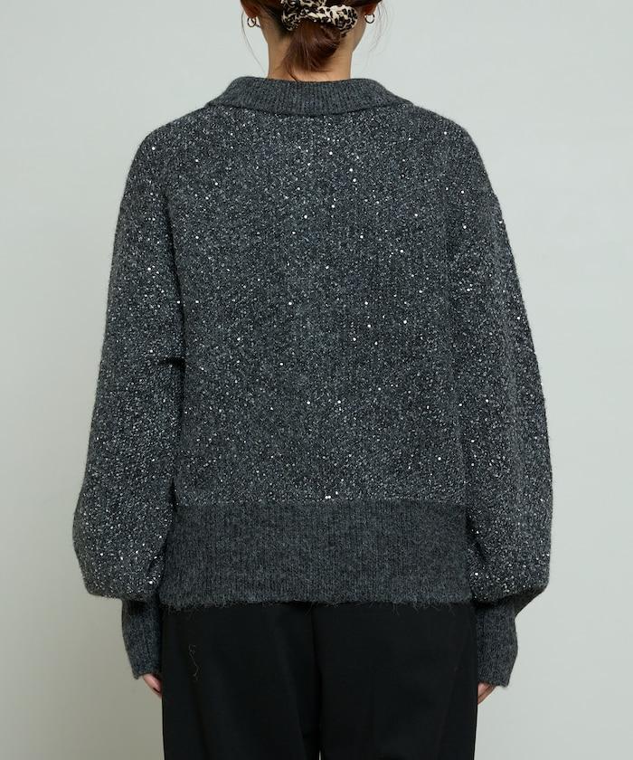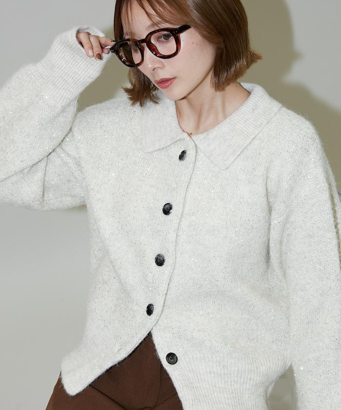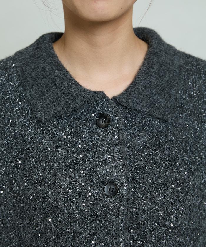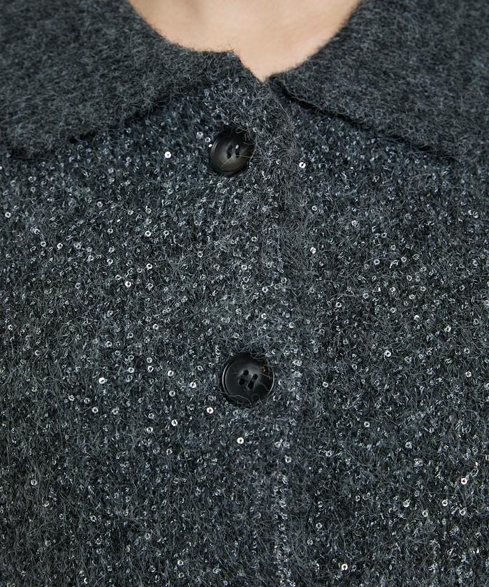 鑲嵌亮片的 polo 開衫閃耀著優雅的光芒。