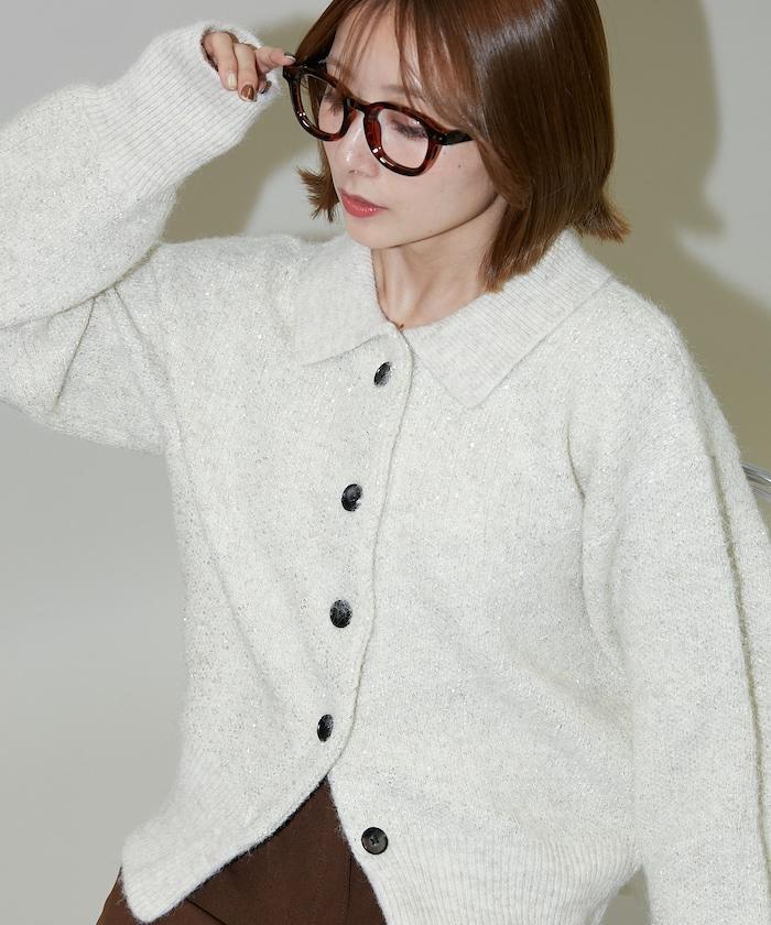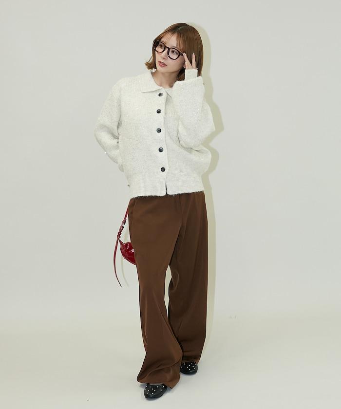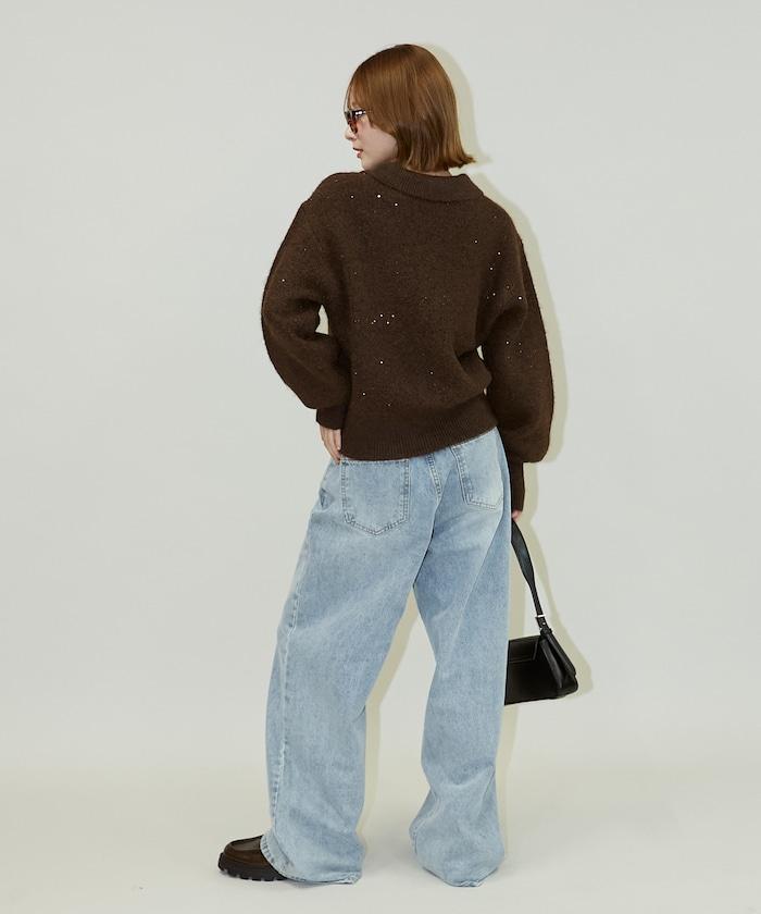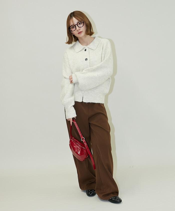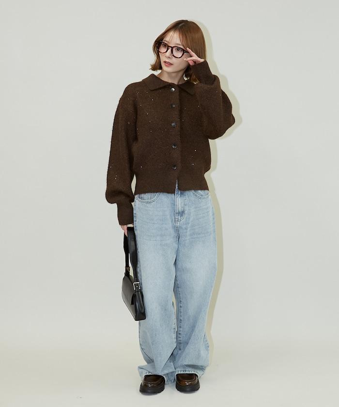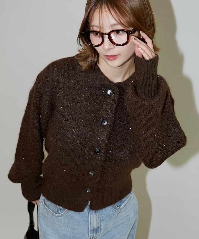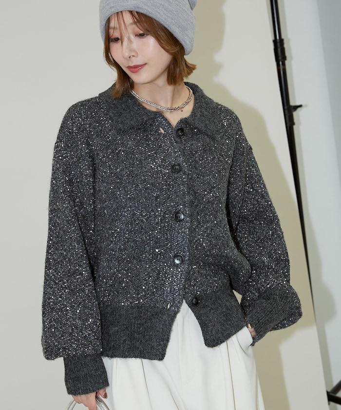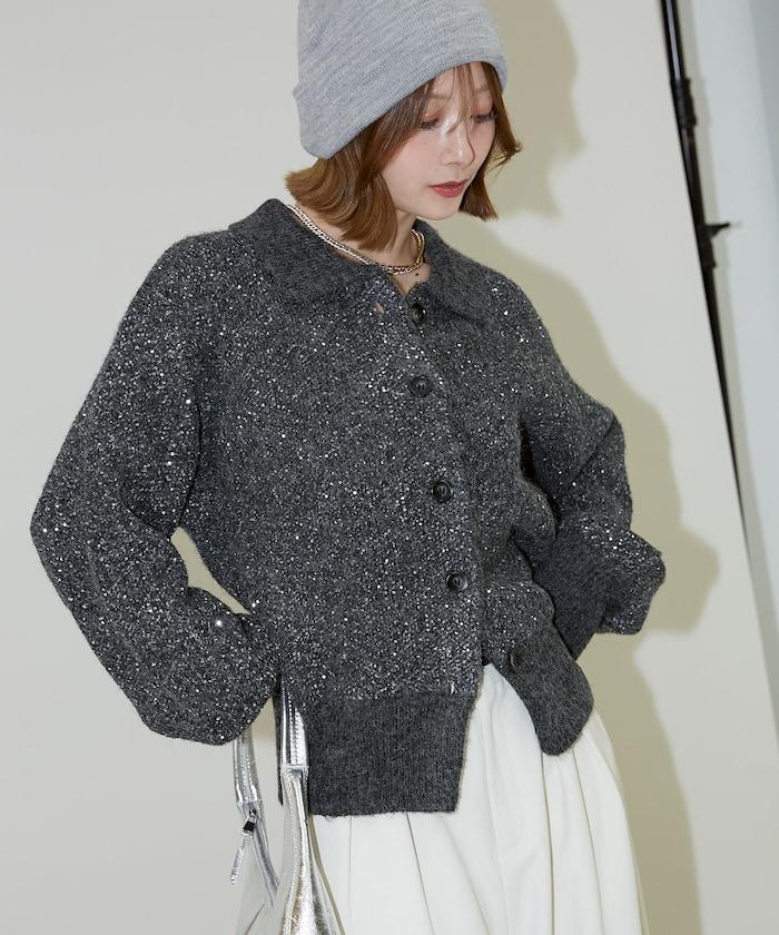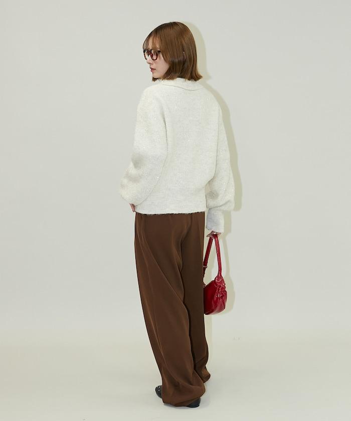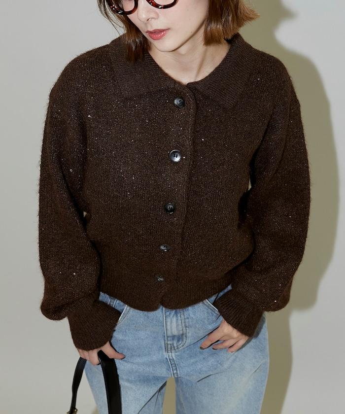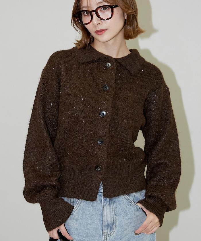 鑲嵌亮片的 polo 開衫閃耀著優雅的光芒。