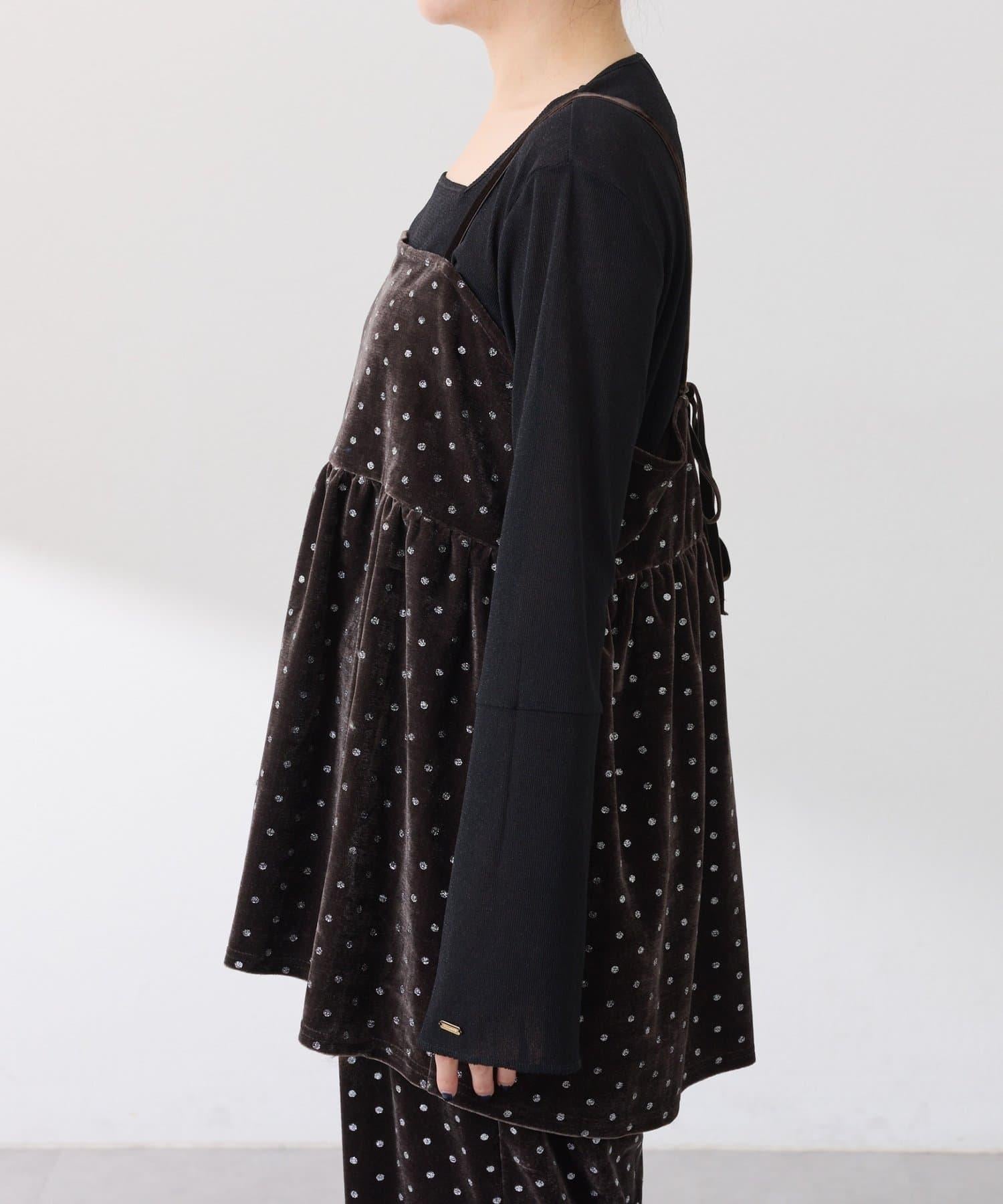 吊帶衫用絲帶繫緊。長度可以調節,建議適合各種體型。