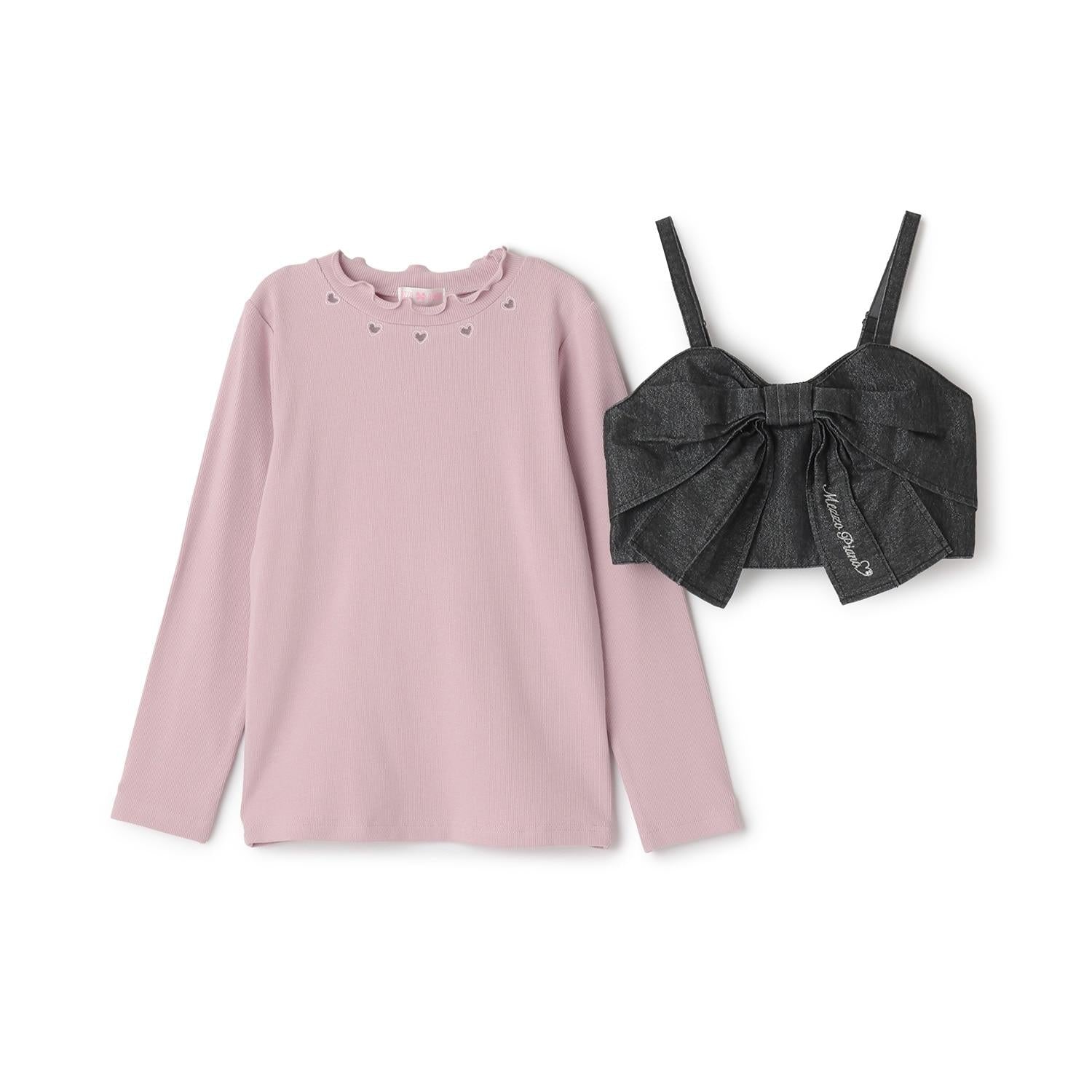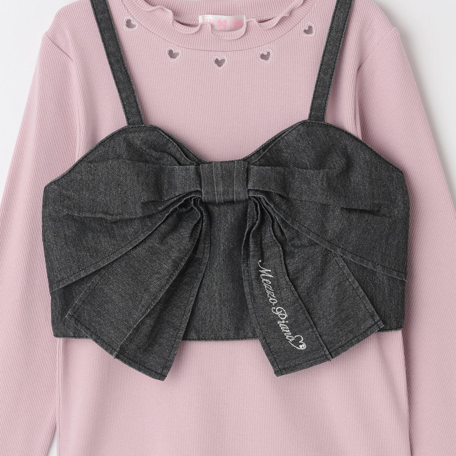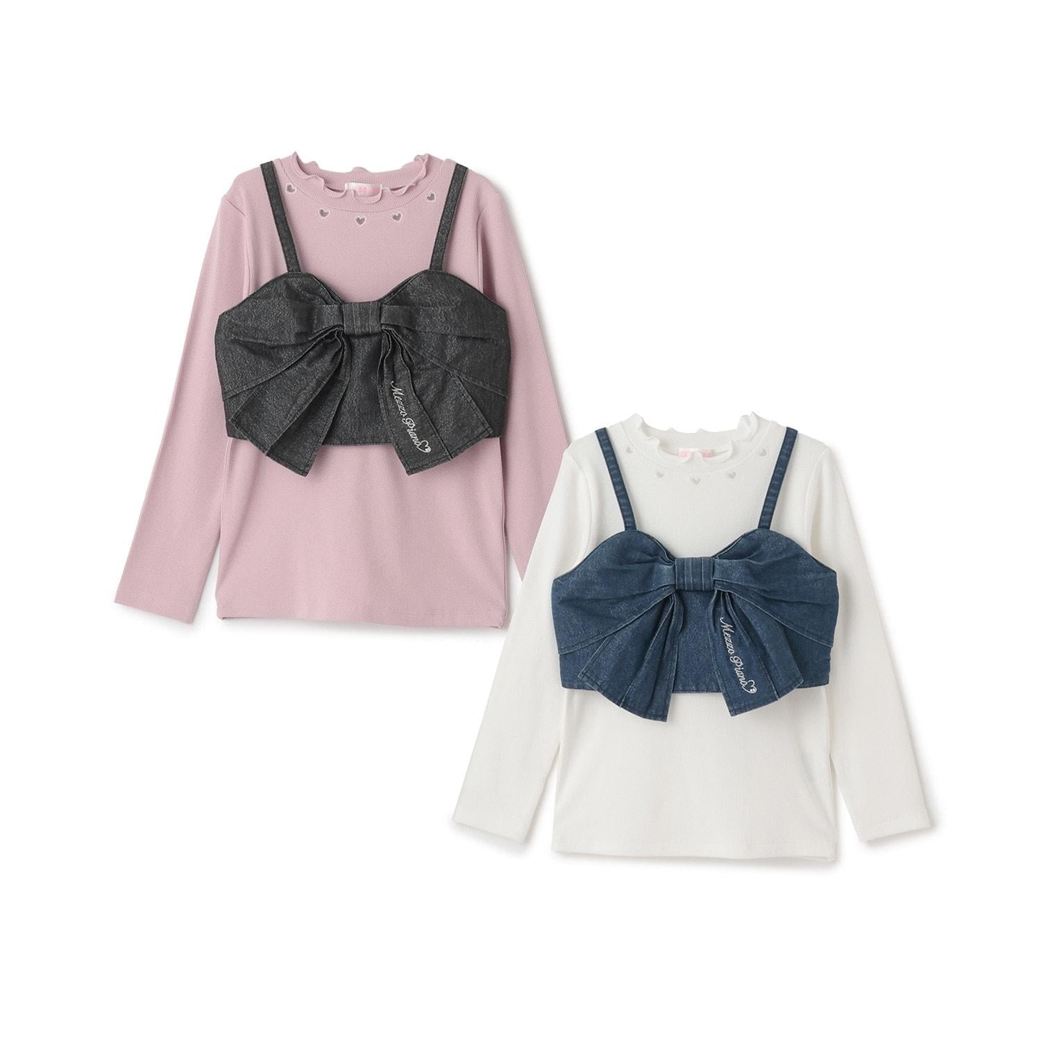 亮片牛仔蝴蝶結吊帶背心&長袖T恤套裝