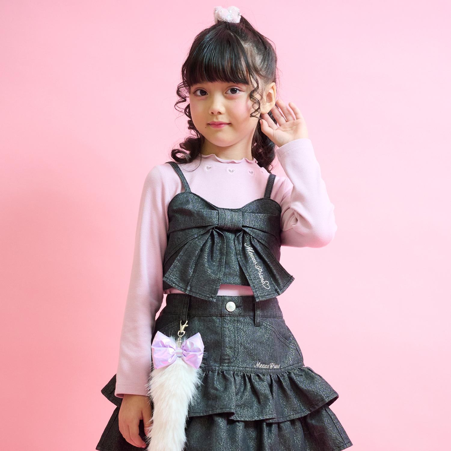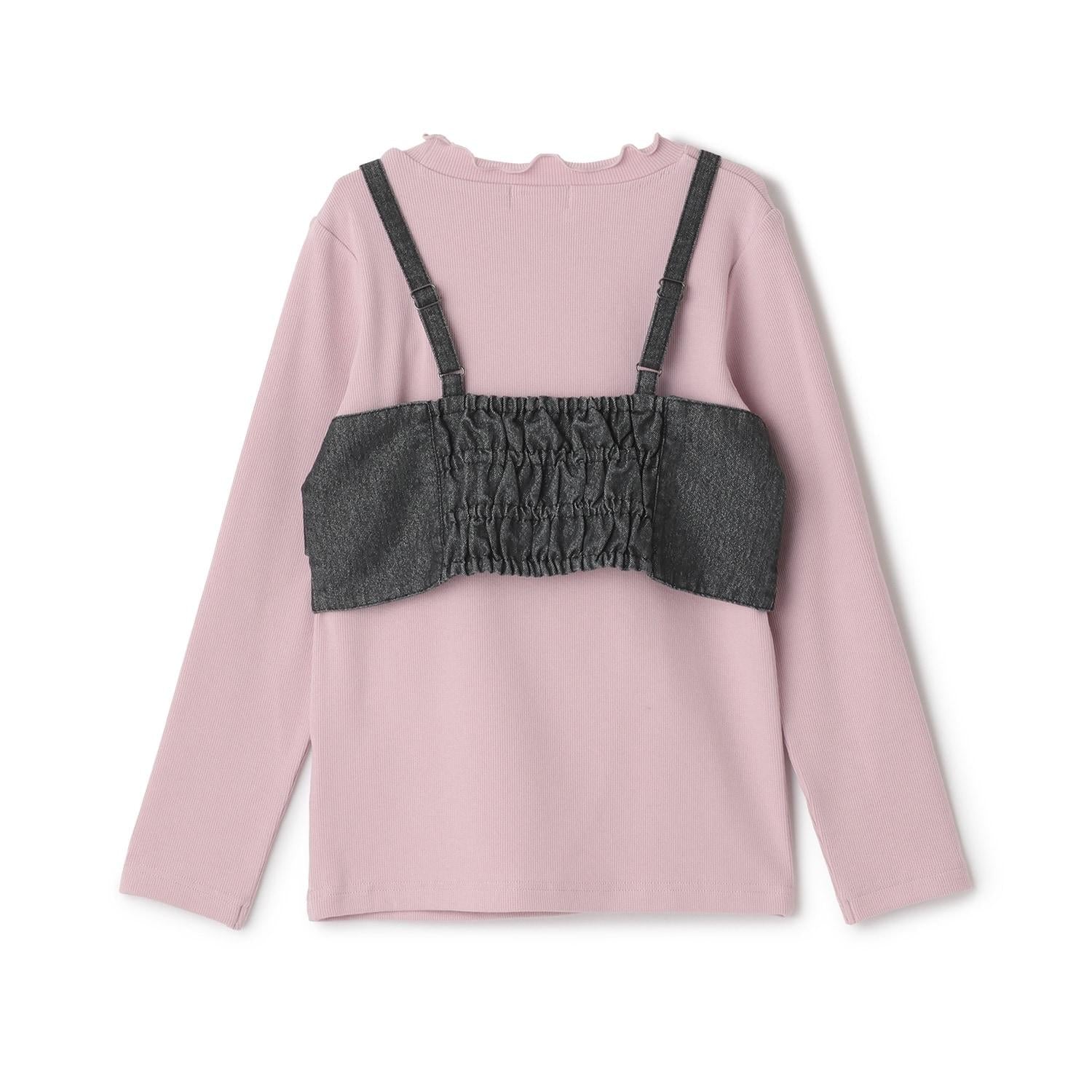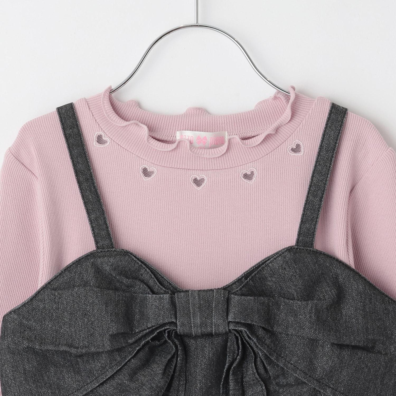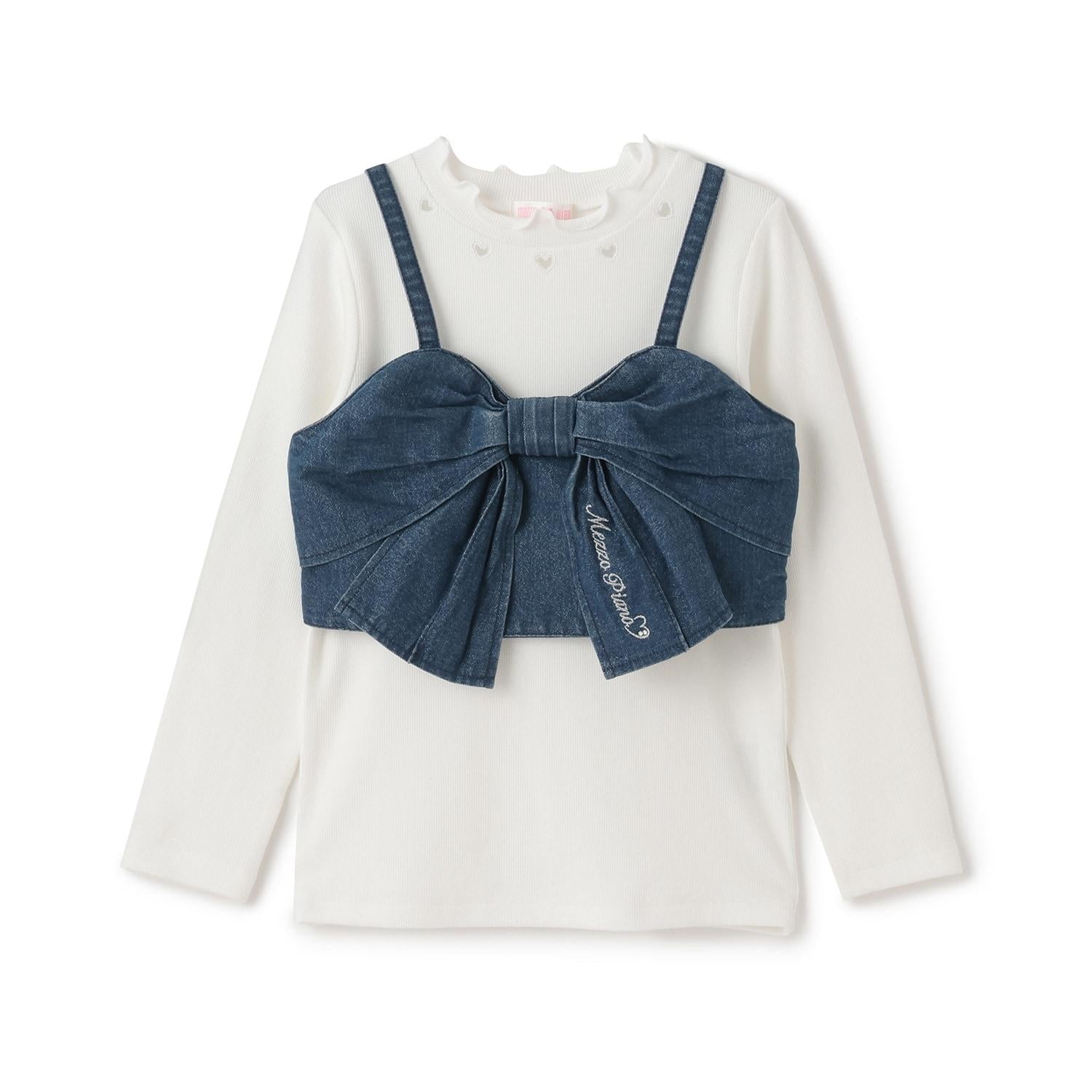 亮片牛仔蝴蝶結吊帶背心&長袖T恤套裝