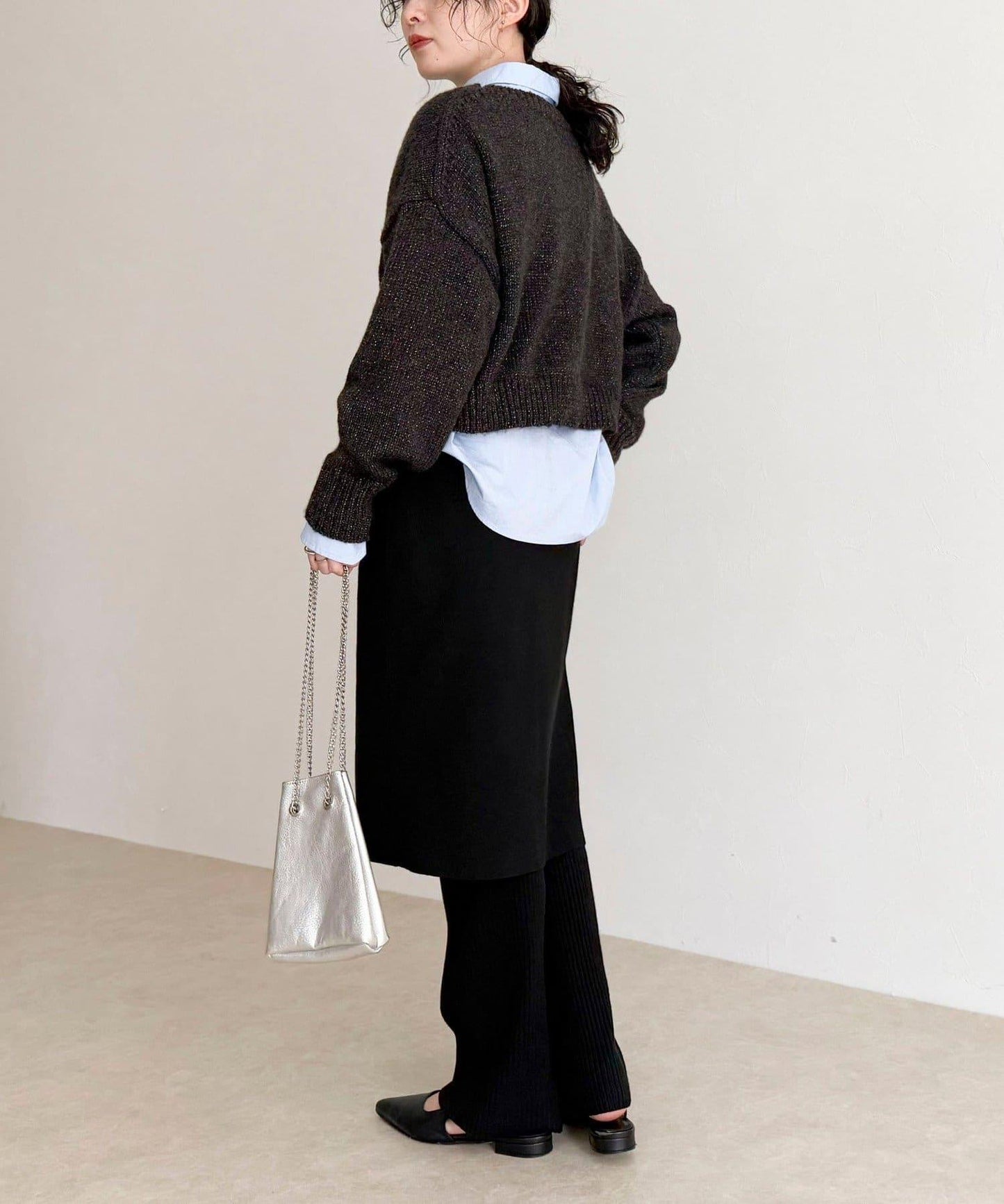 156cm 工作人員(穿 38 號):雖然是短款,但搭配高腰下裝,腰部顯得很乾淨!遜色感不張揚,恰到好處的閃光,是日常生活中很容易使用的印象◎。