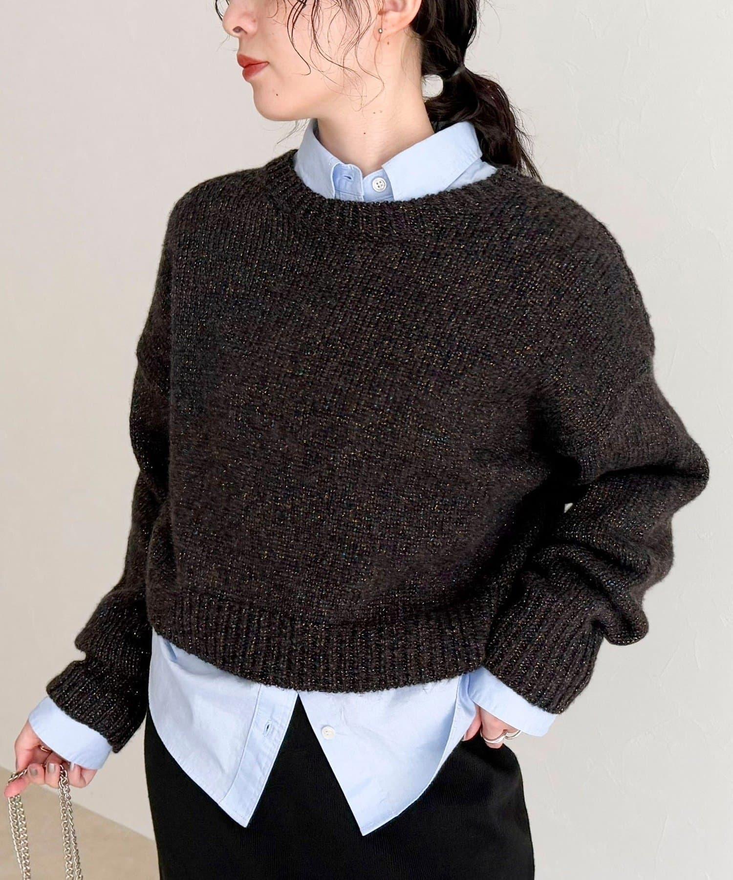 預約商品亮片短款針織套頭衫