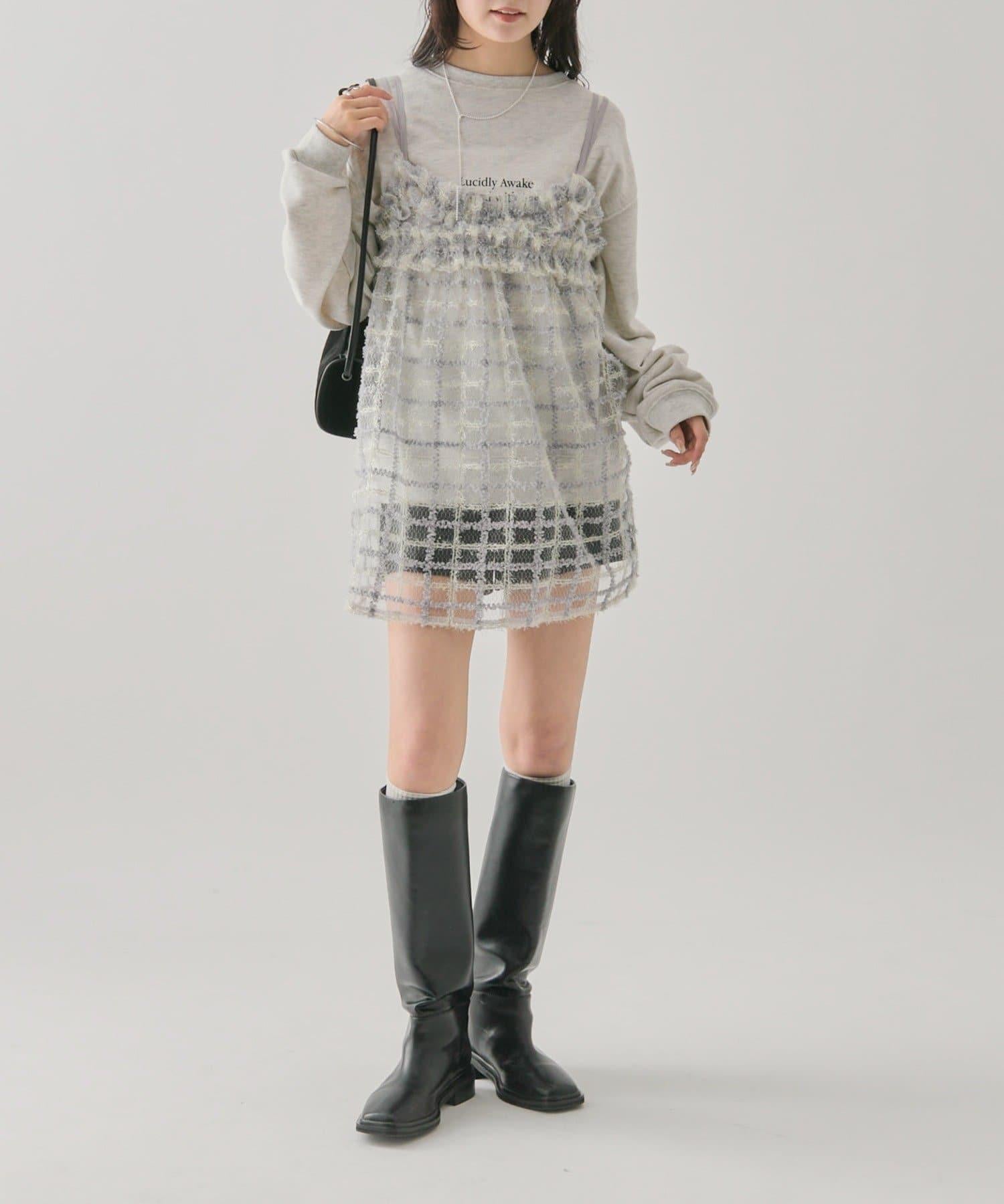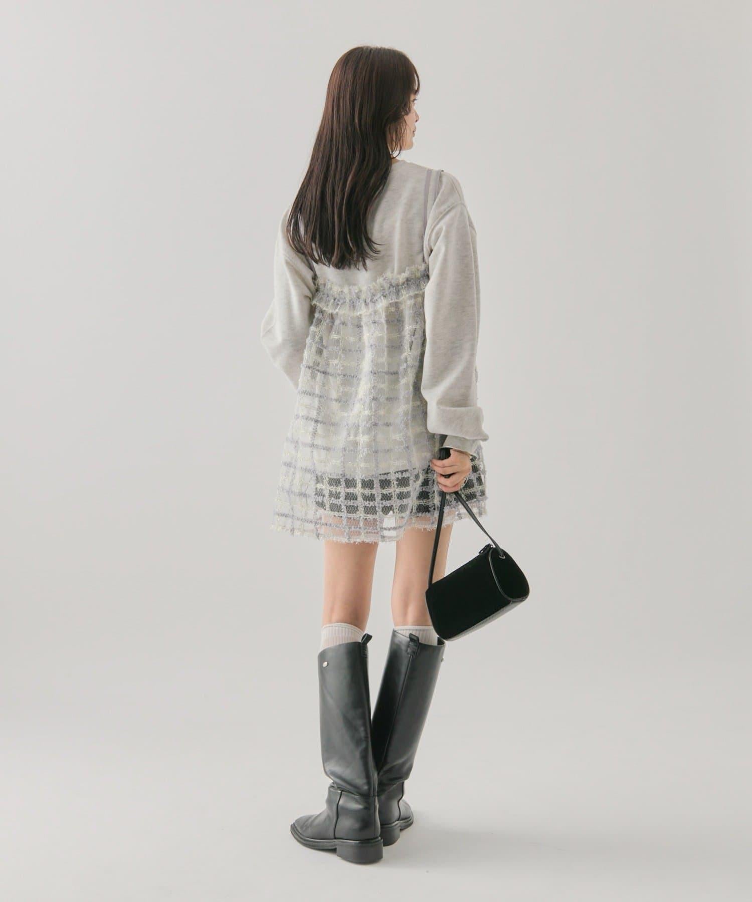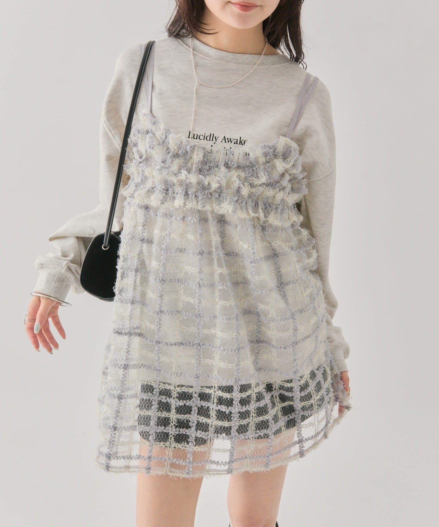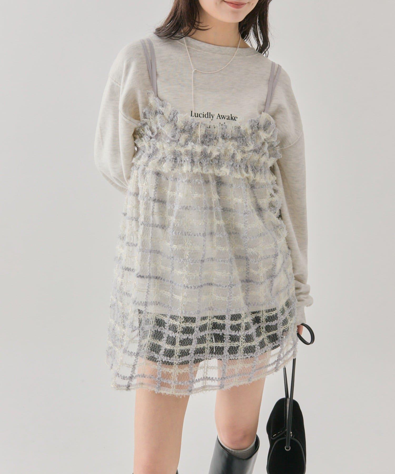 可愛的吊帶長衫,蓬鬆的荷葉邊和棋盤格花呢設計。