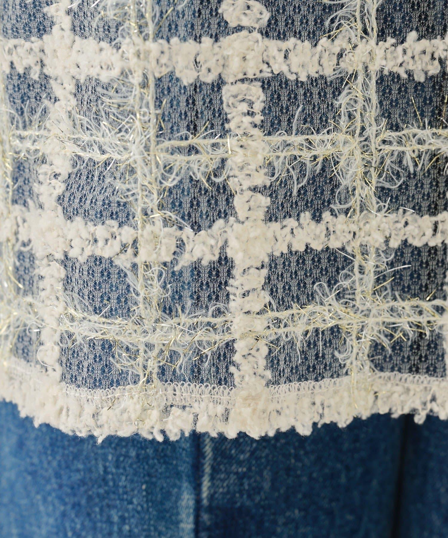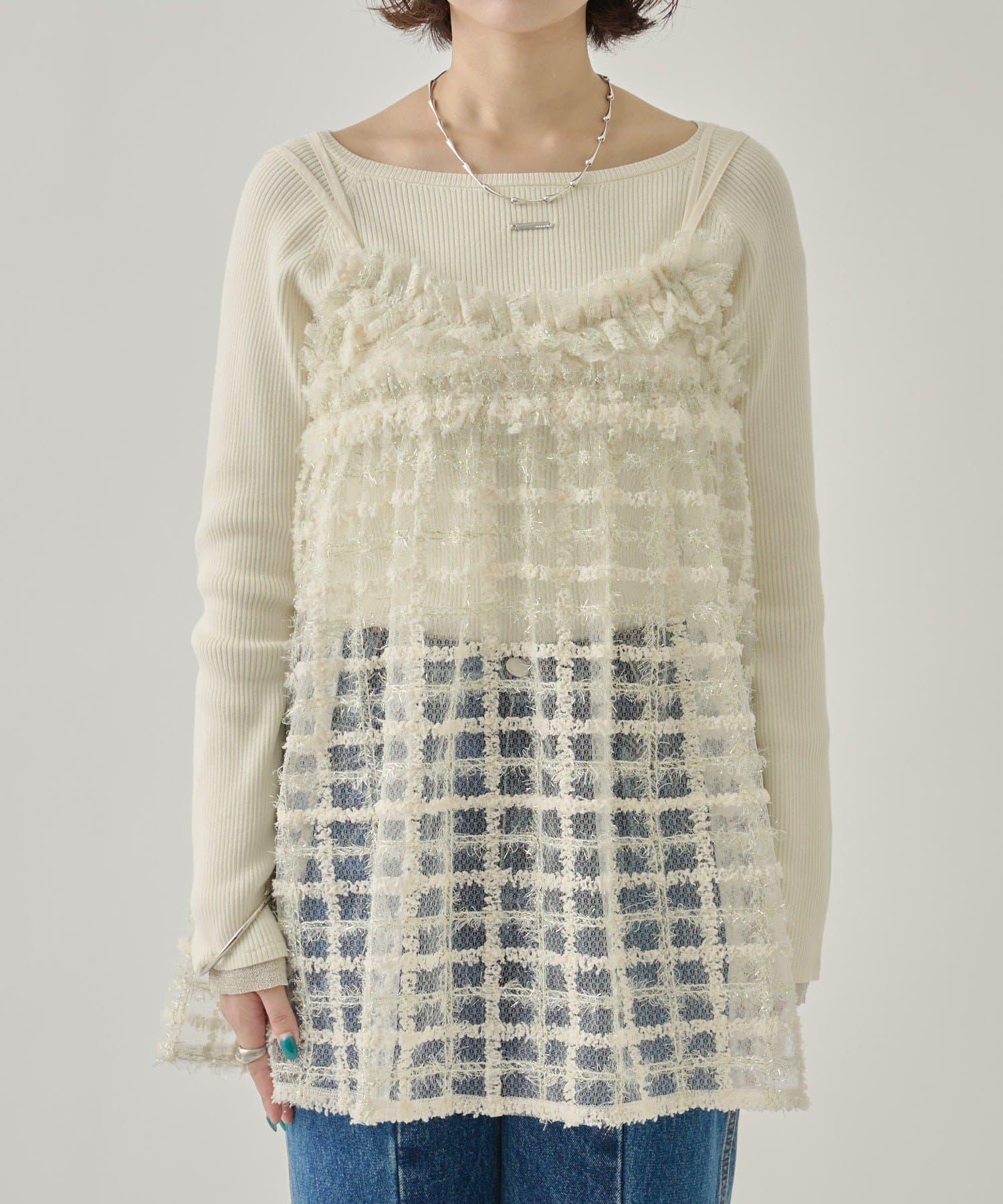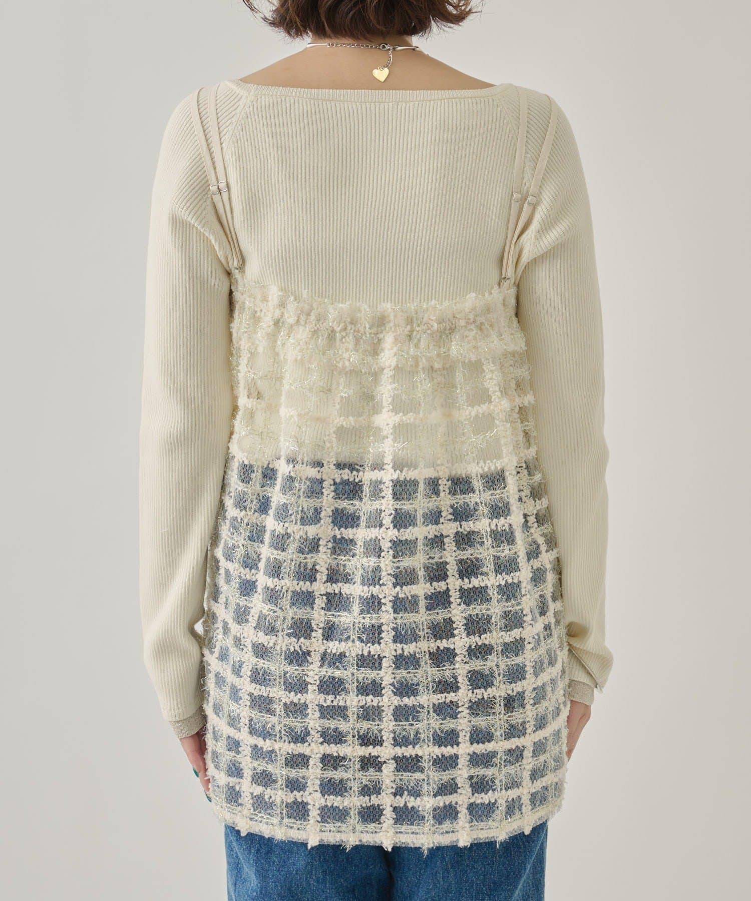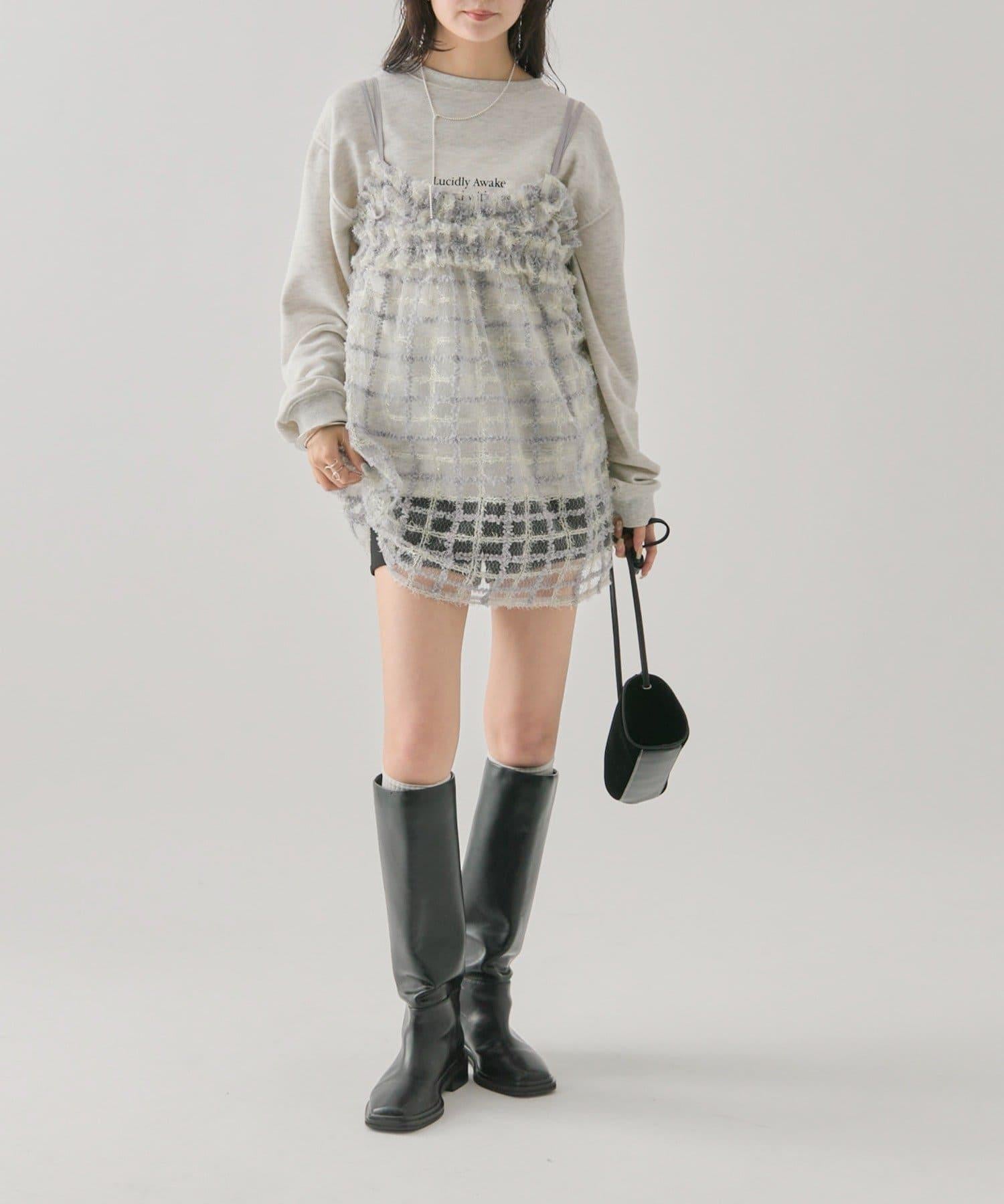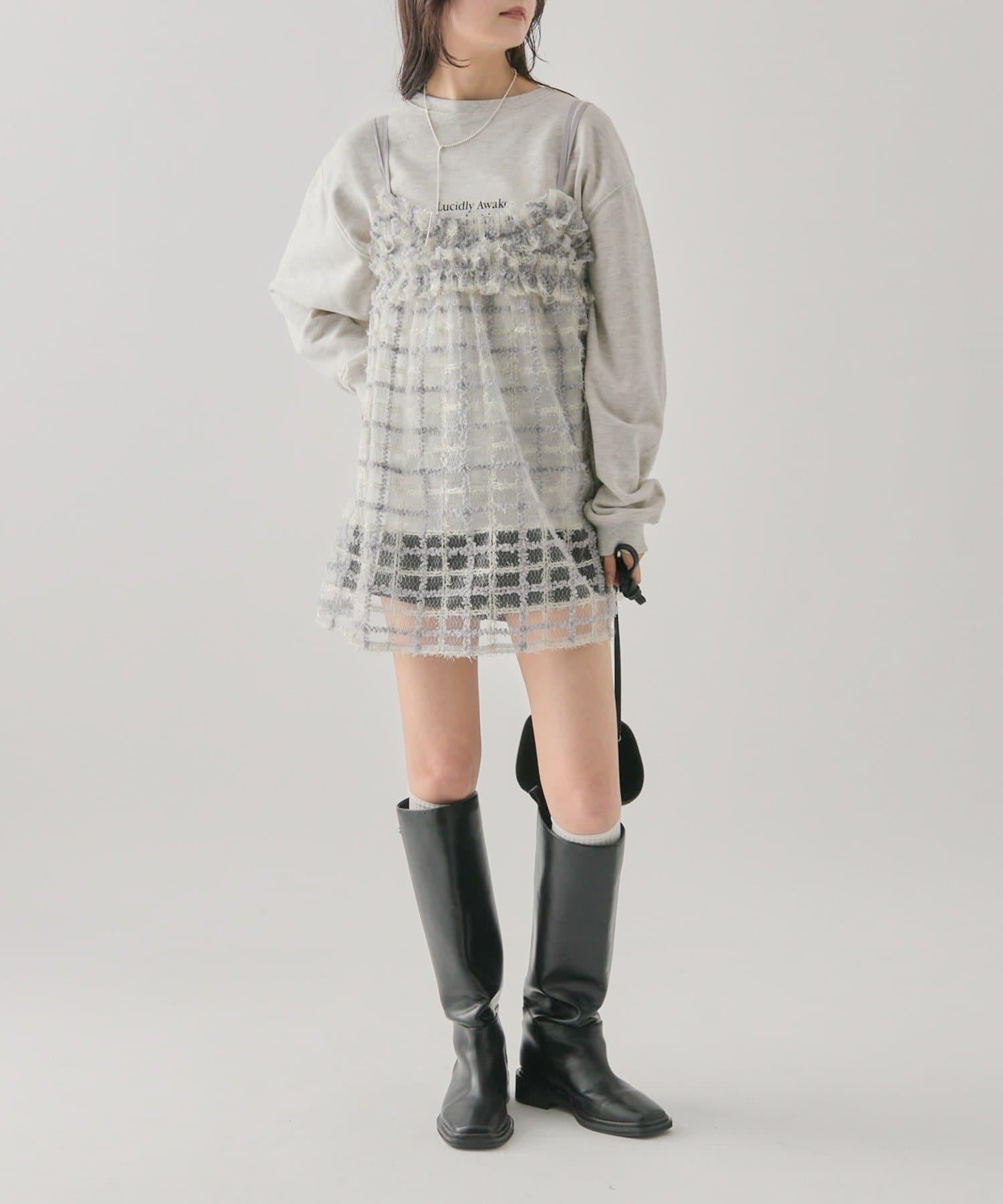 可愛的吊帶長衫,蓬鬆的荷葉邊和棋盤格花呢設計。
