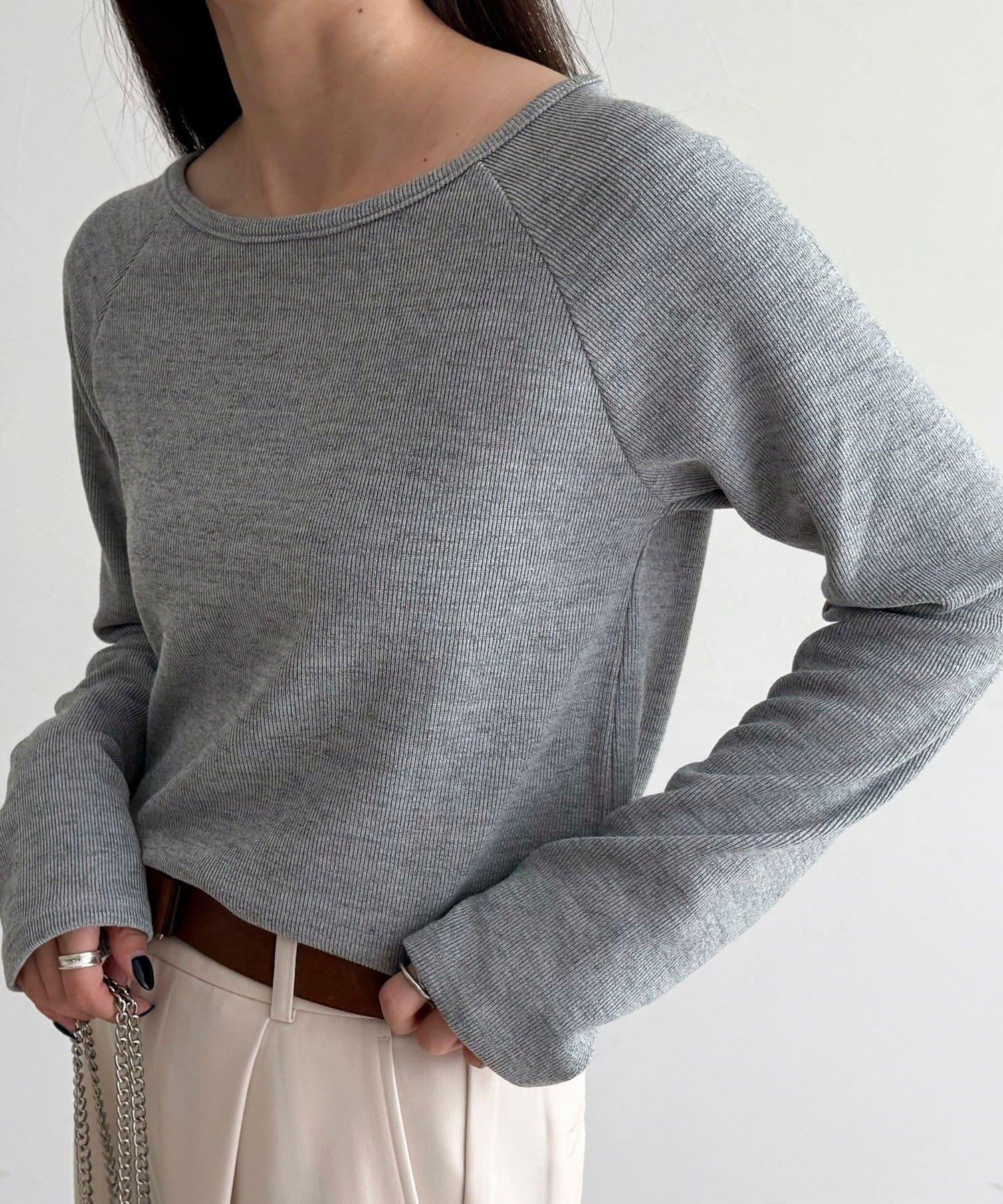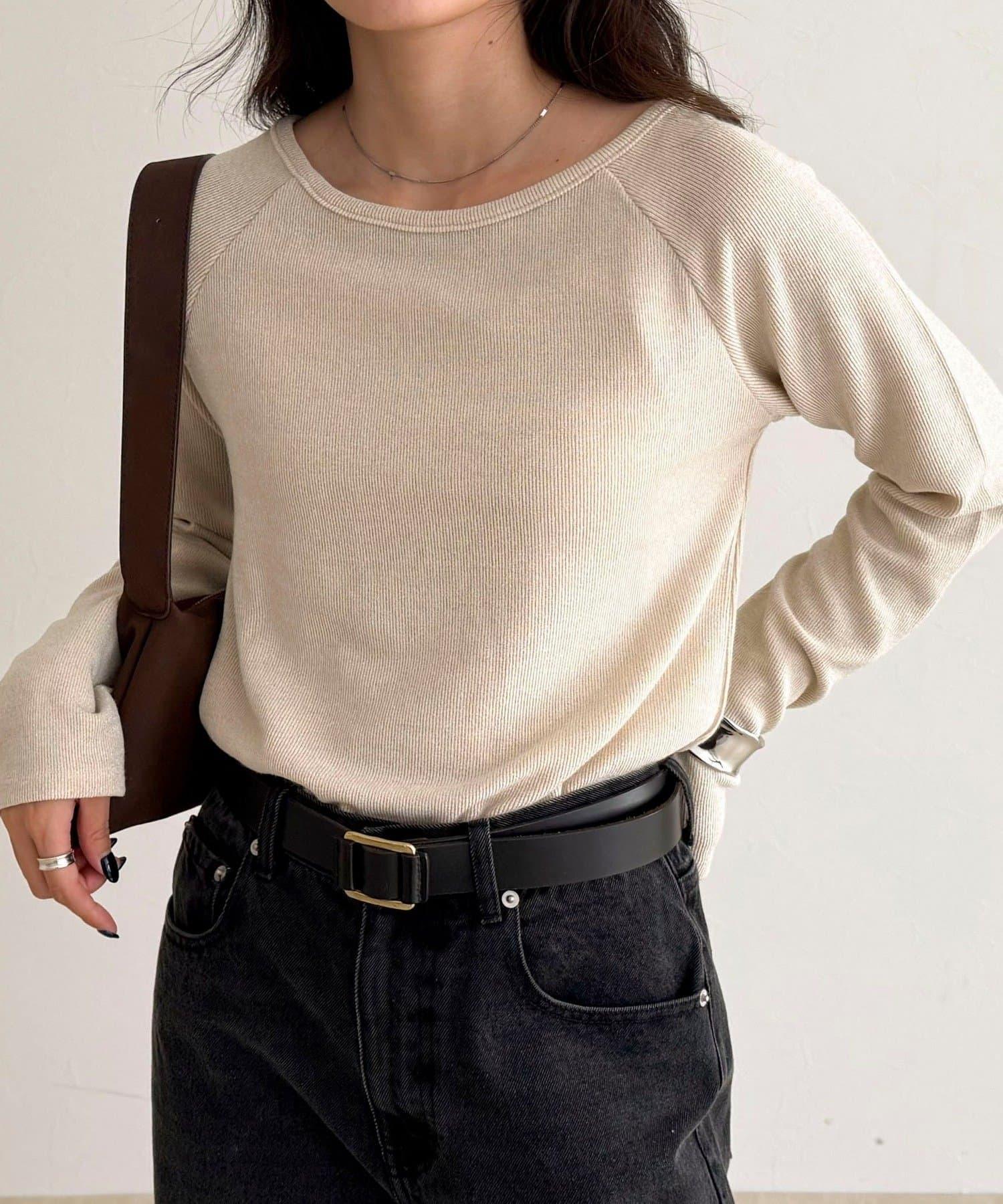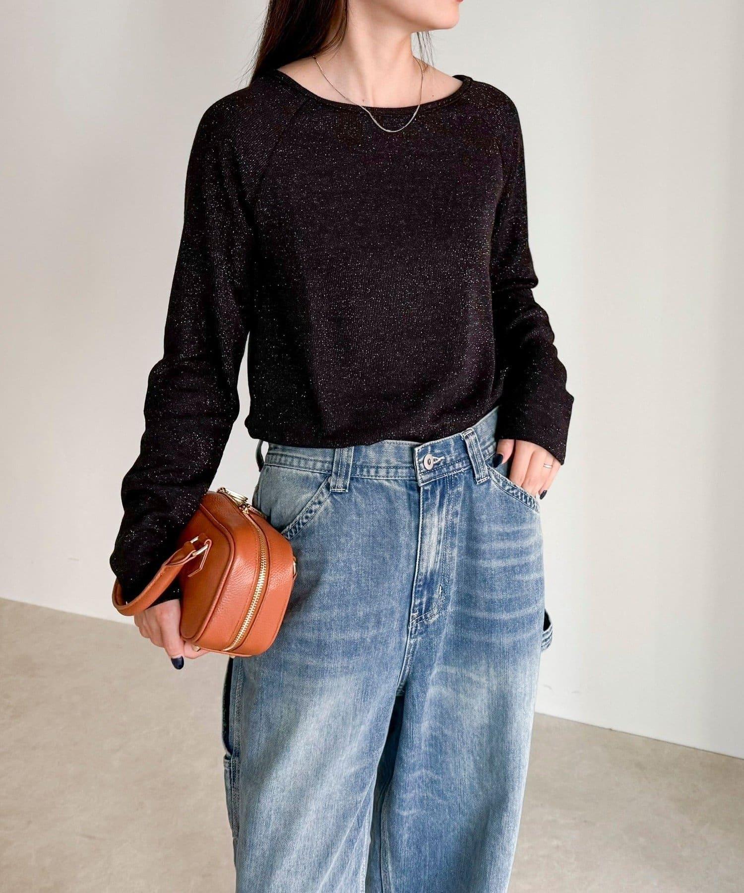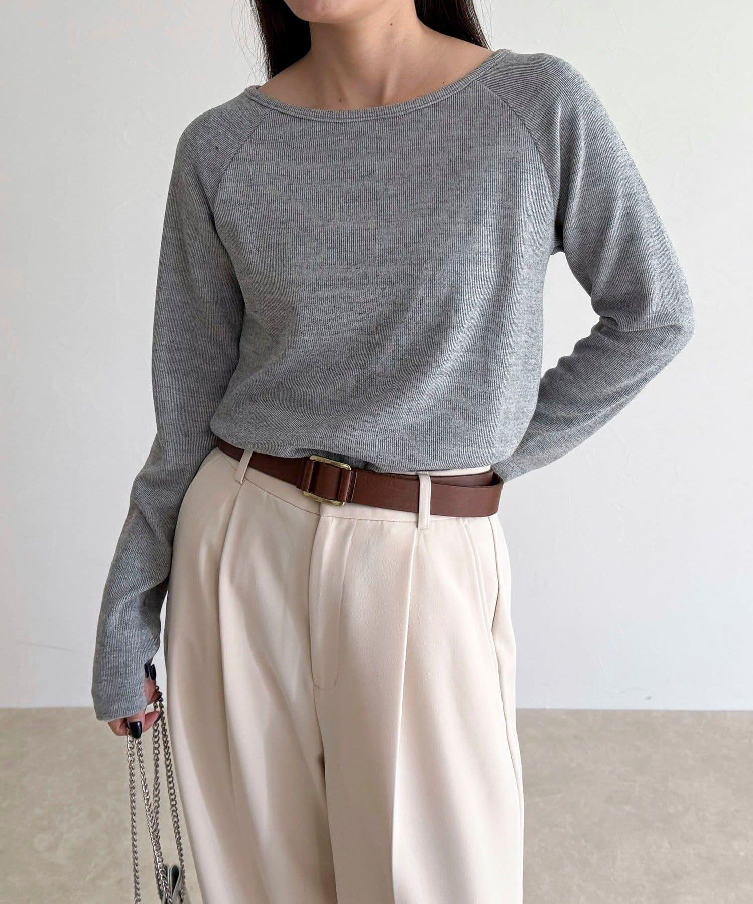 身高 156 厘米的工作人員(穿 38 號):恰到好處地貼合身體,肩部和腰部線條優美。彈性好,穿起來活動自如,很舒服。柔軟的面料貼膚感很好,薄片巧妙地閃耀著光澤,是提亮臉龐的好點子。領口處的船形領口設計,將骨架筆直的鎖骨線條展現得淋漓盡致,女人味十足。